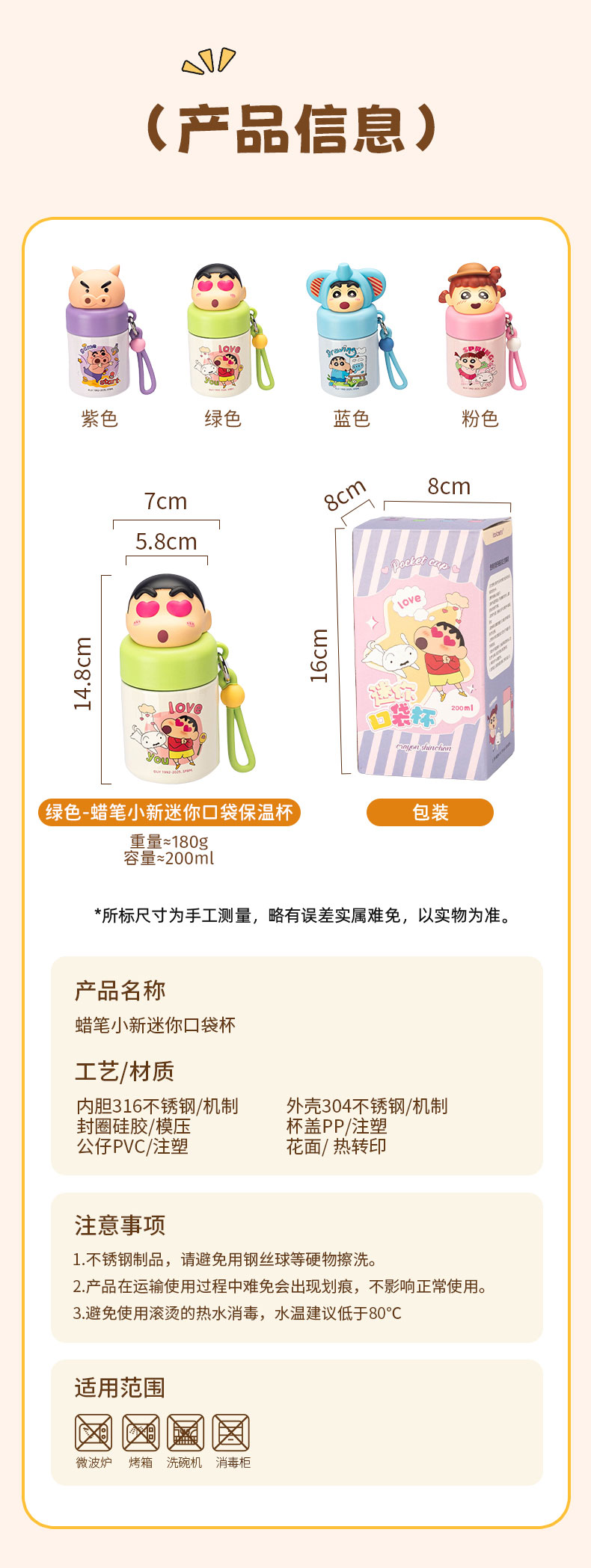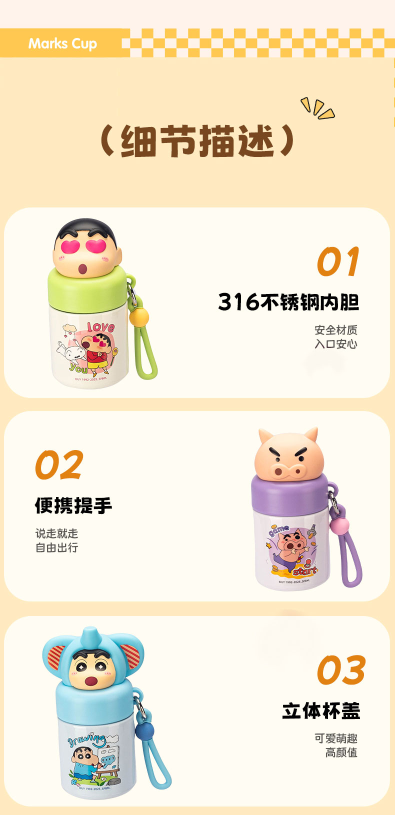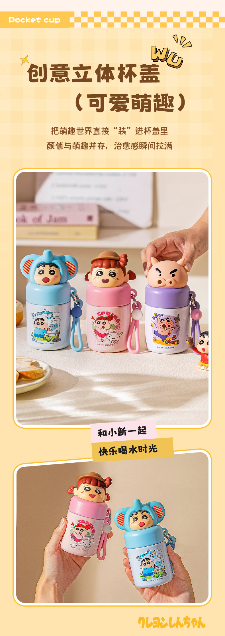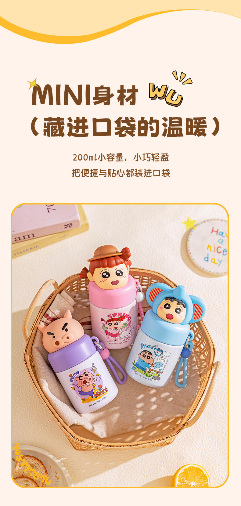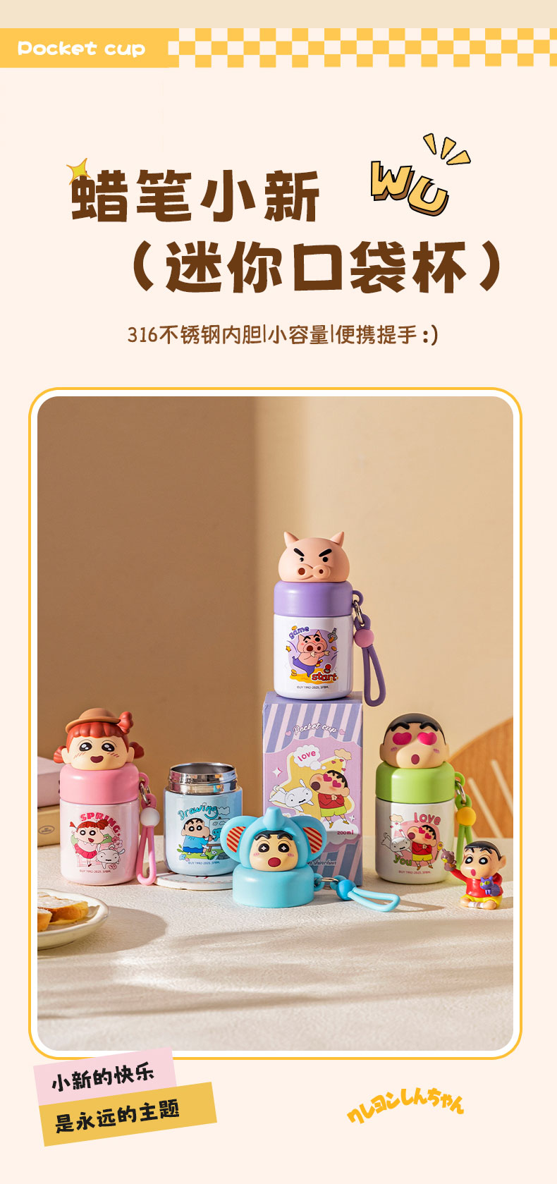 摩登主妇蜡笔小新儿童保温杯迷你水杯小巧便携生日礼物不锈钢杯子