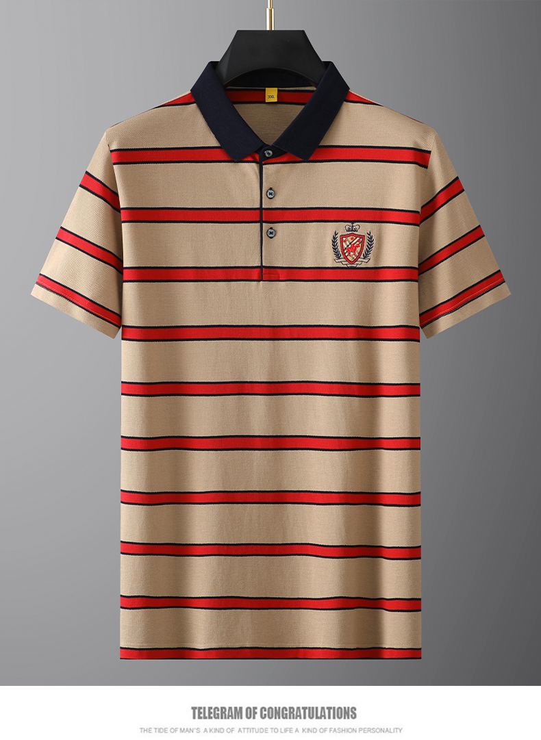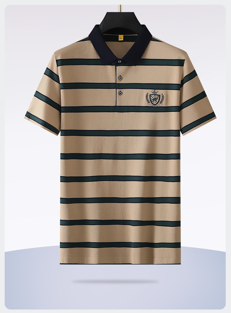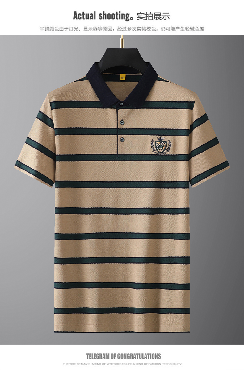 【丝光棉】【新款DG】大依优型大码短袖Polo衫丝光棉莫代尔横条纹翻领加肥加大男士大号弹力透气舒适半袖夏装