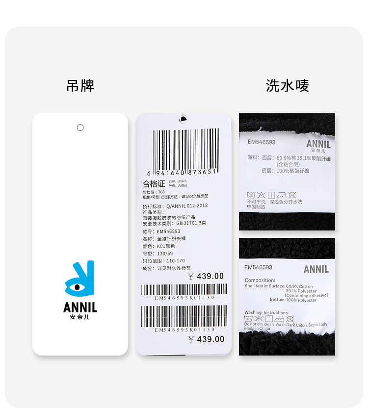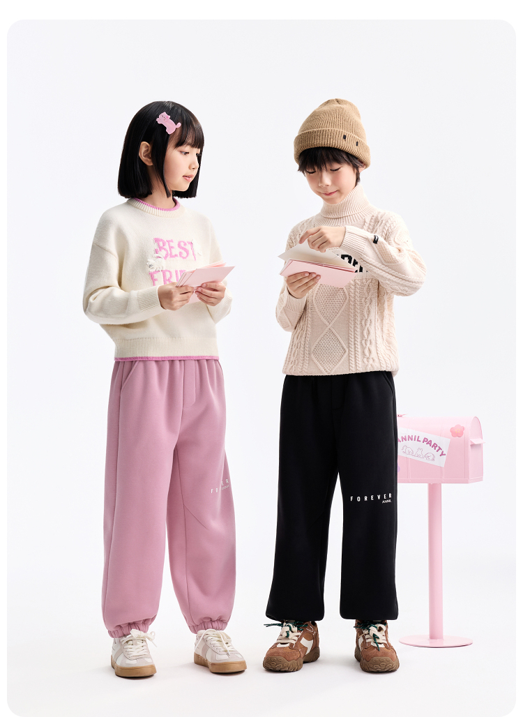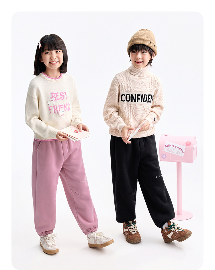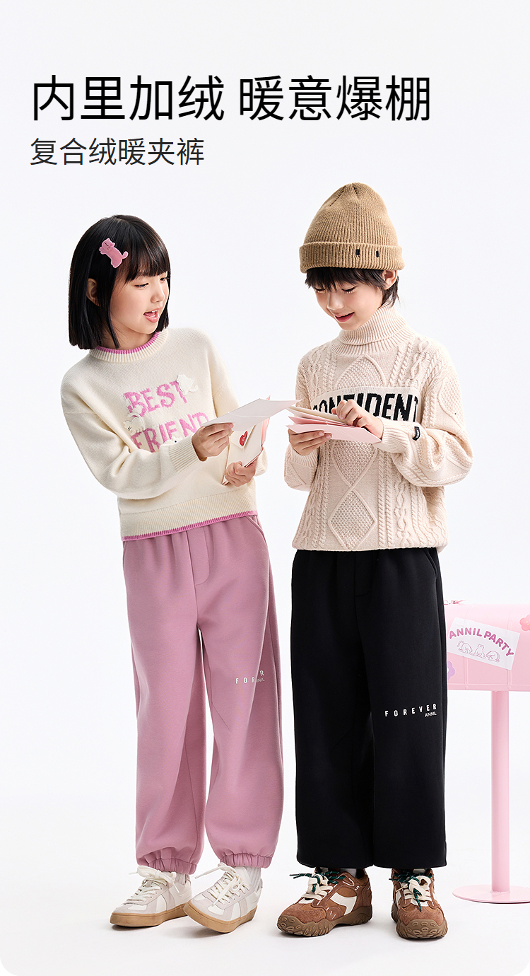 男女童全腰针织夹裤冬季新款安奈儿童装EM546593