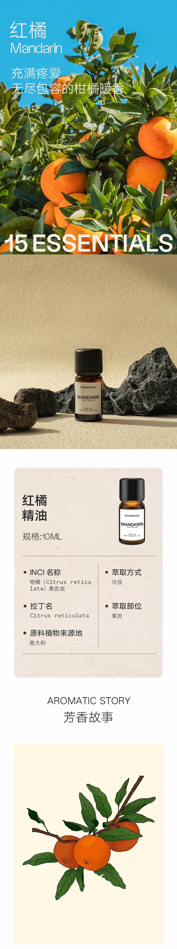 15 ESSENTIALS 红橘精油(红橘精油10ml+身体润肤油120ml*2)