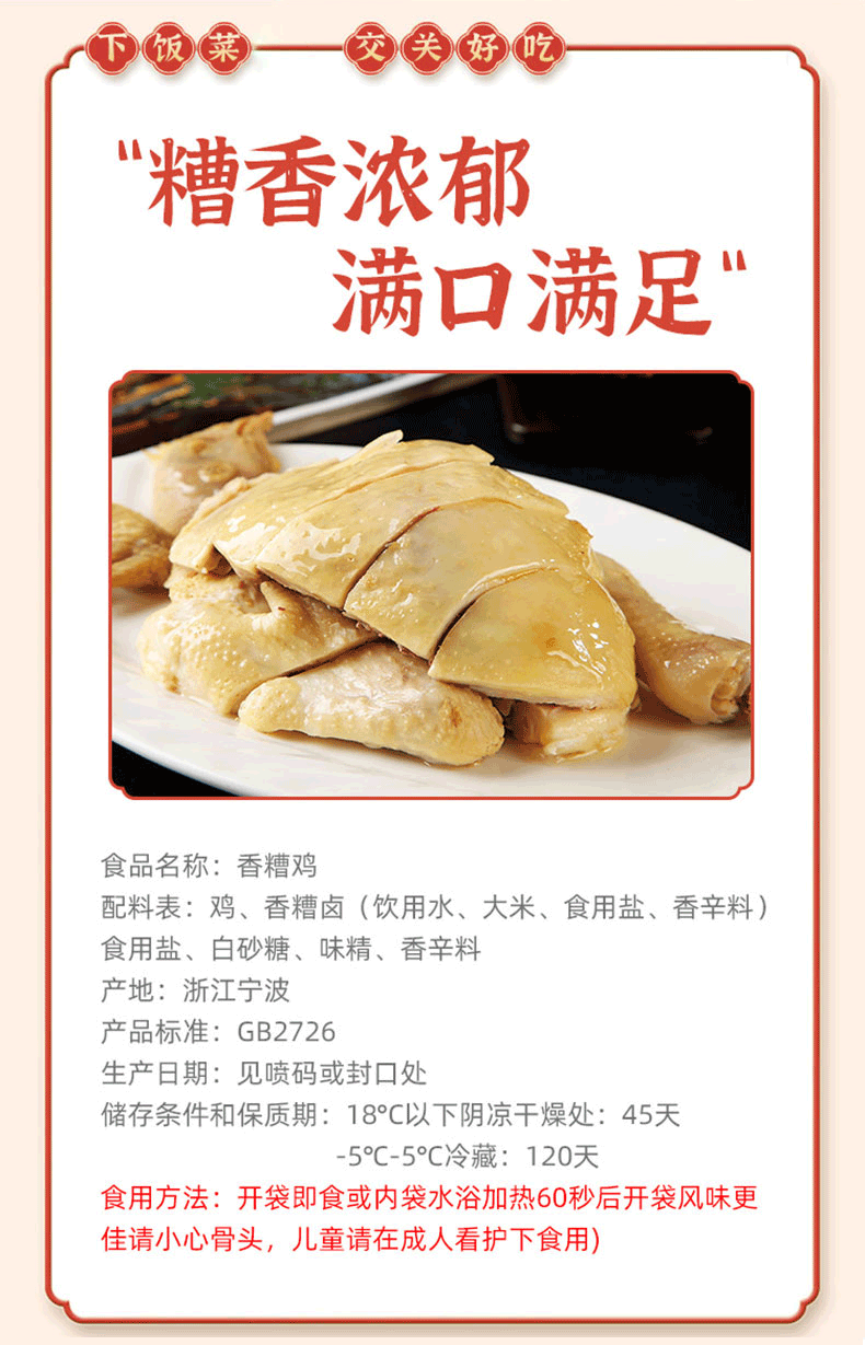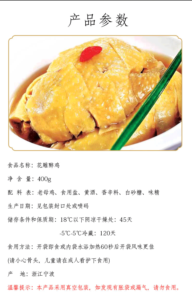 港叔花雕醉鸡香糟鸡熟食即食白切鸡
