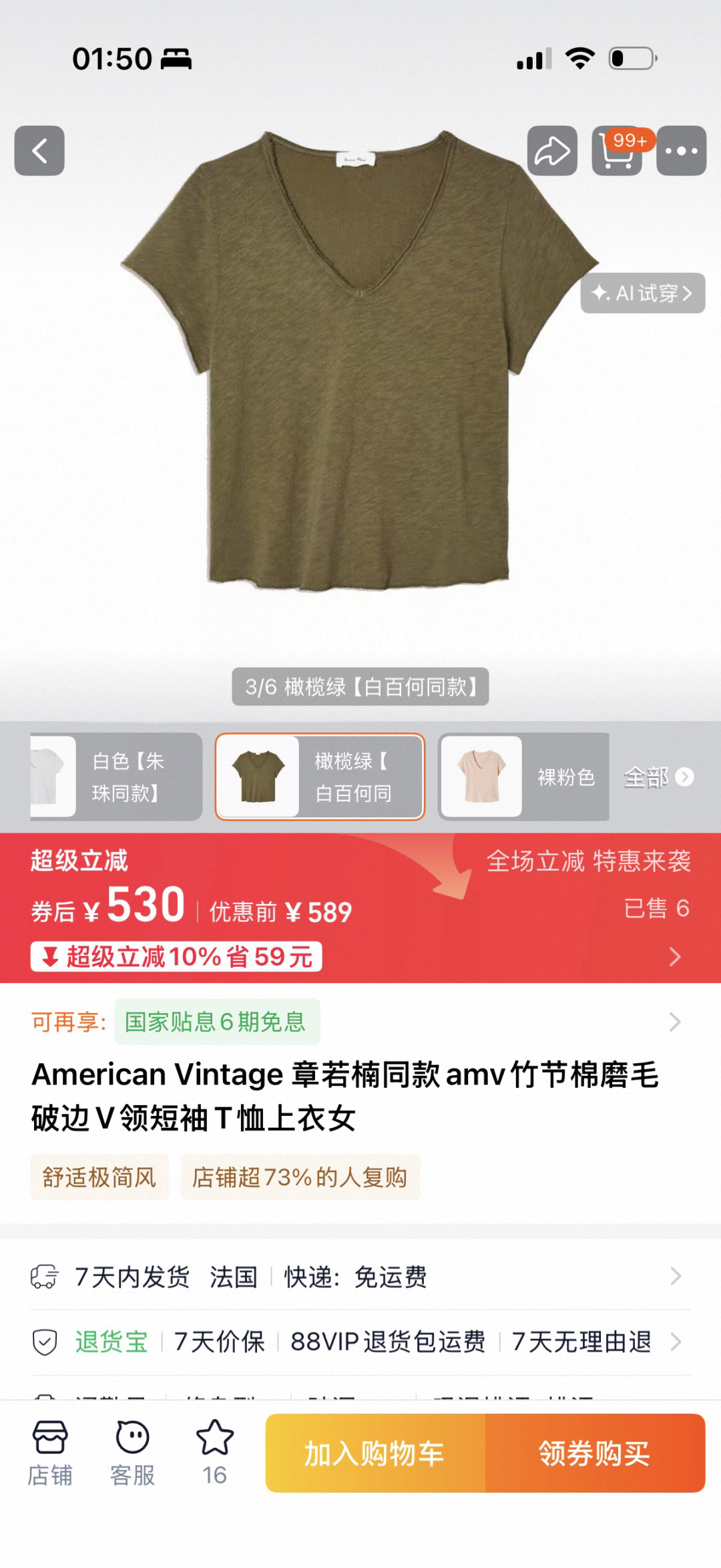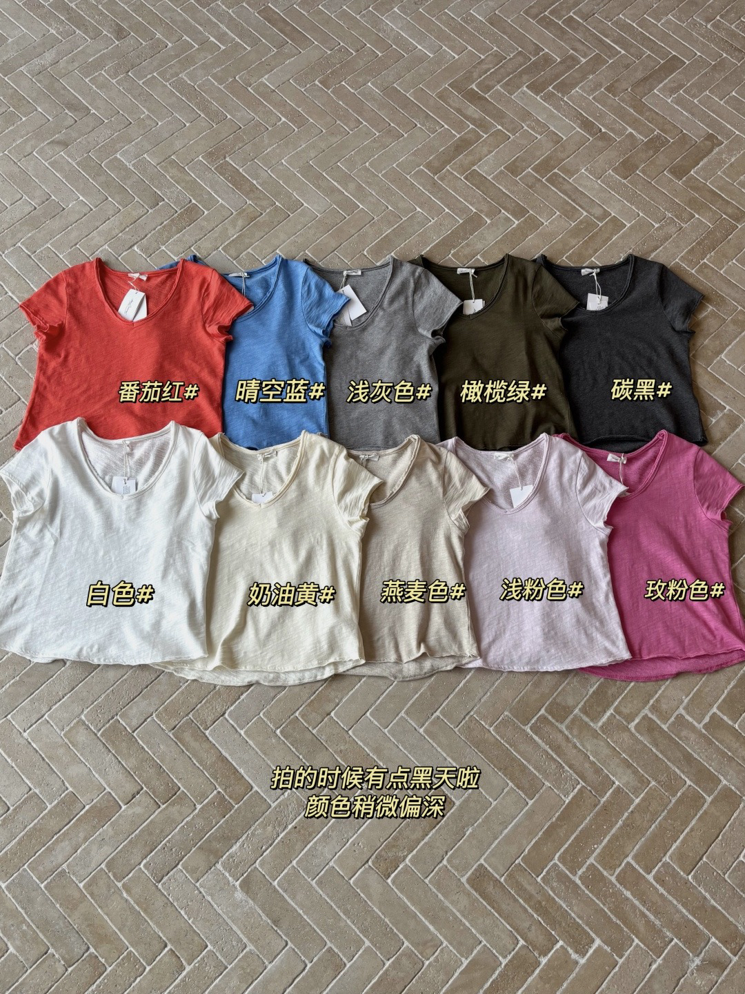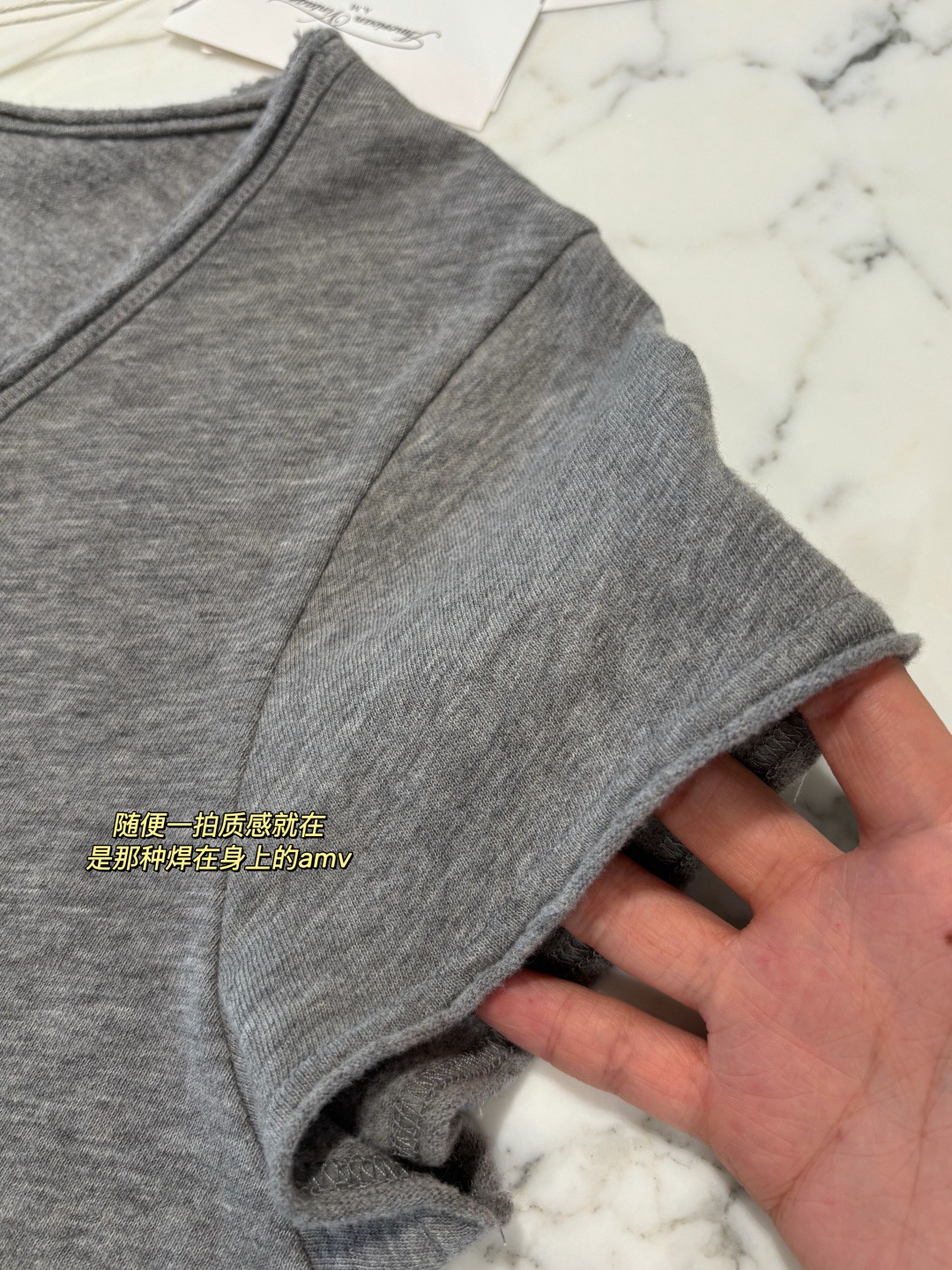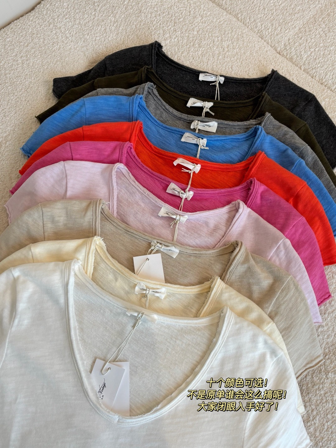 🔺纯原❗️章若楠朱珠章小蕙同款 American Vintag*e 竹节棉磨毛破边V领短袖Tee来咯
