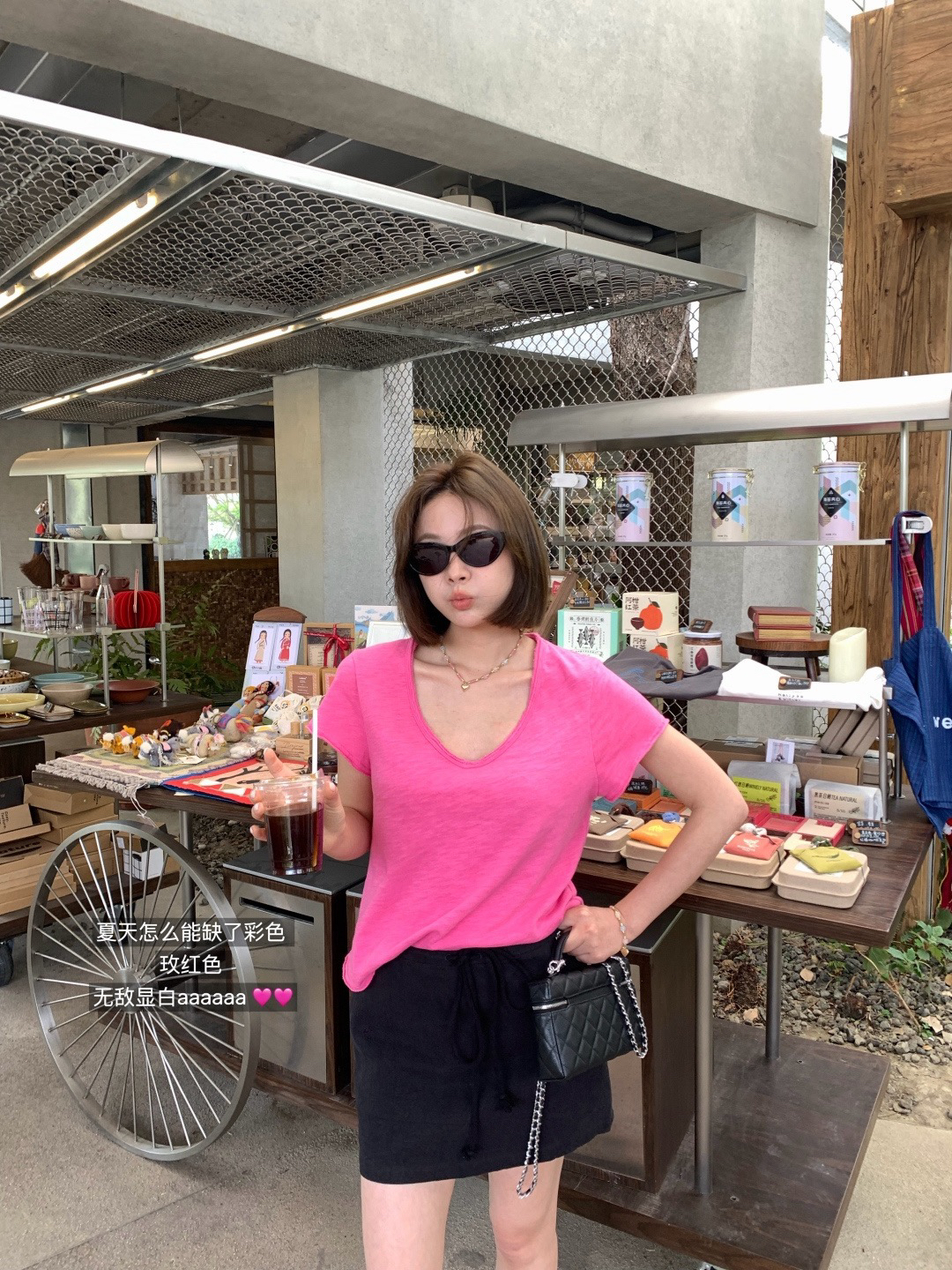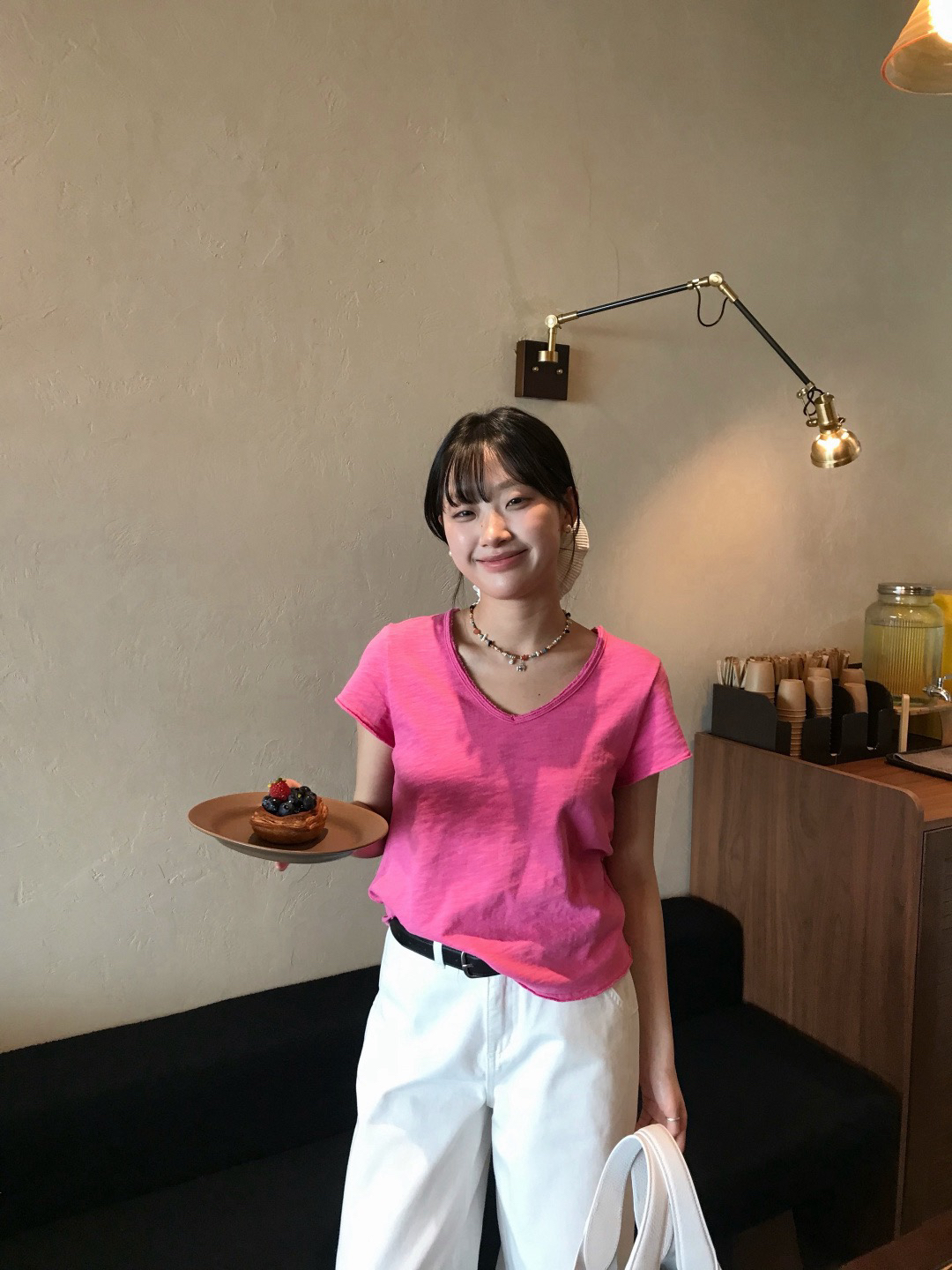 5️⃣玫粉色 搭配白色裤子无敌显白哈哈哈哈