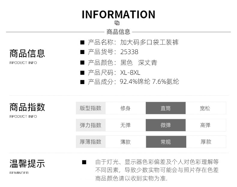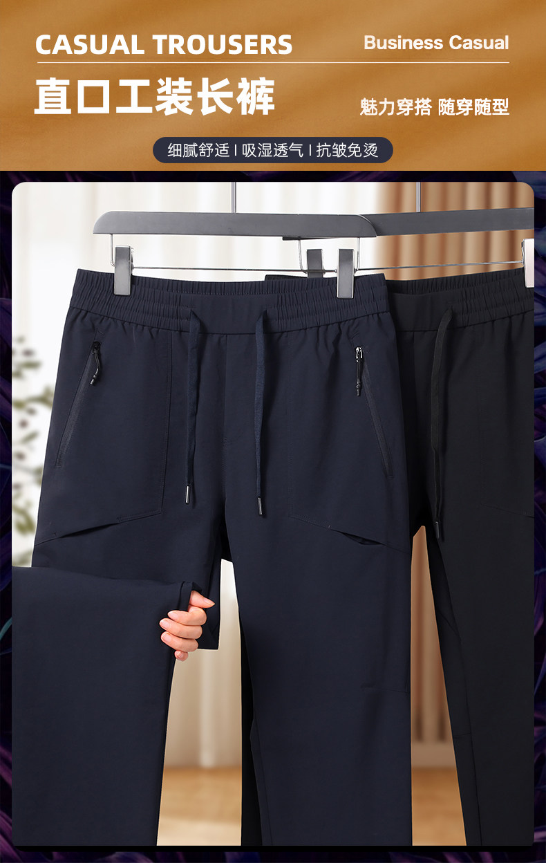 【DK】大依优型大码男装直口工装长裤松紧腰直筒休闲百搭商务长裤