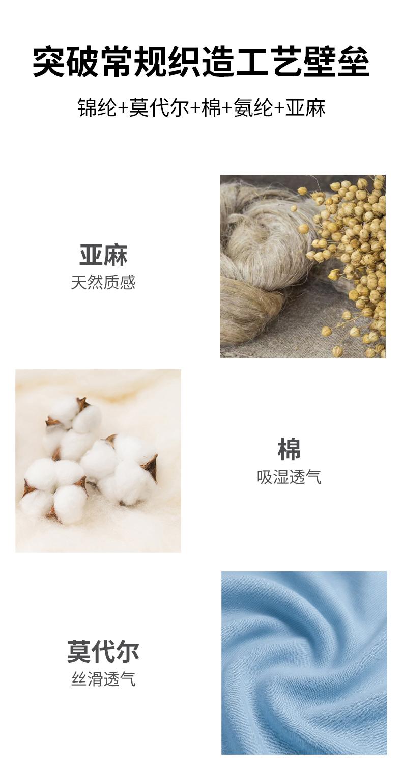 面料:33.1%锦纶 31.6%莫代尔 28%棉 5.2%氨纶 2.1%亚麻