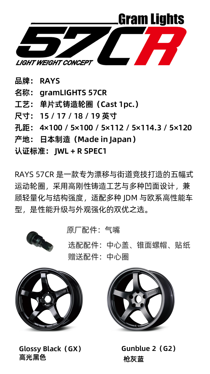 RAYS gramLIGHTS 57CR 街赛轮圈 15/17/18/19寸 4/5*100/112/114.3 日本进口 正品行货 酷乐汽车 x 深圳零创 中国总代 No.250619