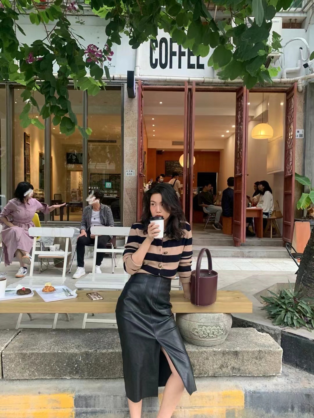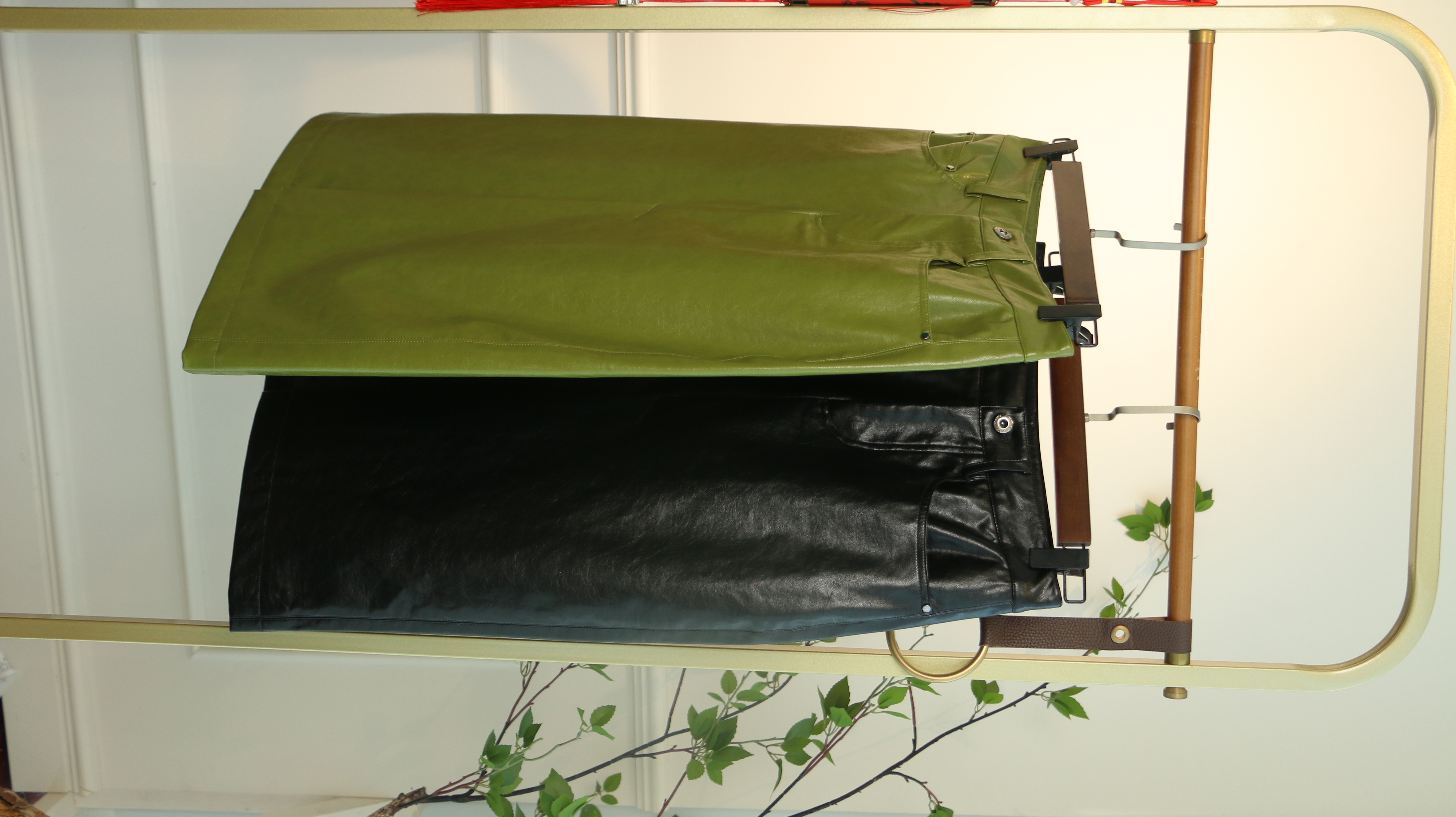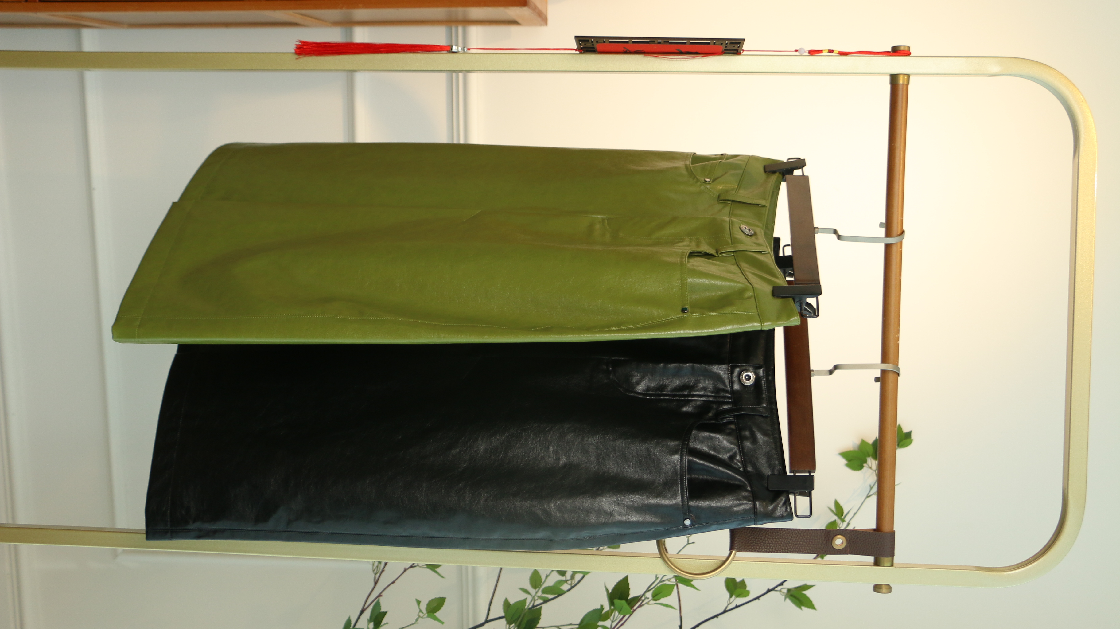 前开叉,拉长腿型 两个颜色,亮眼的芥末绿和稳重的黑色