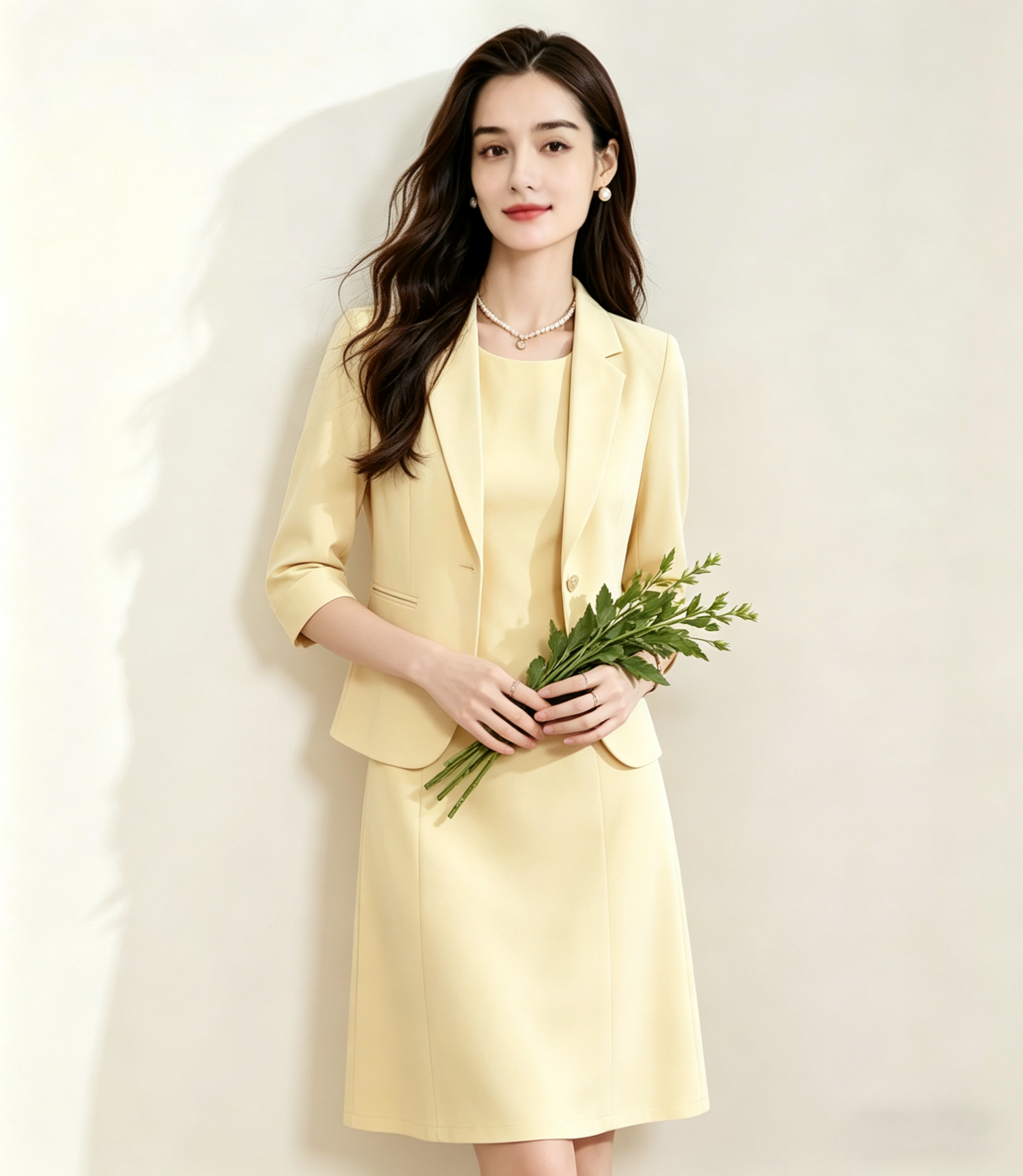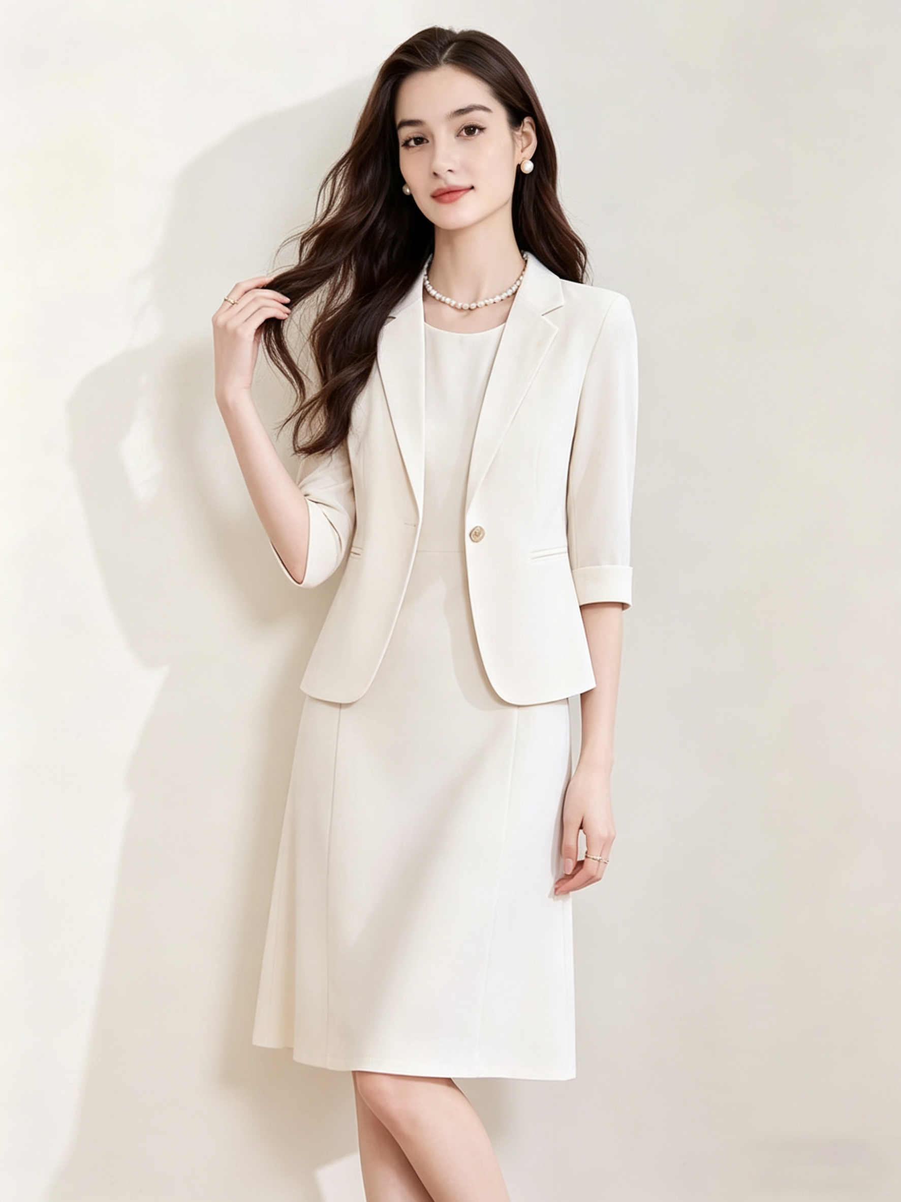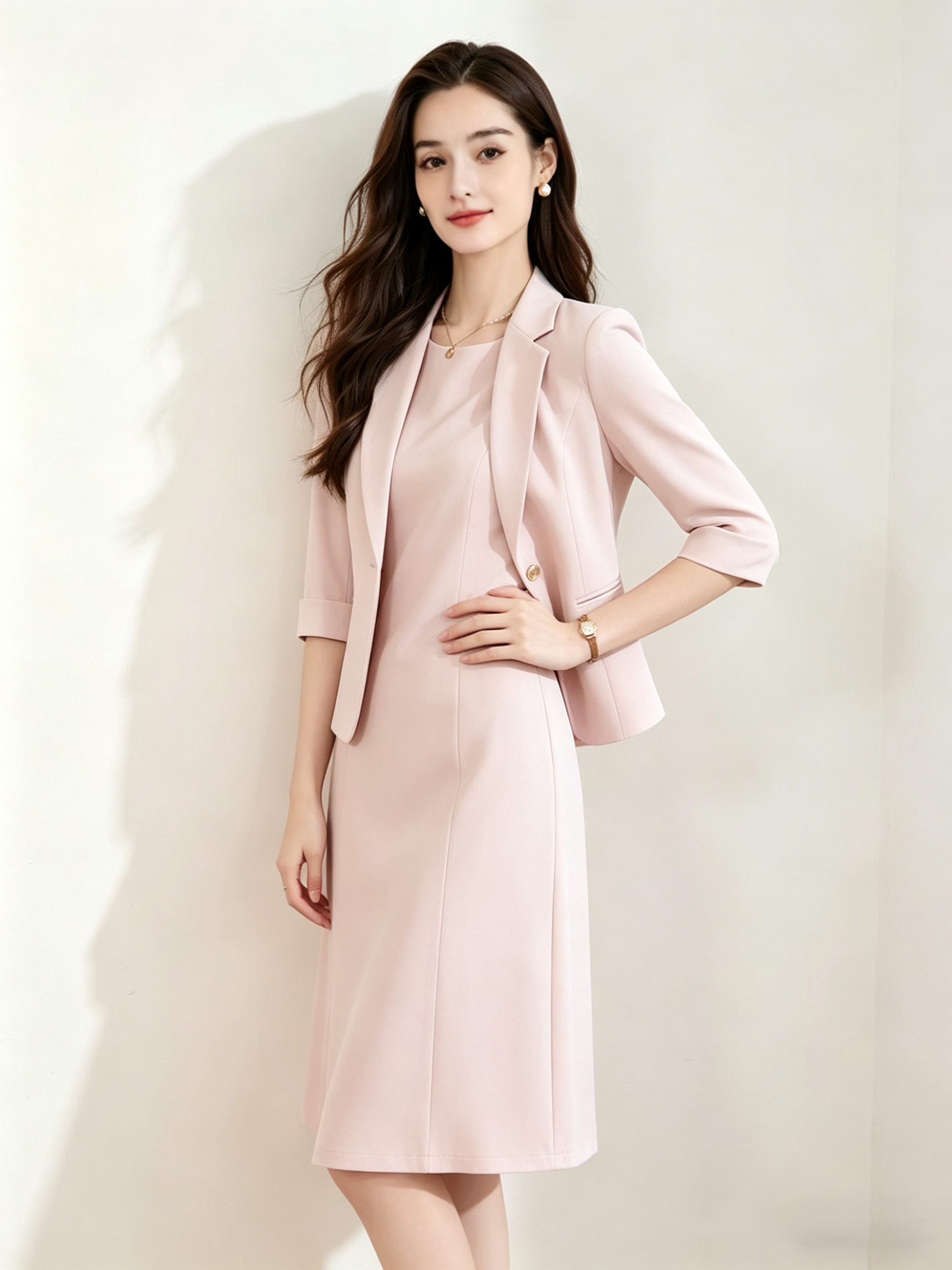 「下单赠送两款胸针」(限时福利)洛诗琳新款通勤七分袖西装外套+无袖直筒连衣裙两件套 99056 (下单7天左右发)