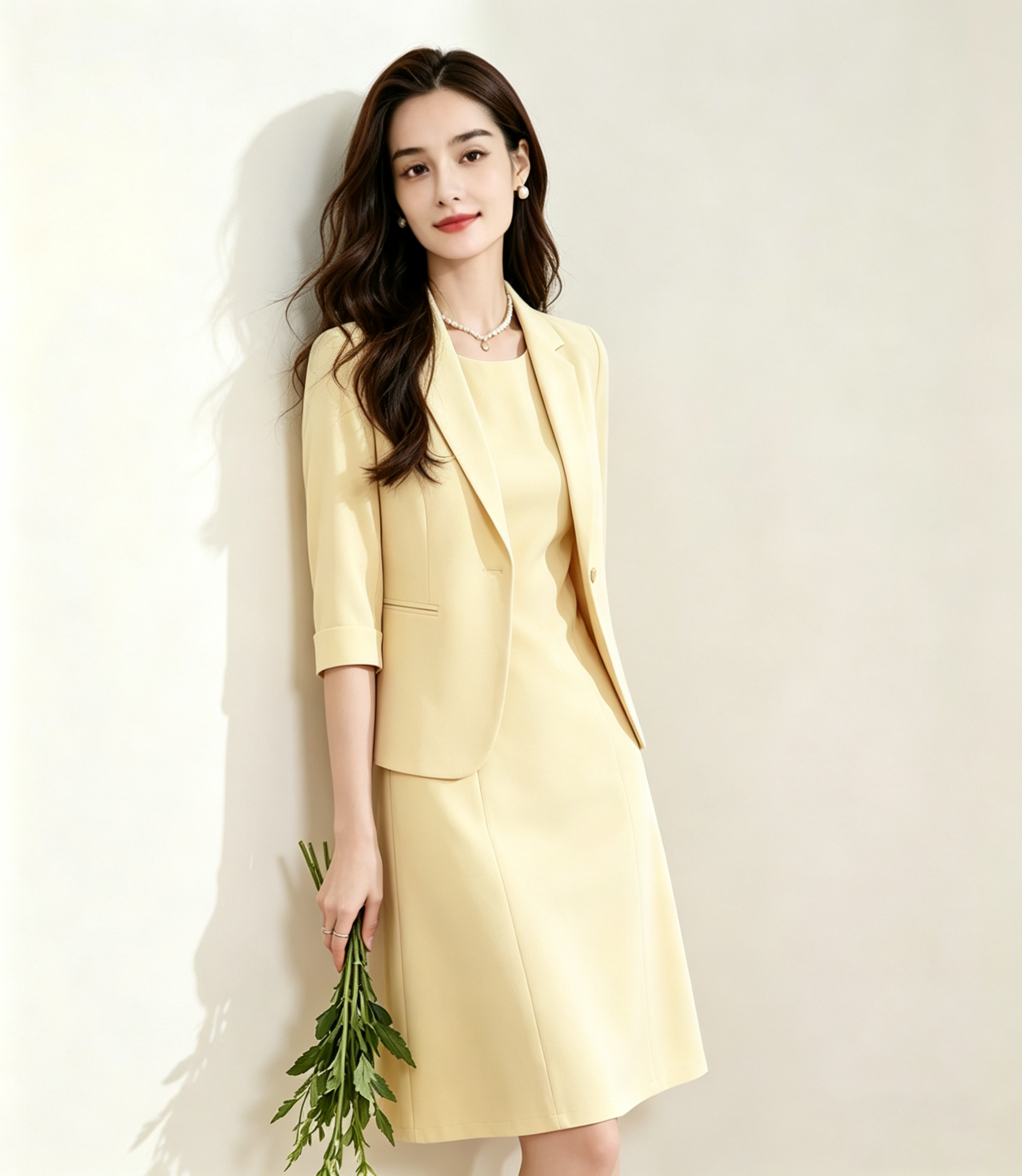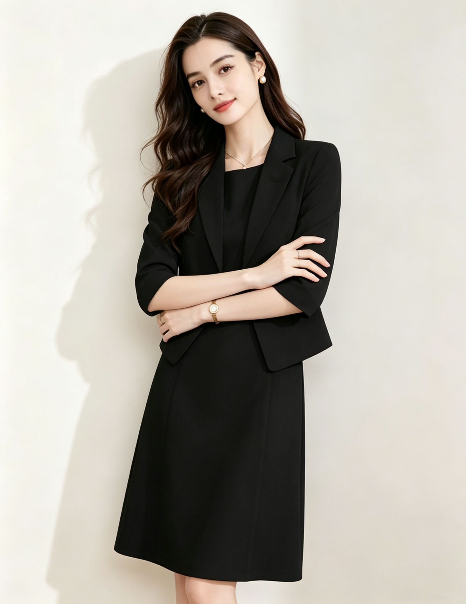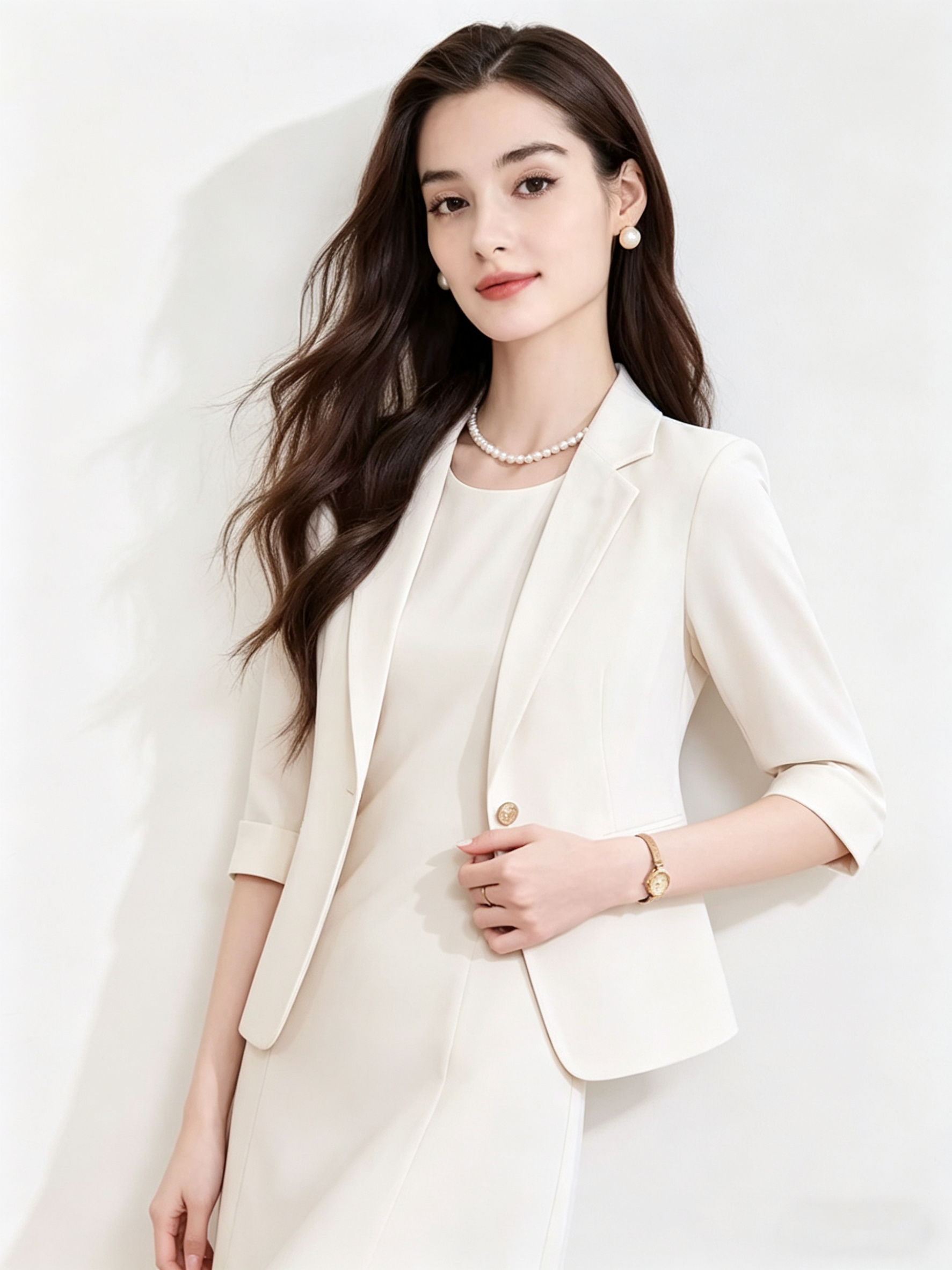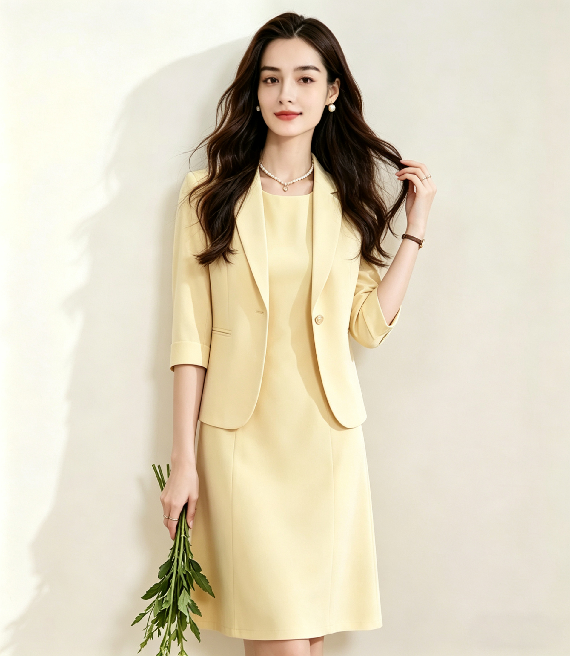 「下单赠送两款胸针」(限时福利)洛诗琳新款通勤七分袖西装外套+无袖直筒连衣裙两件套 99056 (下单7天左右发)