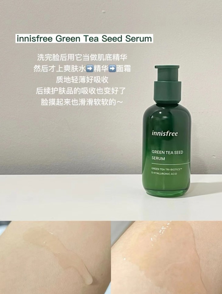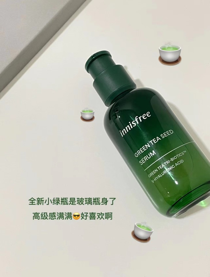 👑Innisfree悦诗风吟绿茶籽精华30ml/80ml 🔥全新升级!水嫩小绿瓶💫 💦功效升级:15层深润补水,224%补水提升,72h长效保湿 💚配方升级:无酒精,无人工香精,敏感肌安心使用! ✅环保包装设计,提升再利用率🌿 ✨质地柔滑轻薄,极易吸收,上脸水润清爽不油腻 🍃吸收后肌肤弹润嘭嘭的,还可以改善肌肤光泽 💎有效:补水保湿,舒缓肌肤,即刻改善,维稳肌肤✔️