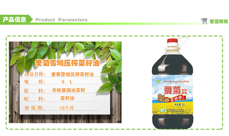 爱菊 食用油 雪域压榨 菜籽油 5L