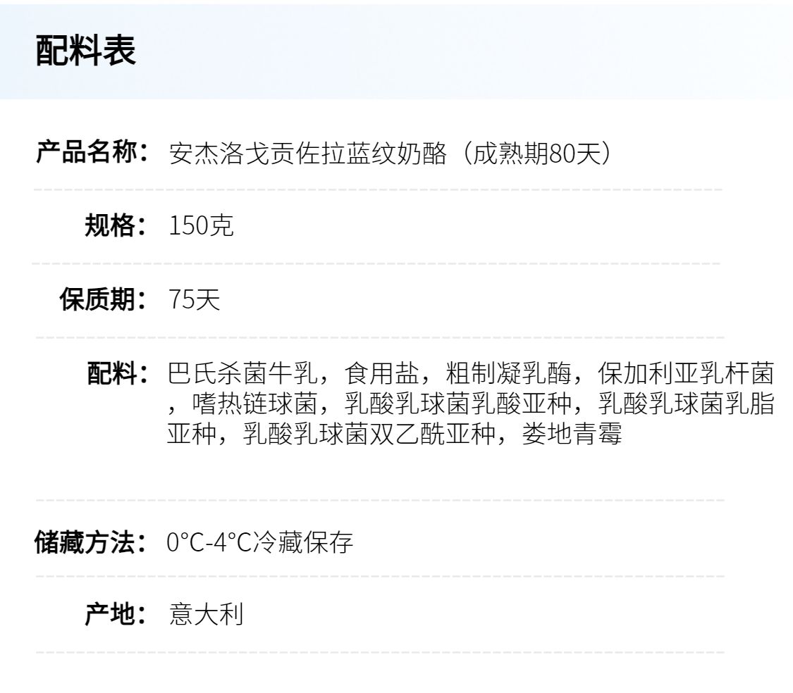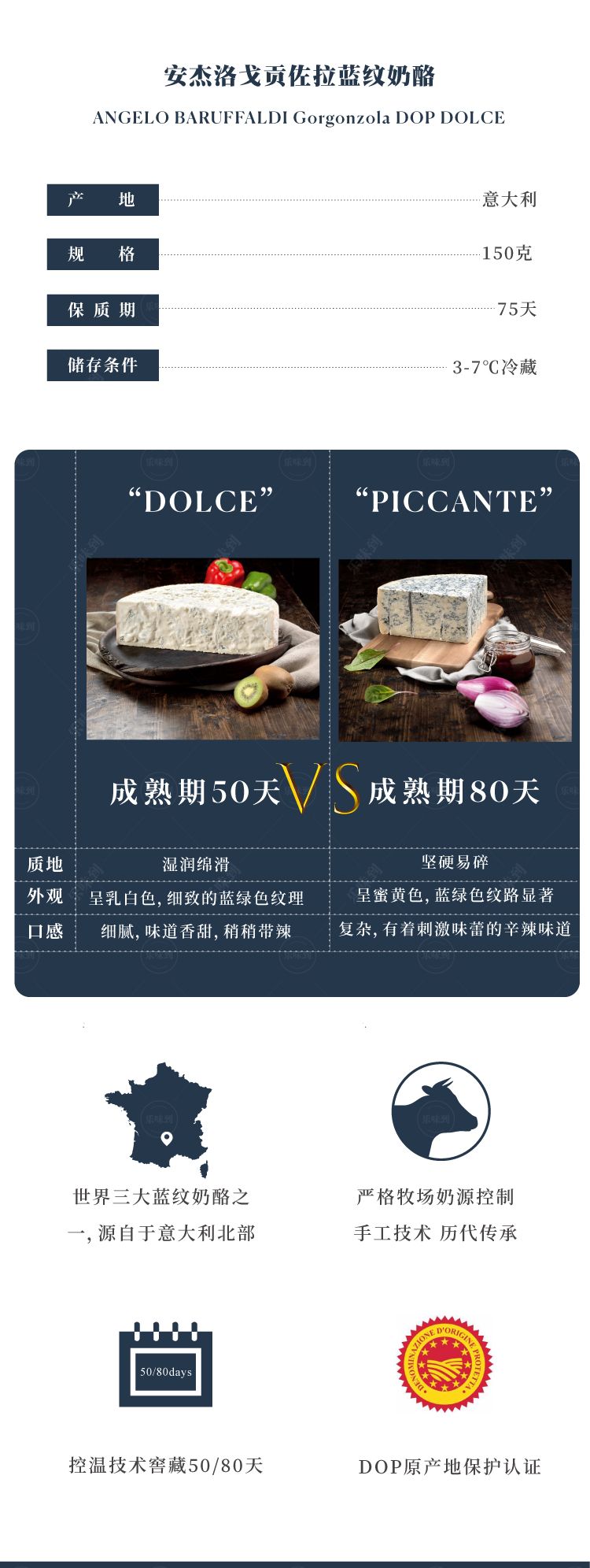 戈贡佐拉蓝纹奶酪 Gorgonzola 150g 意大利原装进口 蓝纹臭奶酪