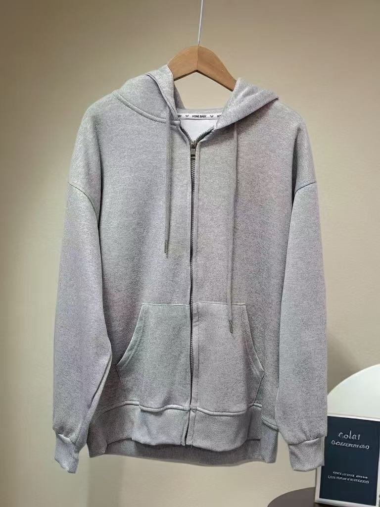 【孤品捡漏】(样衣)G75浅灰连帽开衫卫衣外套-喜出
