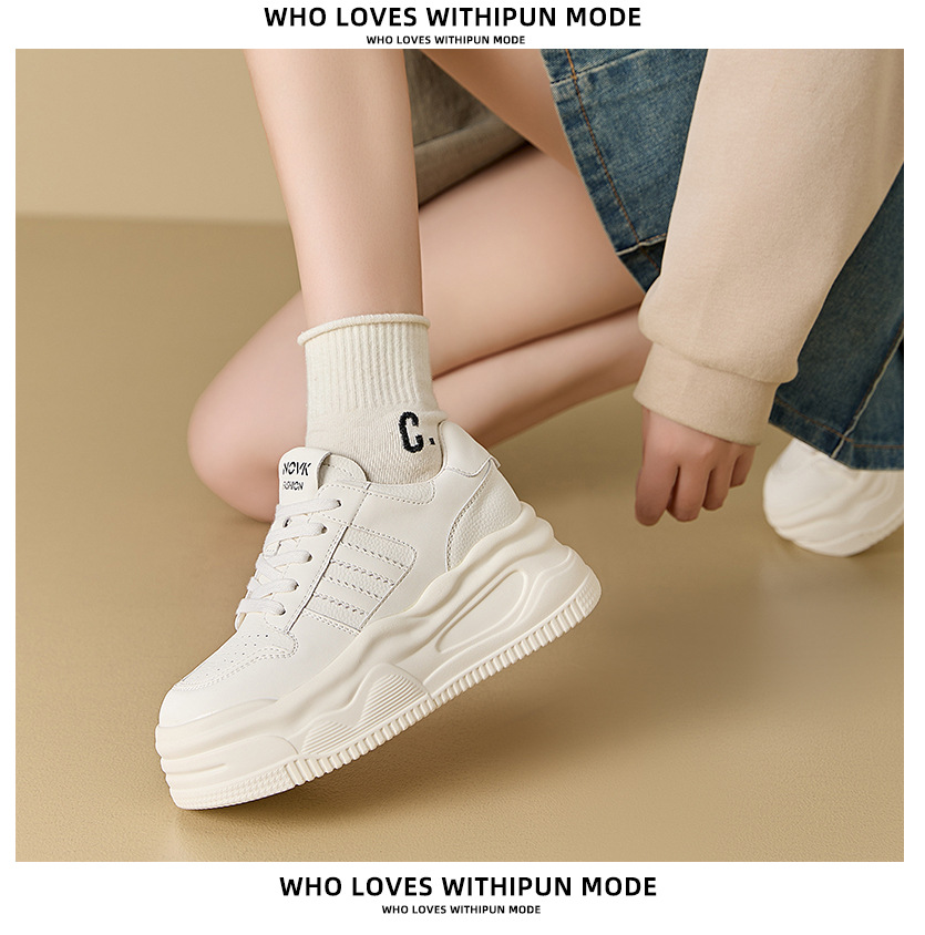 加绒软底不累脚运动鞋轻便款,休闲厚底增高小白鞋子PC-9166