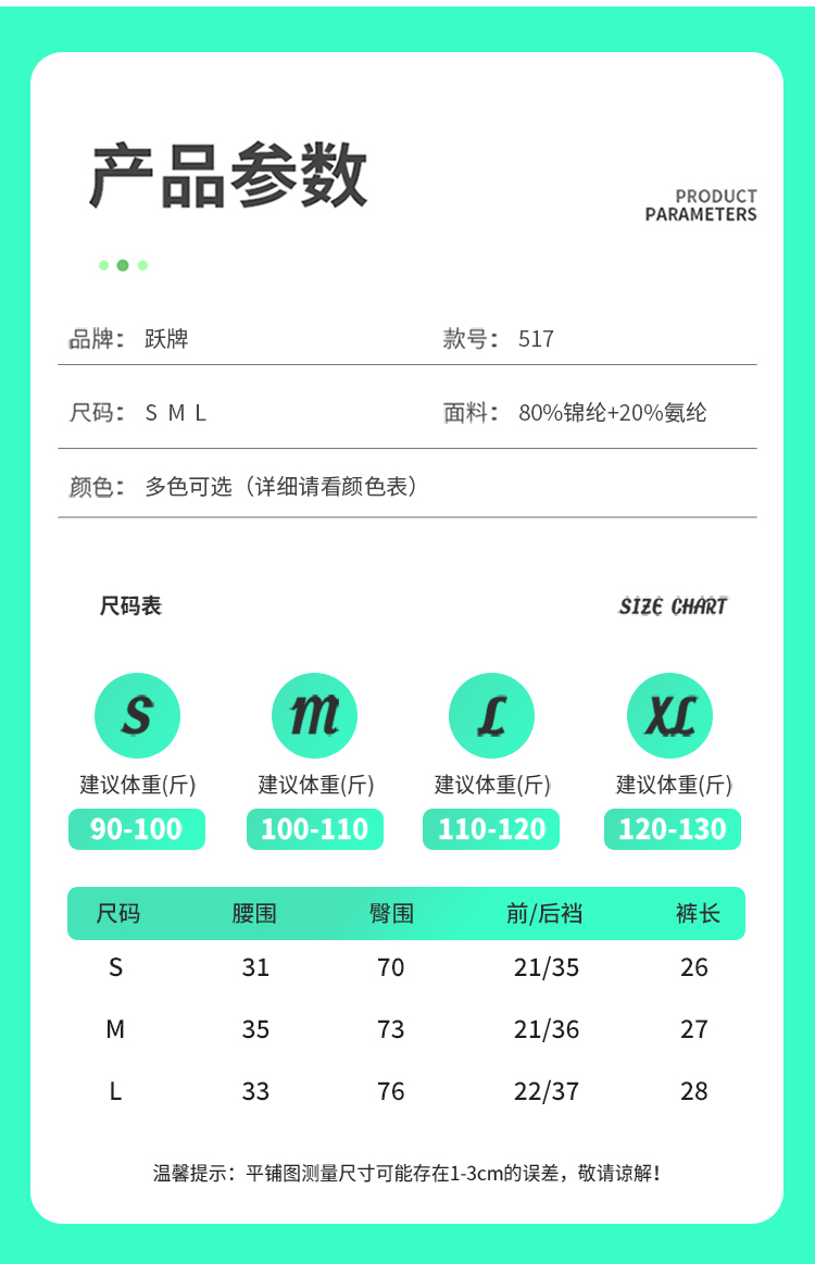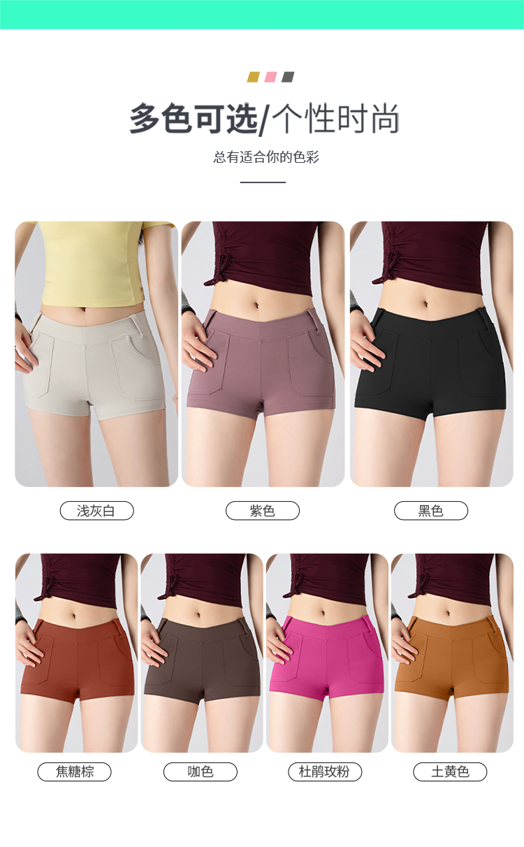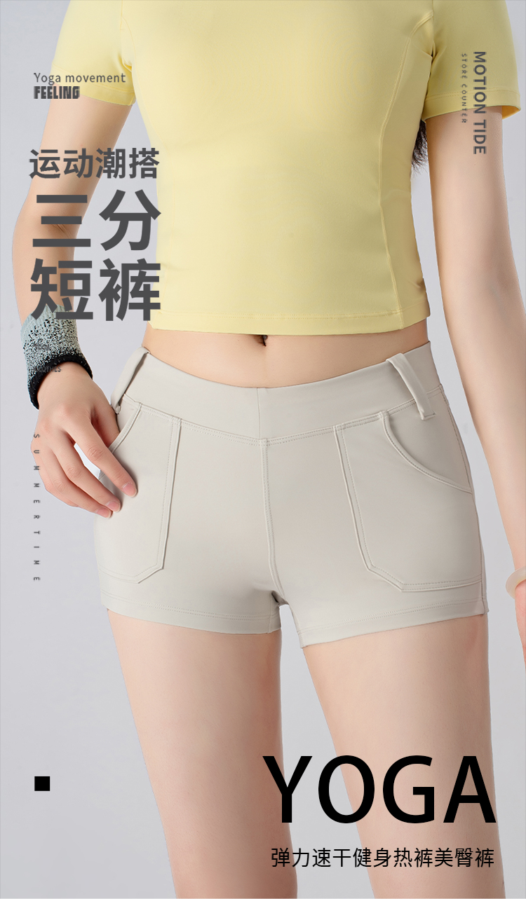 跃牌【小甜心】系列 瑜伽三分短裤跳操运动骑行裤弹力速干健身热裤美臀裤夏口袋517
