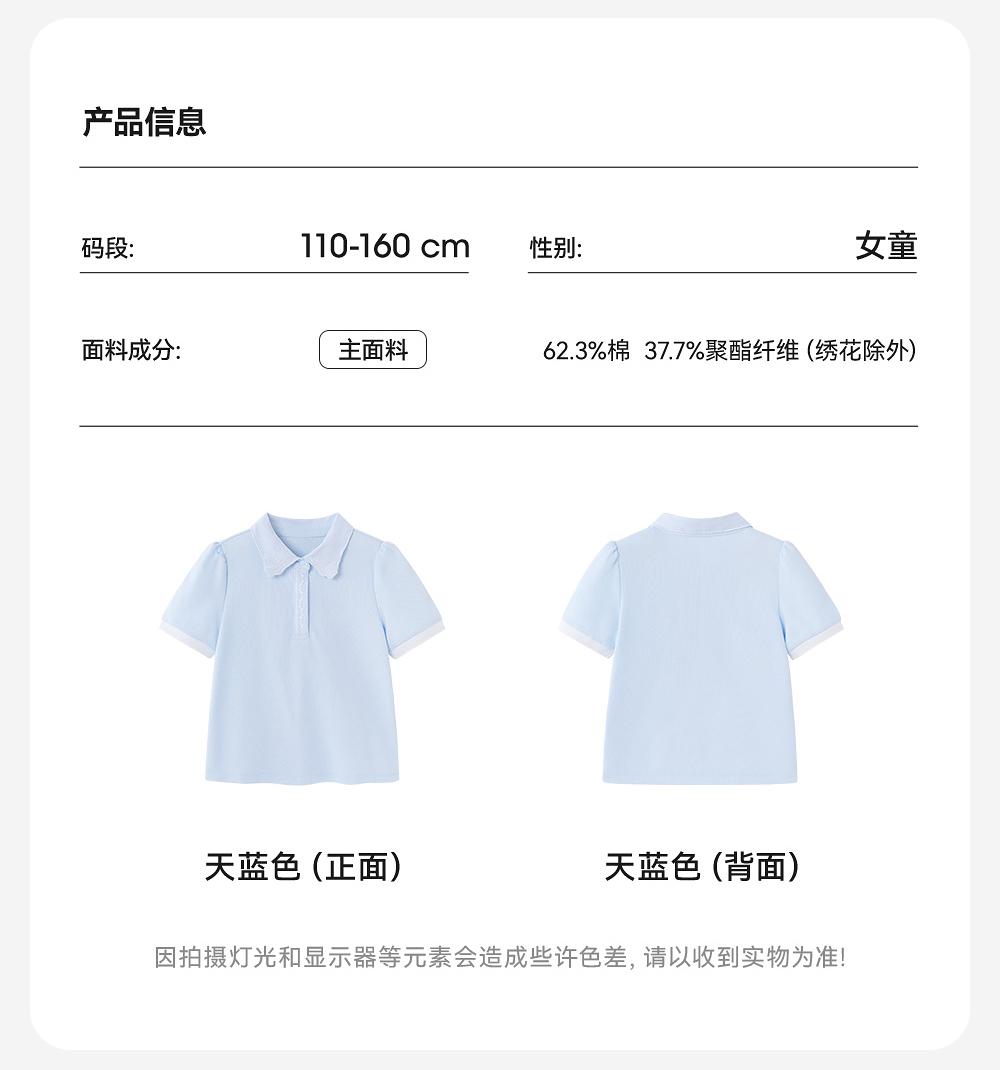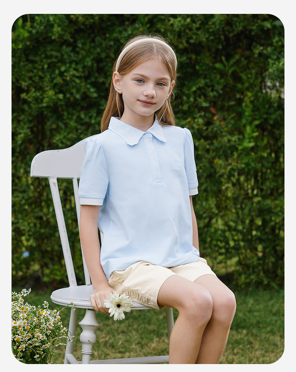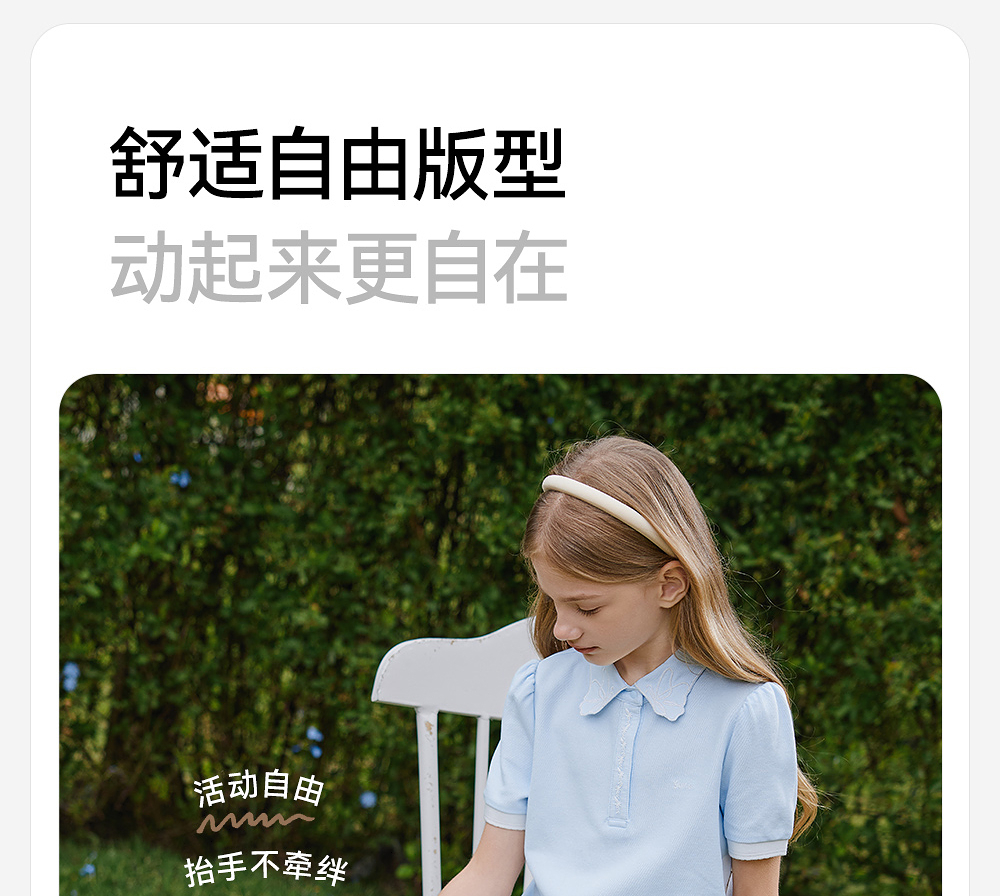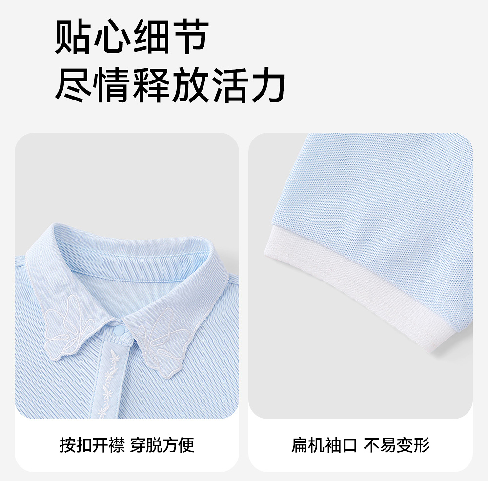 英氏儿童衣服夏季凉感速干短袖透气T恤中大童POLO衫女童T恤新款