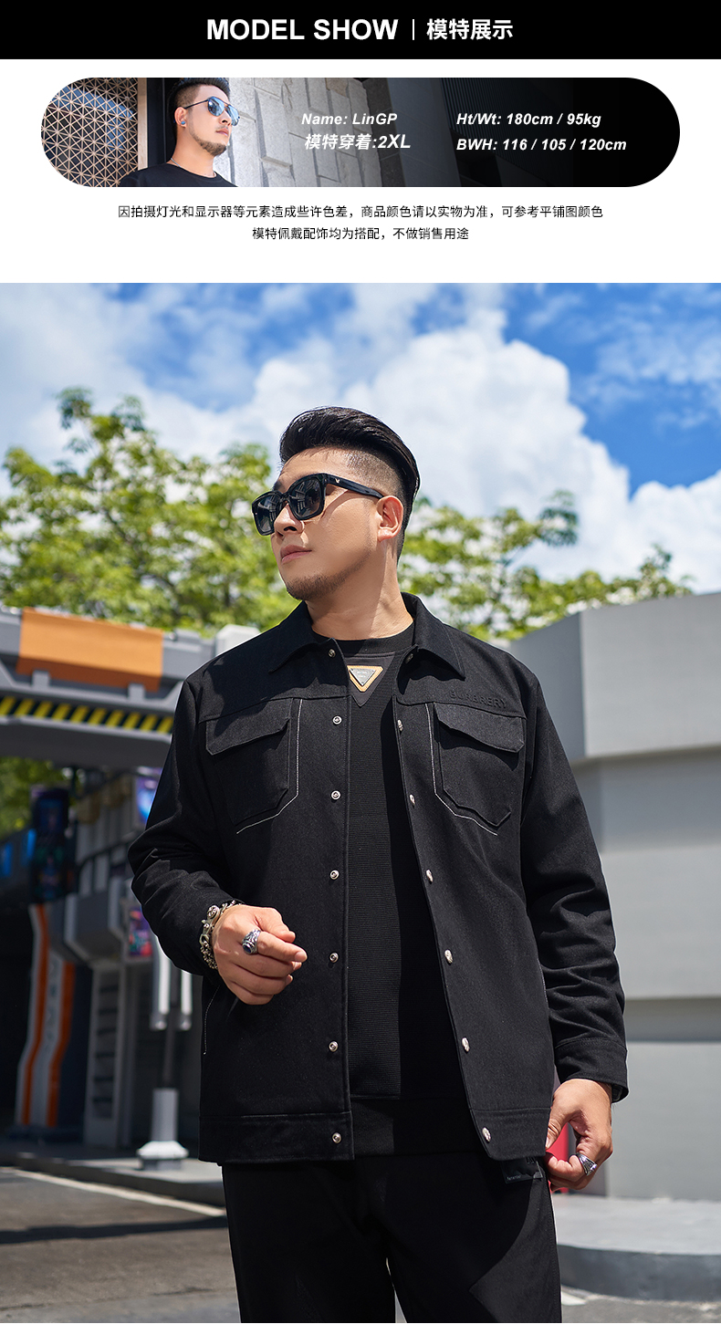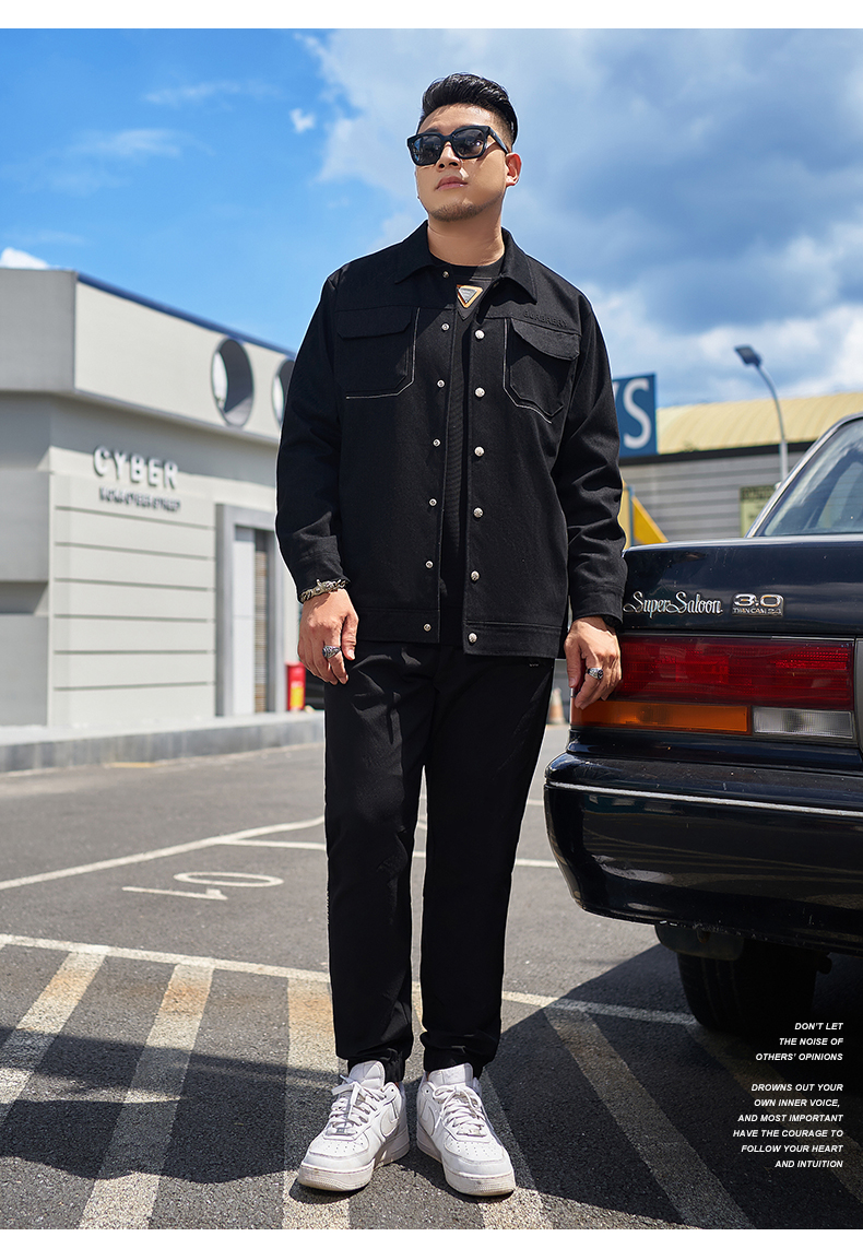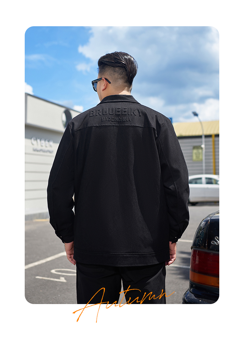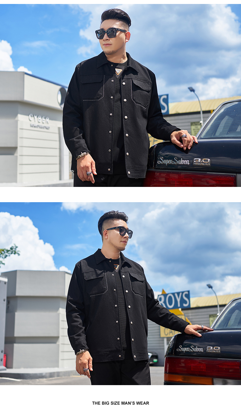【新款DMH】大依优型大码翻领衬衫外套男宽松加肥加大码上衣夹克运动潮流