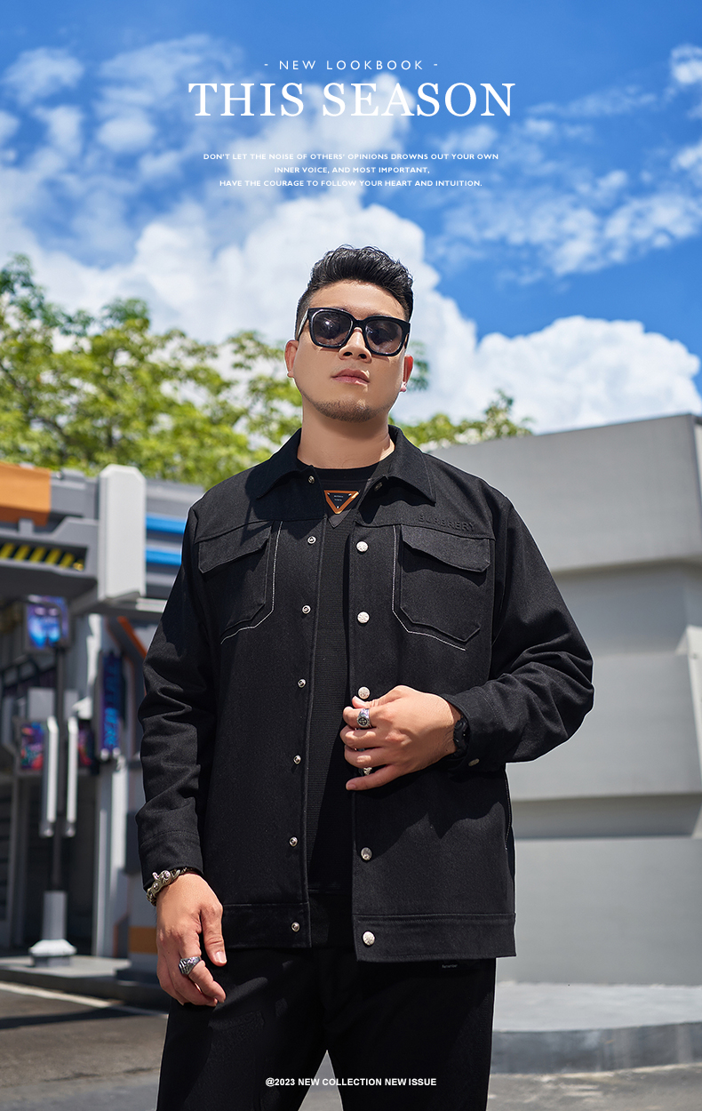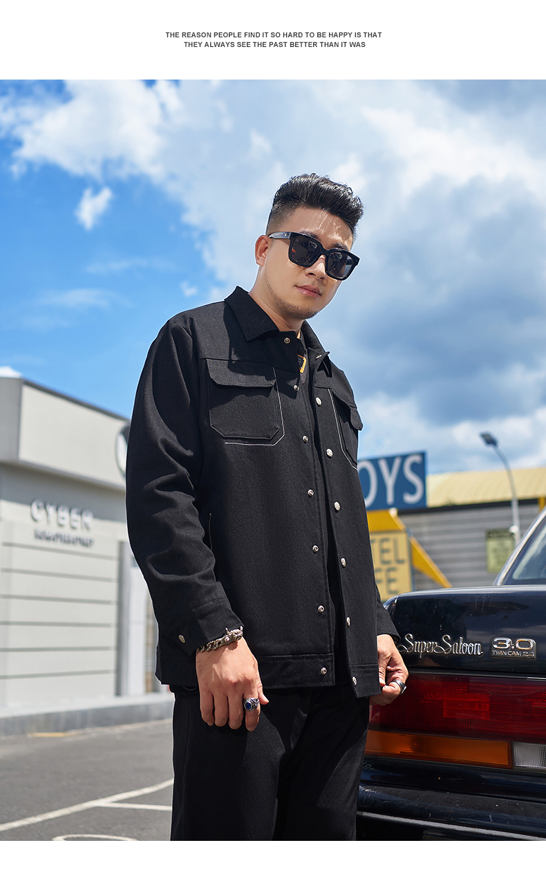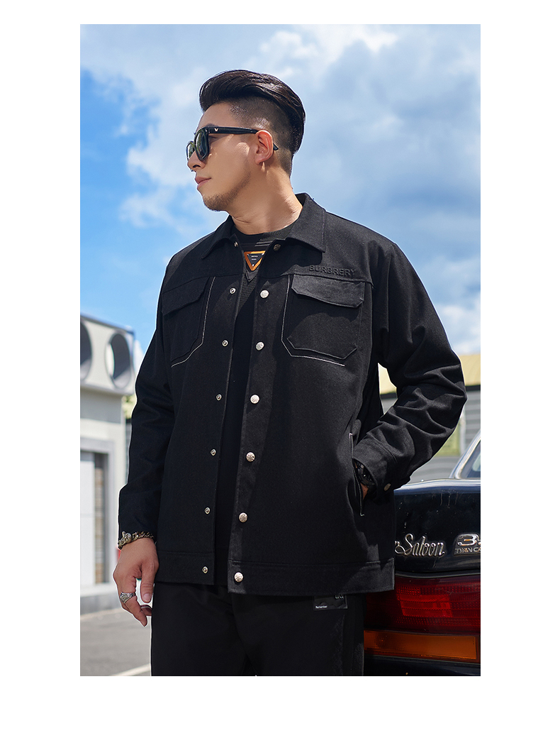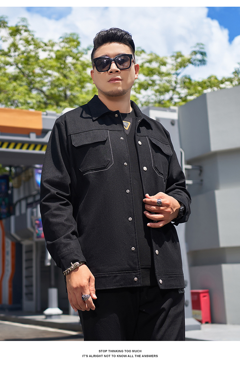【新款DMH】大依优型大码翻领衬衫外套男宽松加肥加大码上衣夹克运动潮流