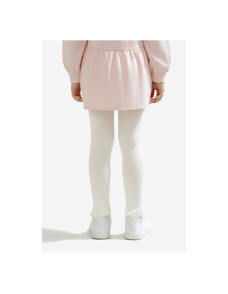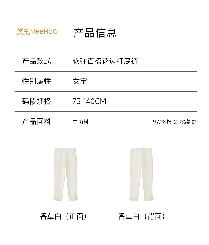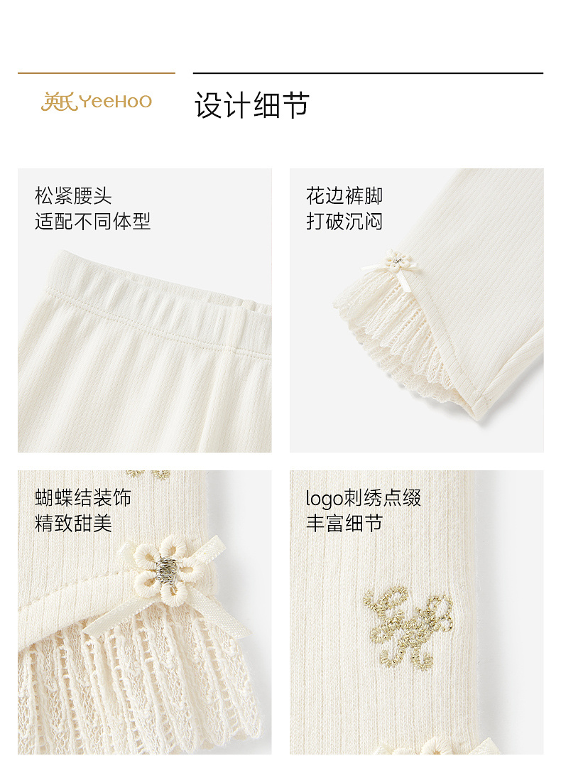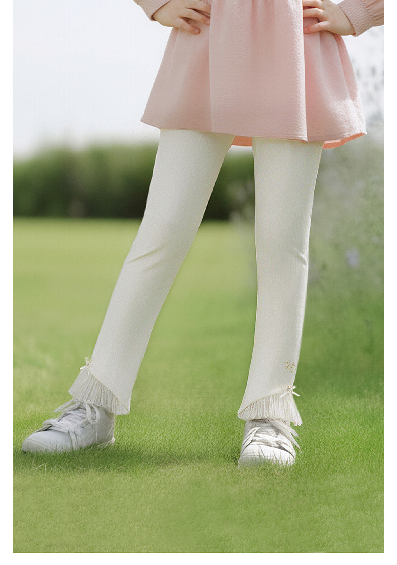 【商场同款】英氏儿童裤子女童长裤针织纯棉白色打底裤新蕾丝可爱