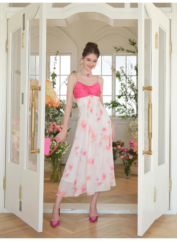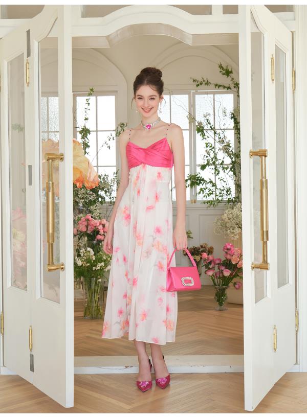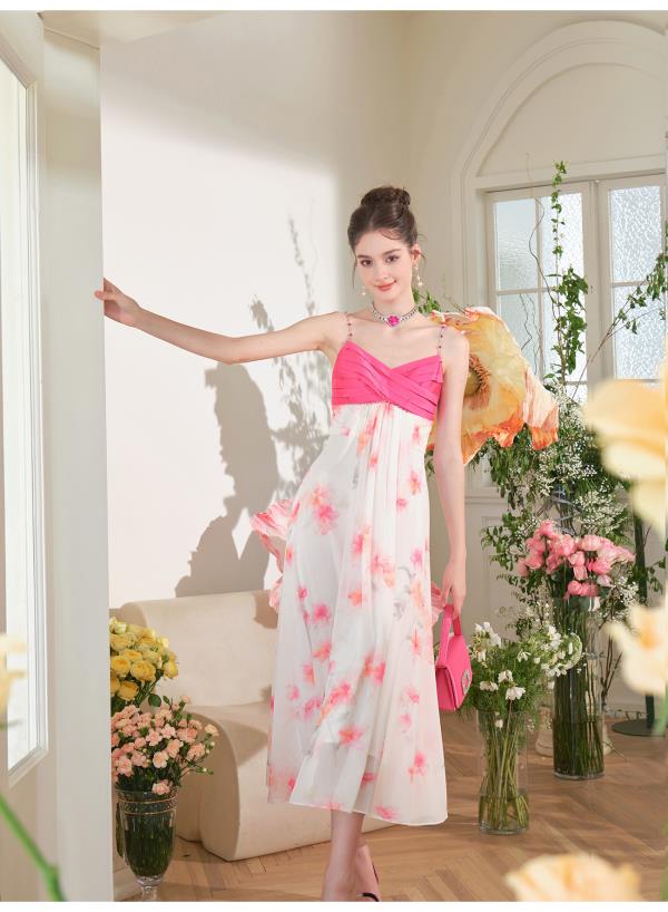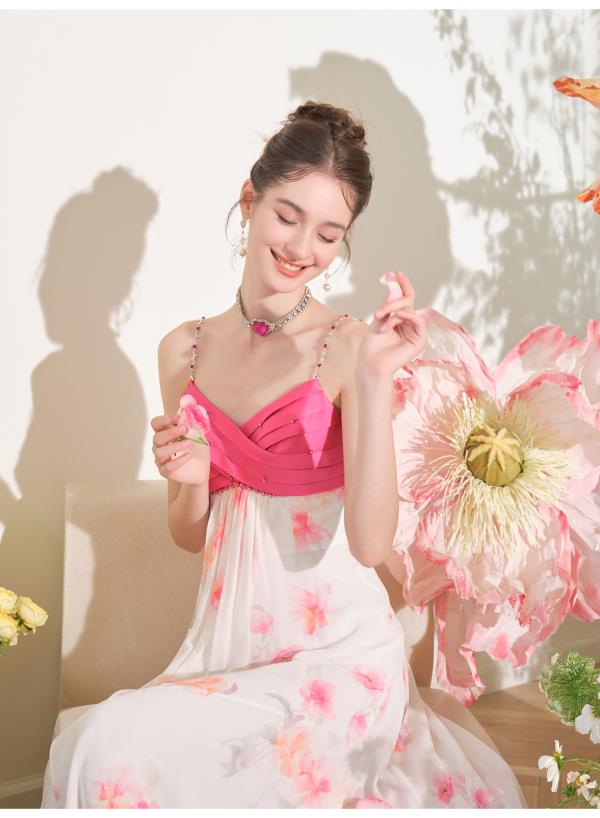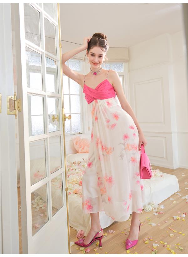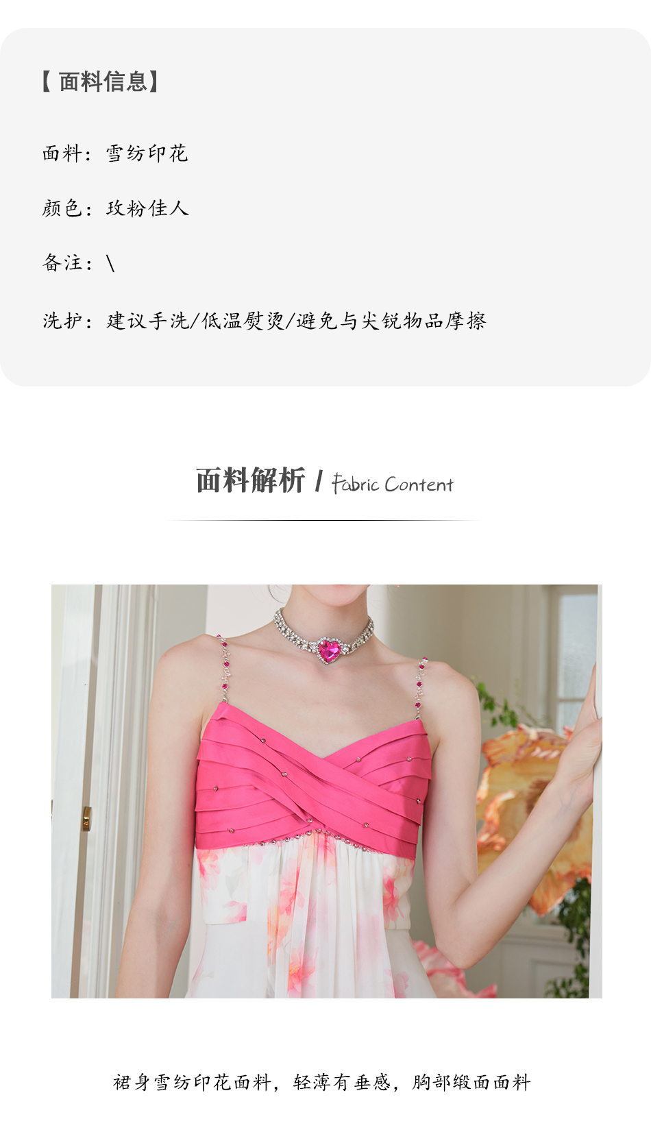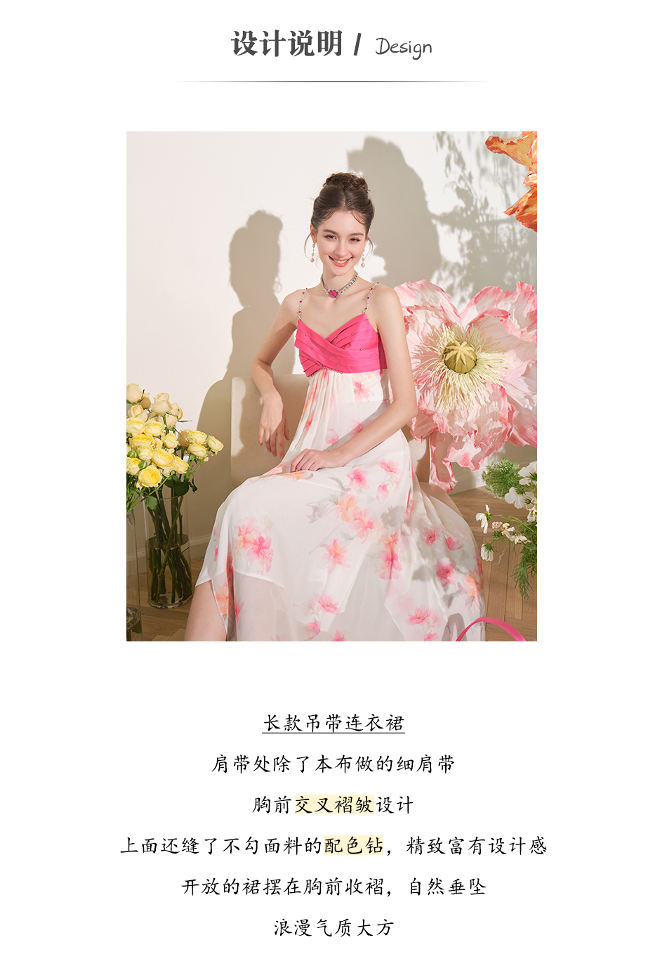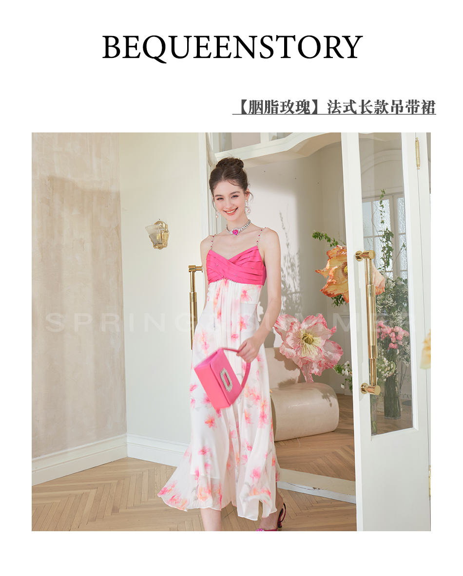 【孤品样衣,不退不换】 【胭脂玫瑰】法式气质时尚长款吊带连衣裙2023夏季新
