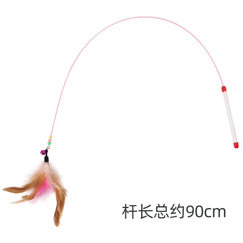 钢丝羽毛铃铛逗猫棒 长杆耐玩解闷 颜色随机 opp袋装 猫咪玩具