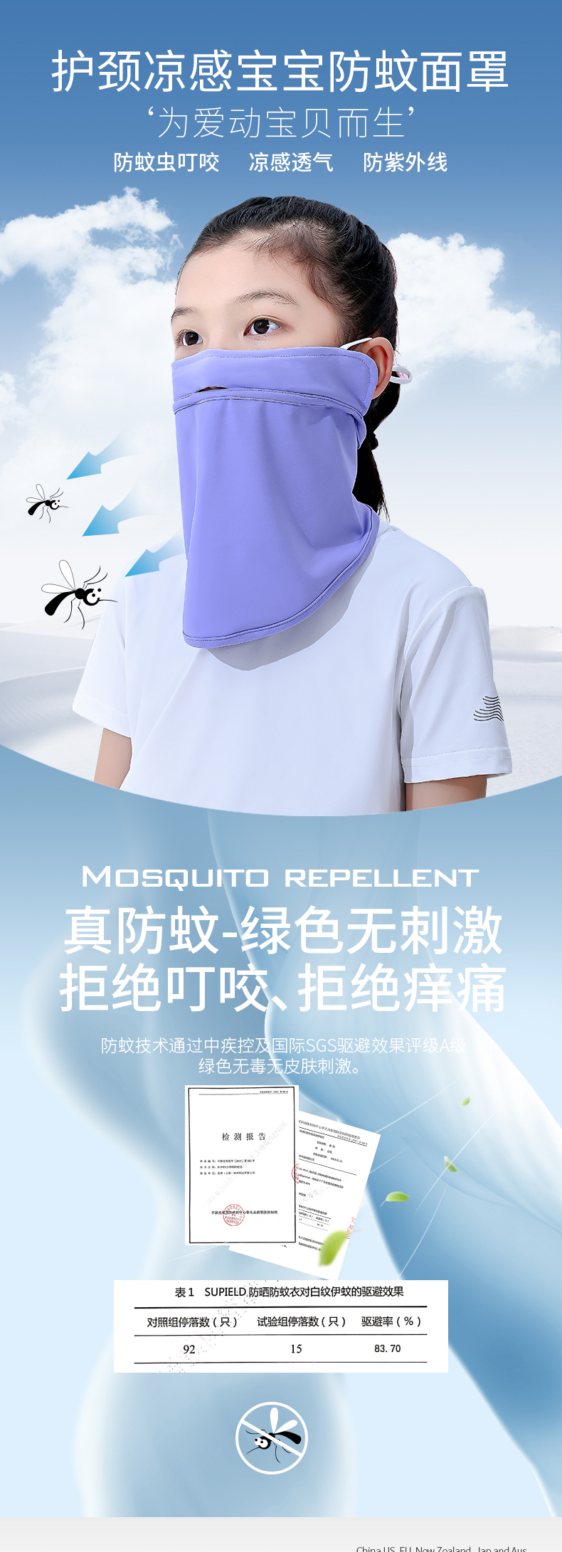 Supield素湃全波段防晒口罩儿童面罩护颈防晒伤夏季薄款轻薄透气