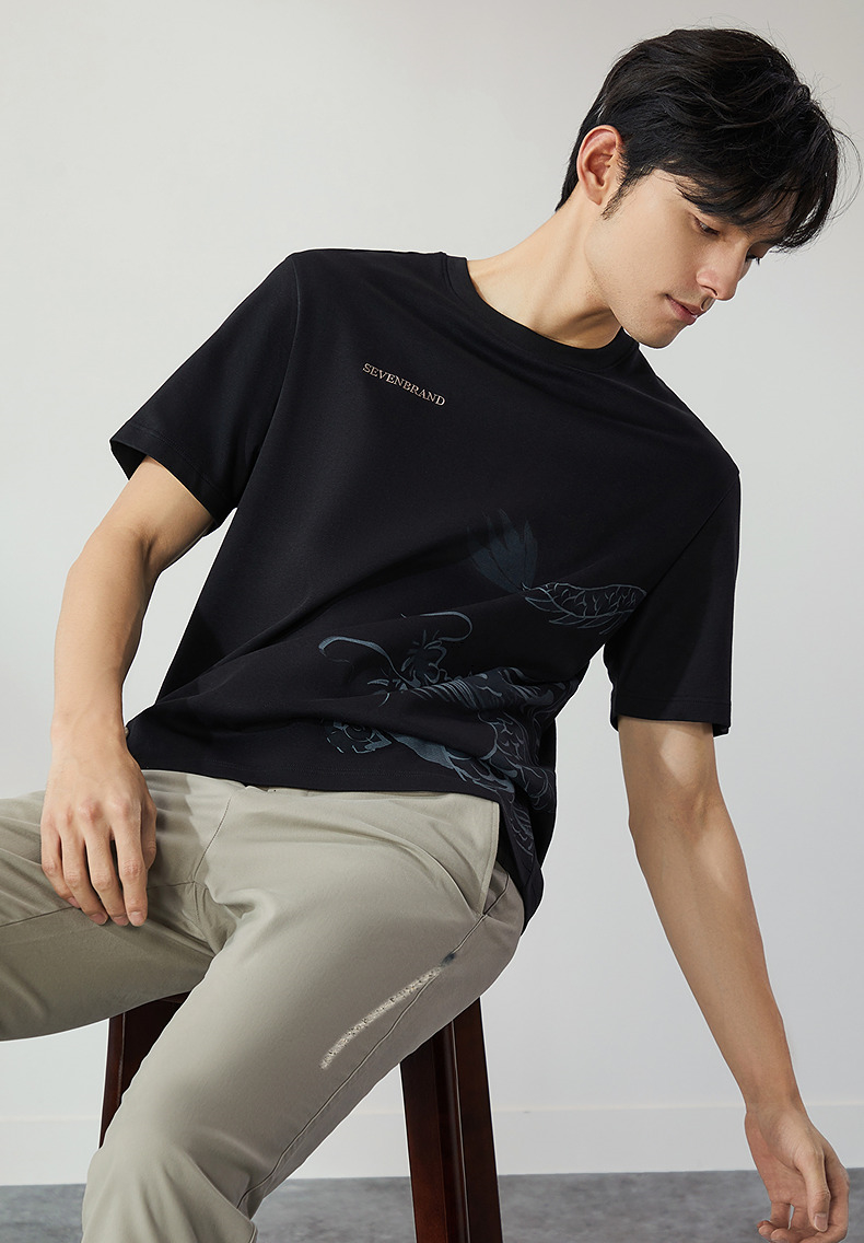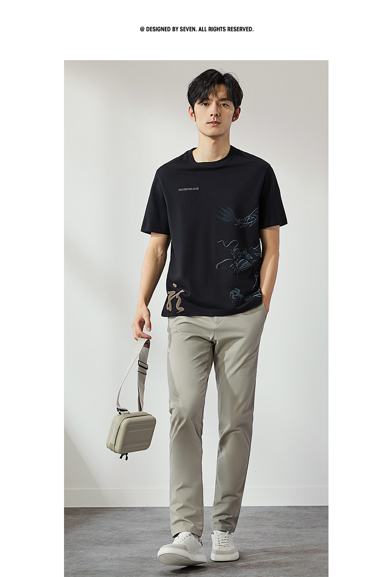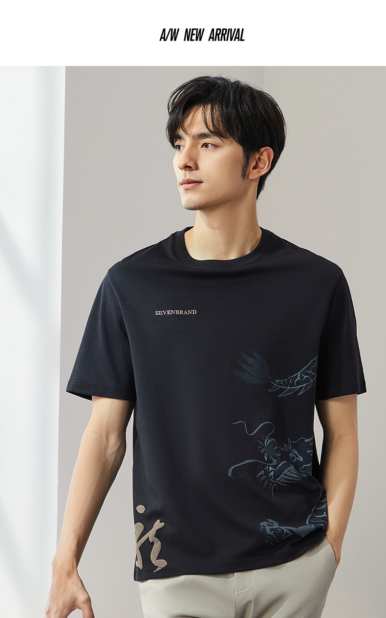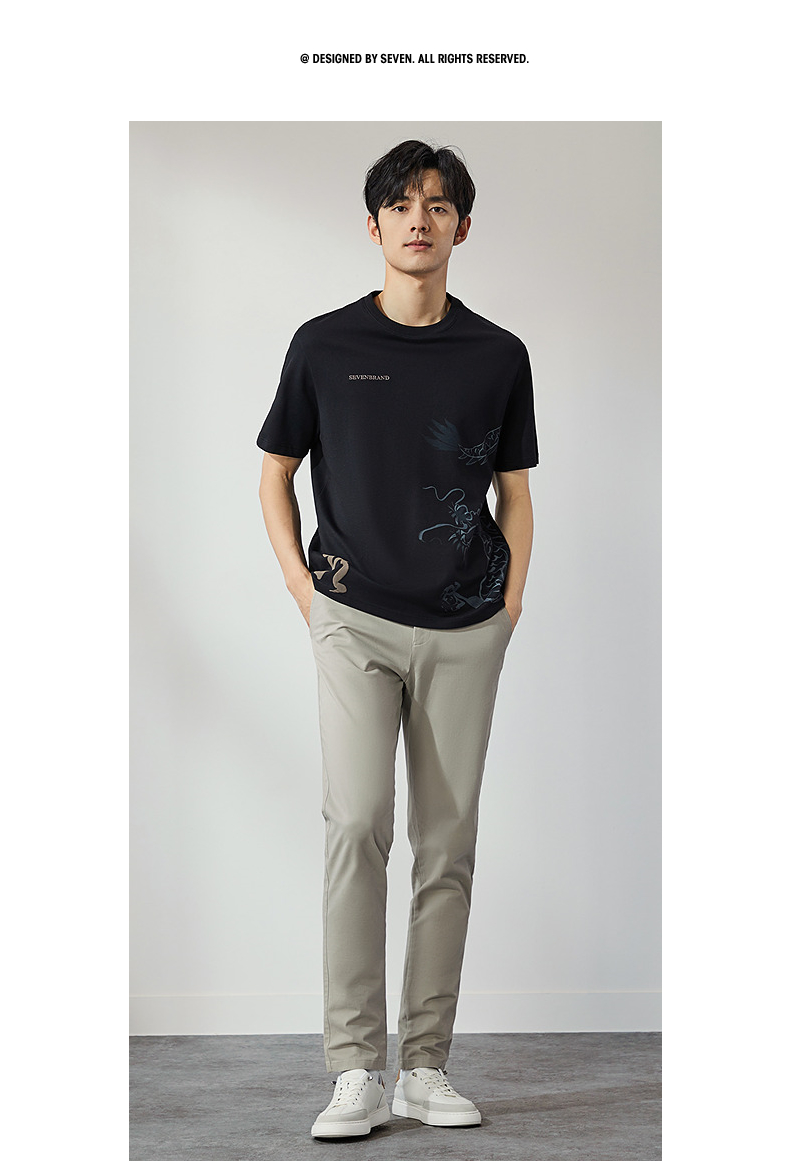 柒牌短袖T恤男2025夏季新款时尚青年休闲百搭黑色龙纹圆领薄上衣 128T71610