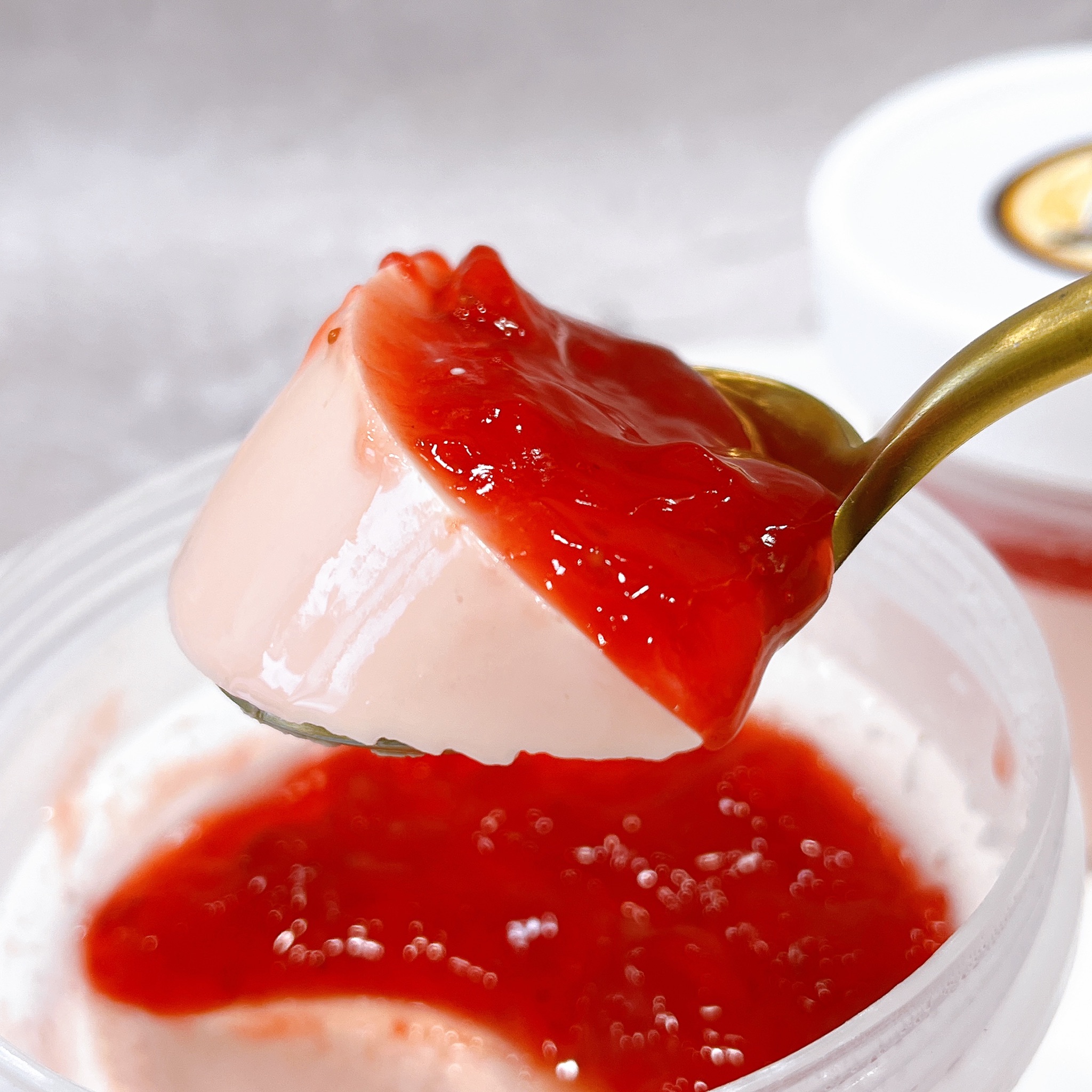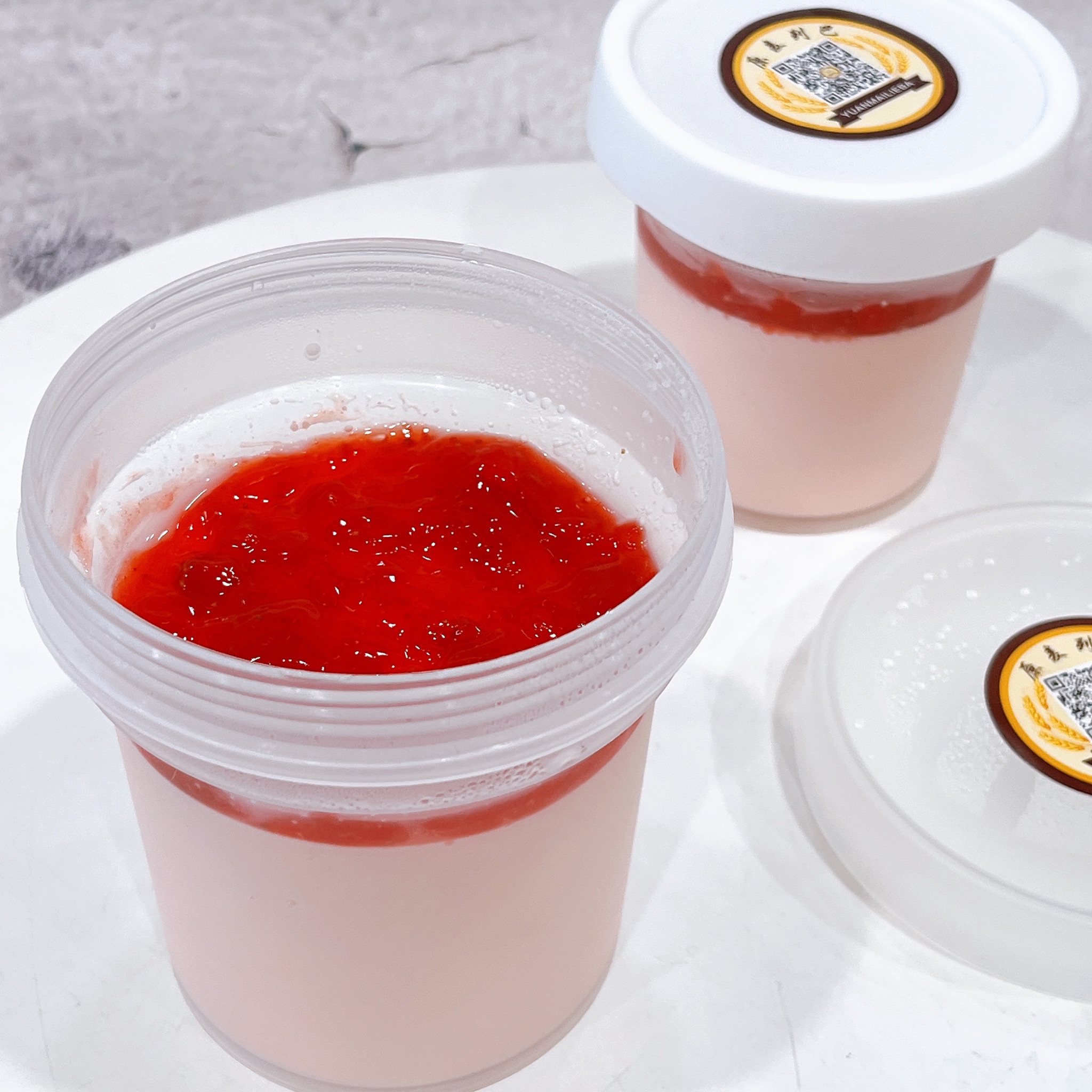 配料:纯牛奶、淡奶油、草莓果茸、草莓酱、少量白糖、进口吉利丁片