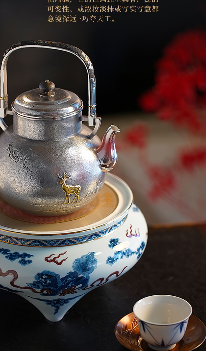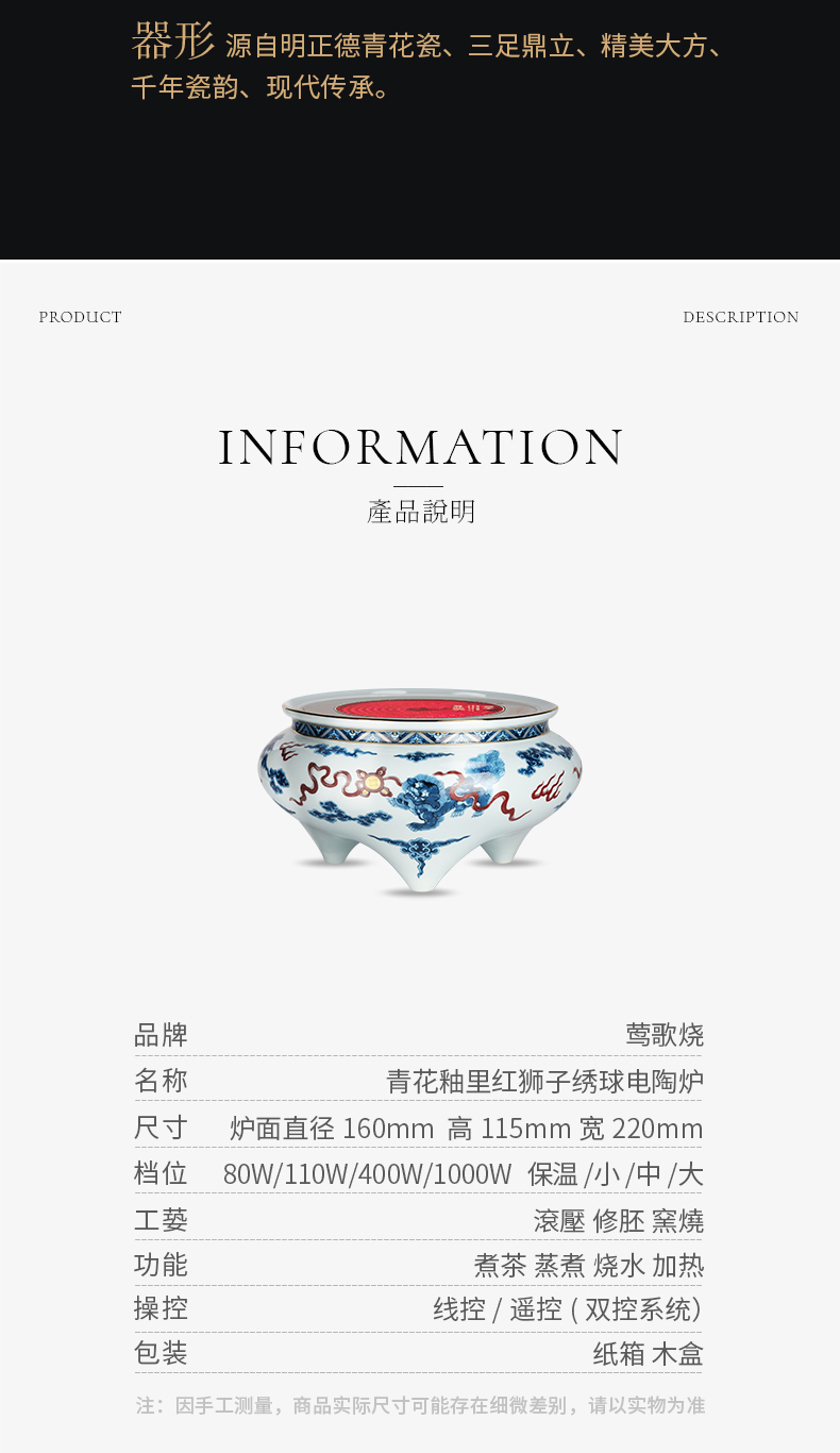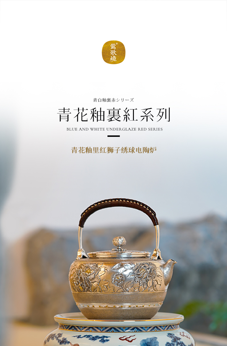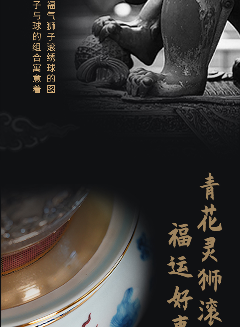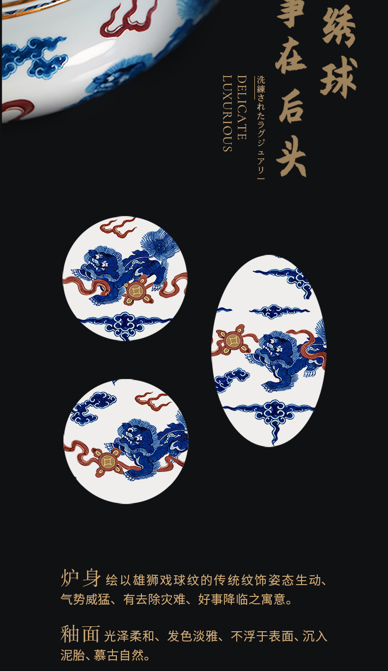 【莺歌烧旗舰店】青花釉里红狮子绣球