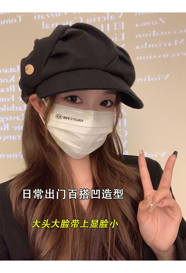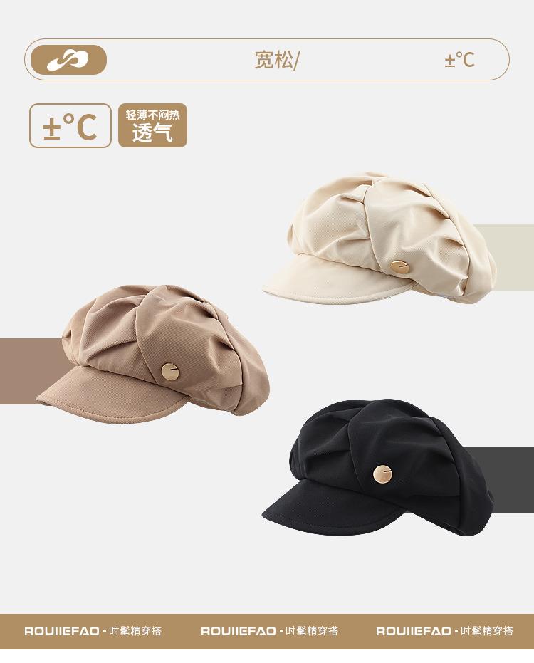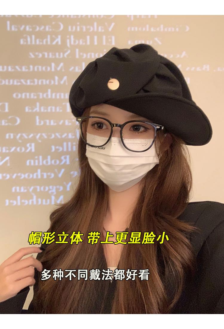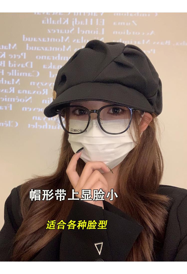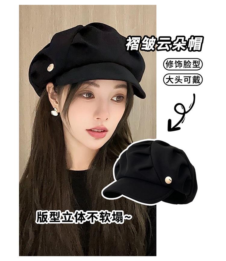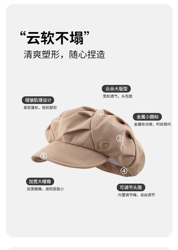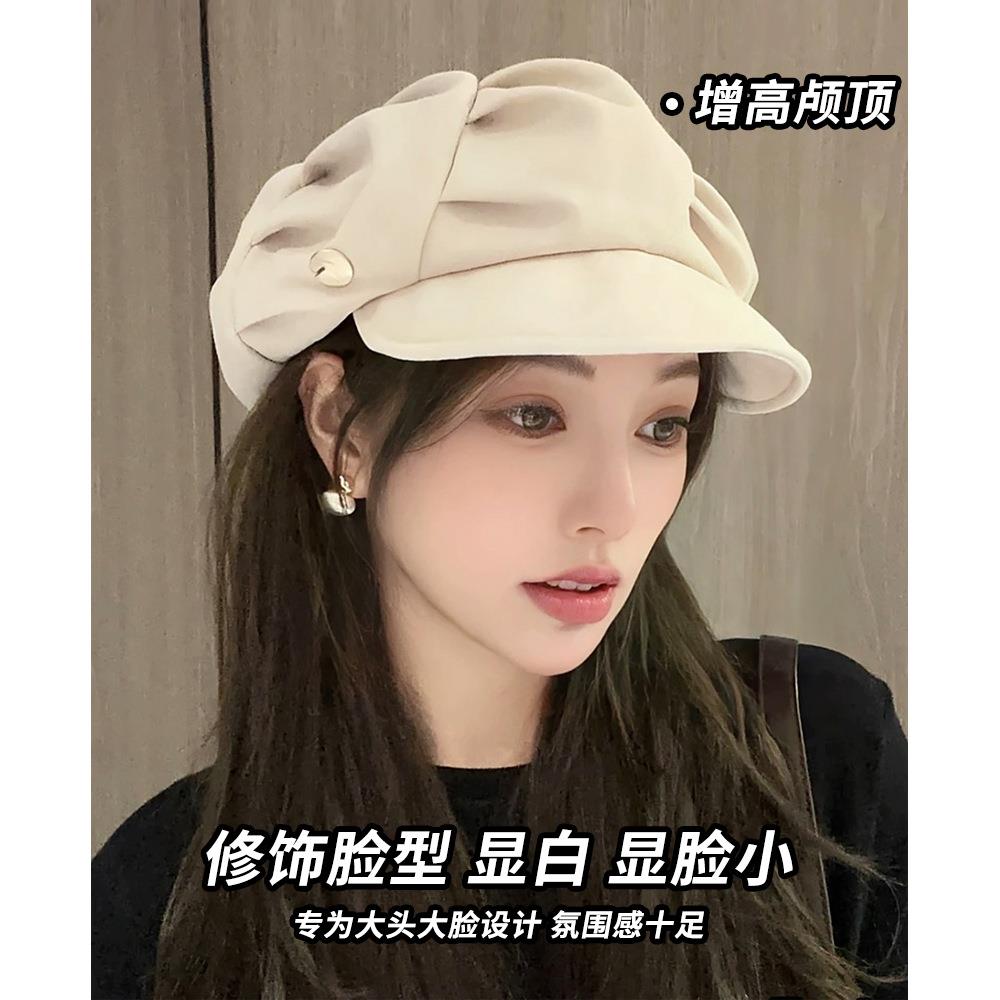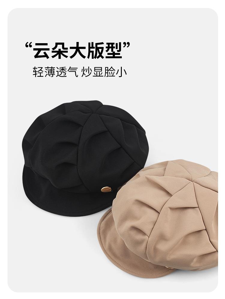 云朵八角帽女秋季薄款大头围百搭帽子显脸小韩系短檐贝雷帽潮