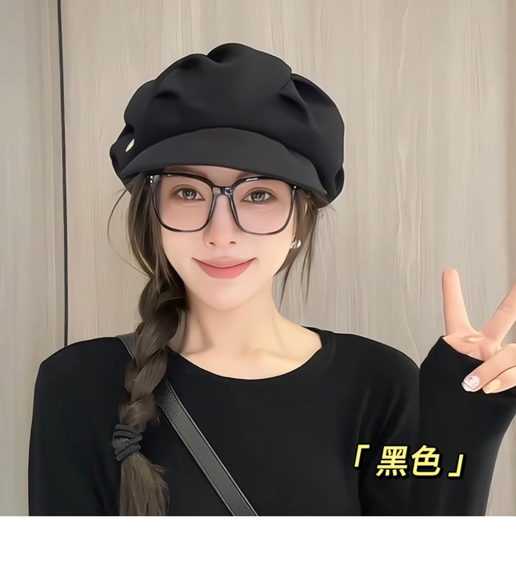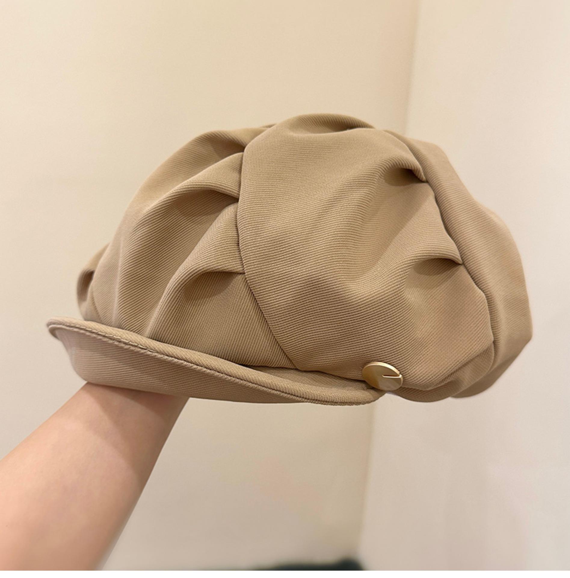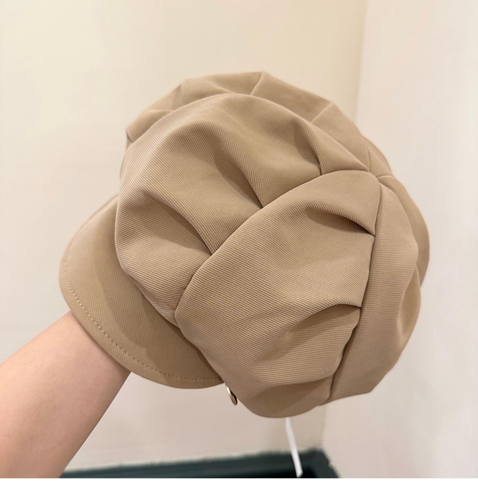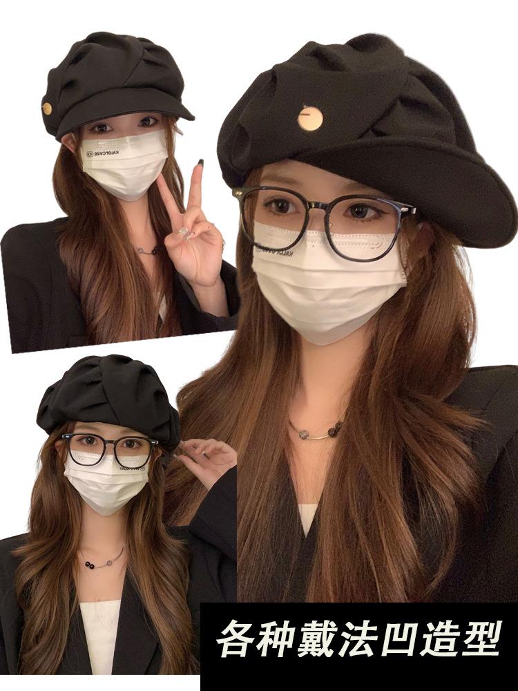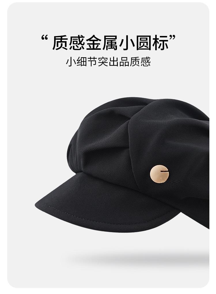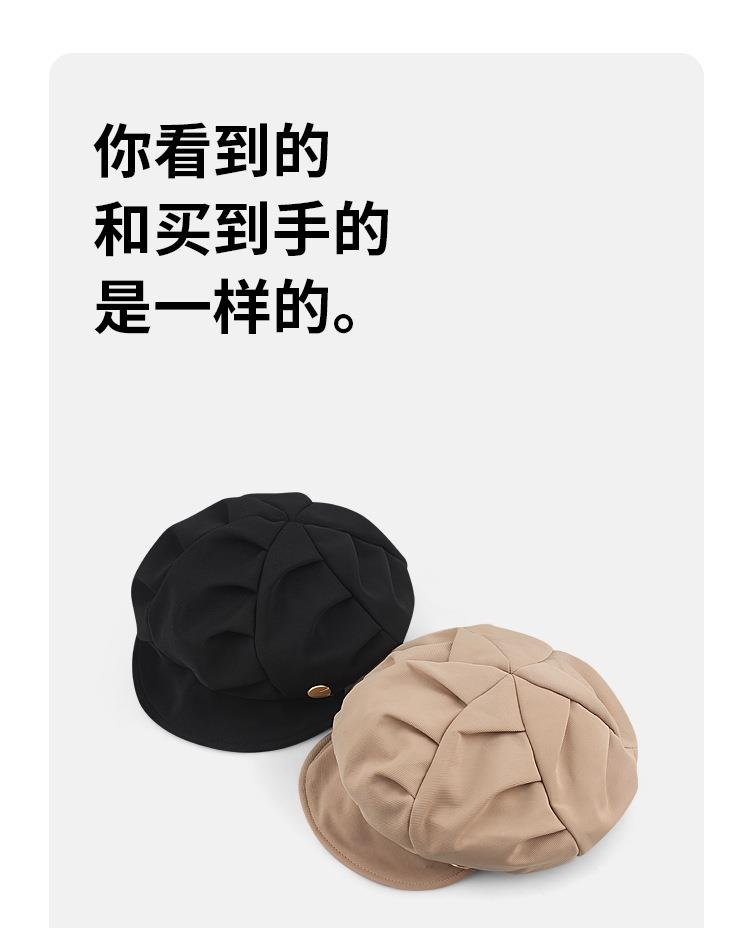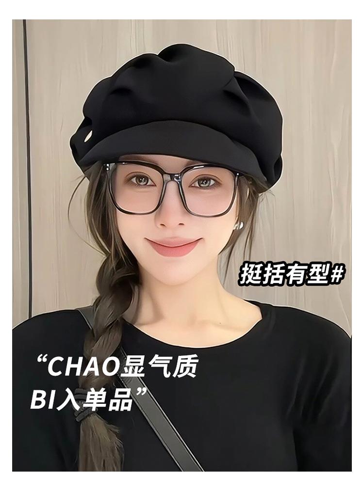 云朵八角帽女秋季薄款大头围百搭帽子显脸小韩系短檐贝雷帽潮