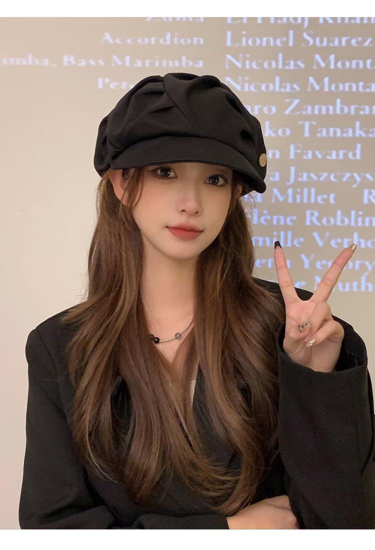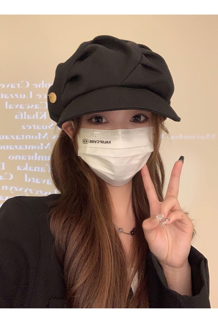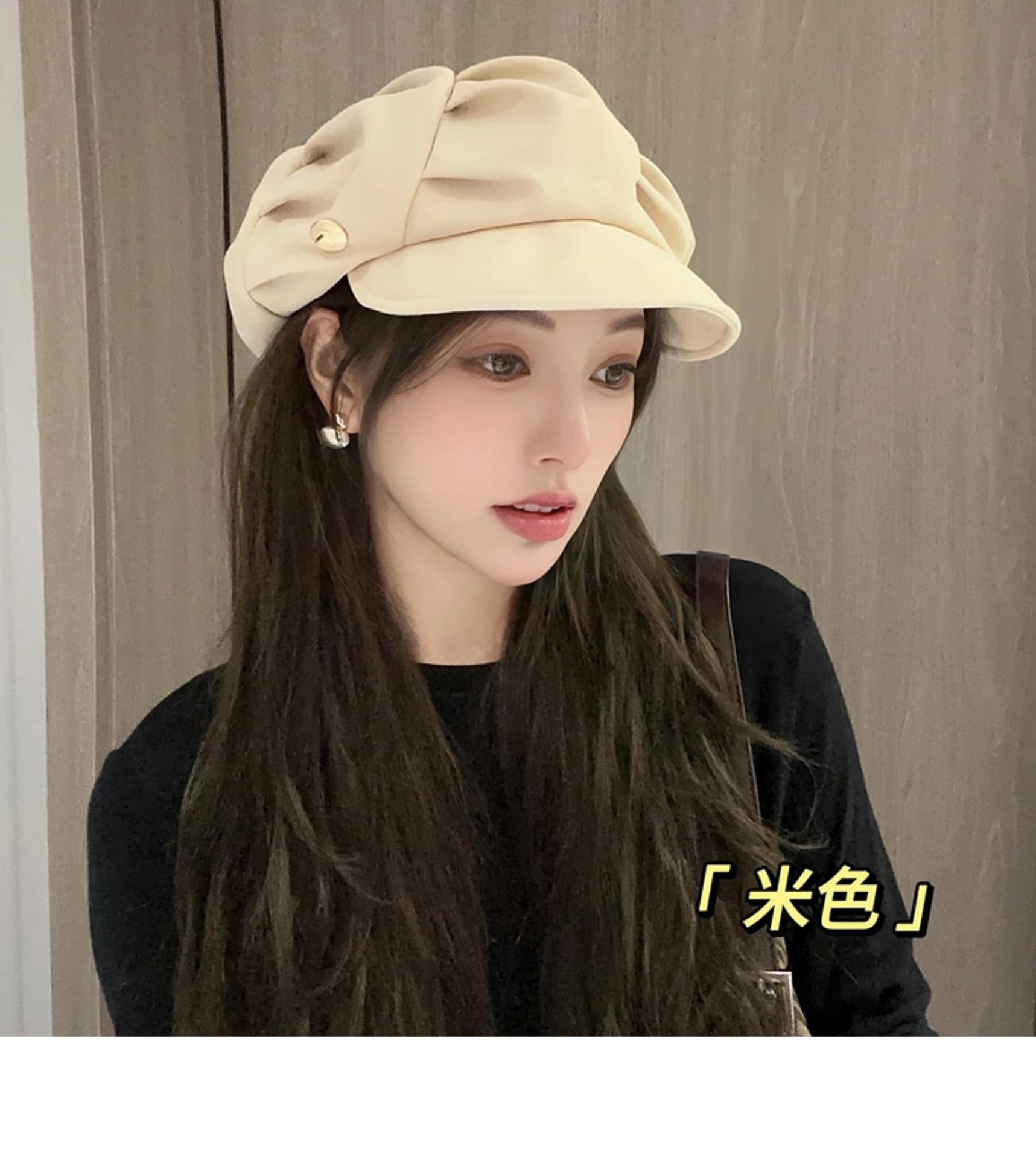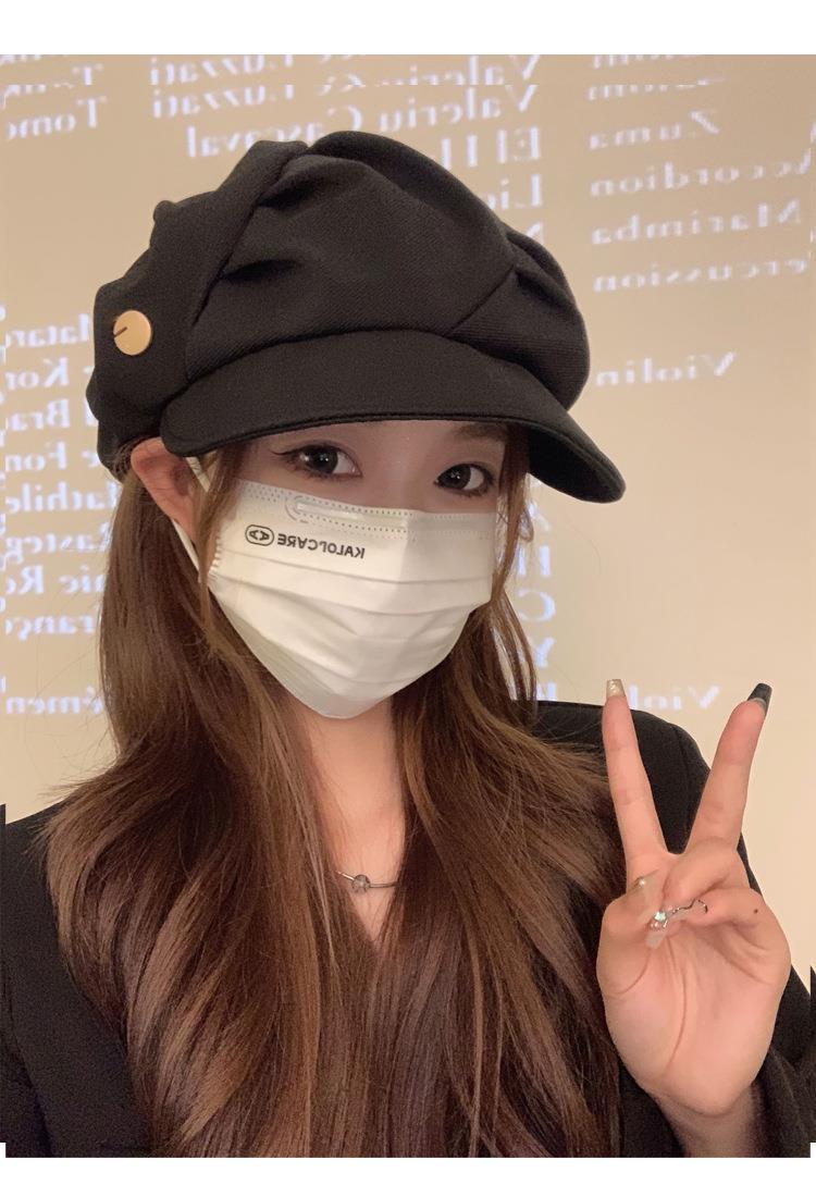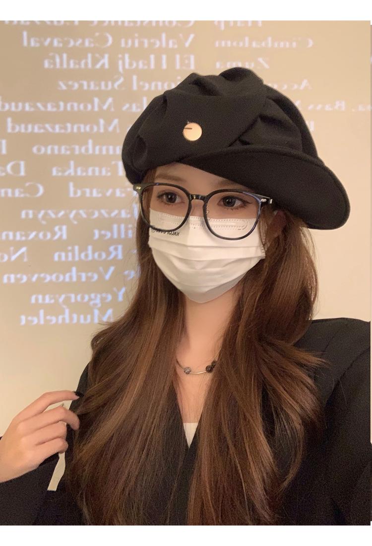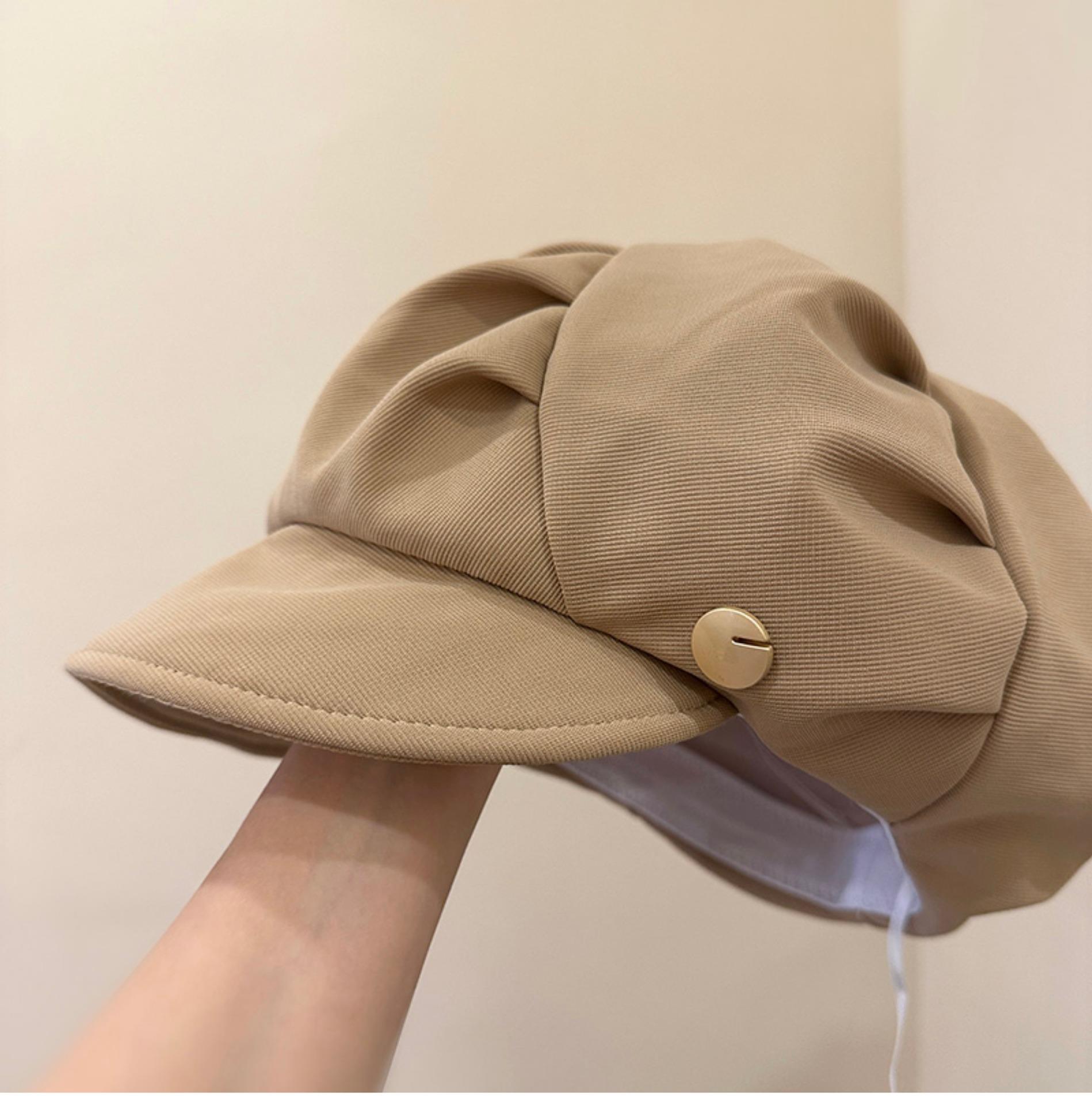 云朵八角帽女秋季薄款大头围百搭帽子显脸小韩系短檐贝雷帽潮