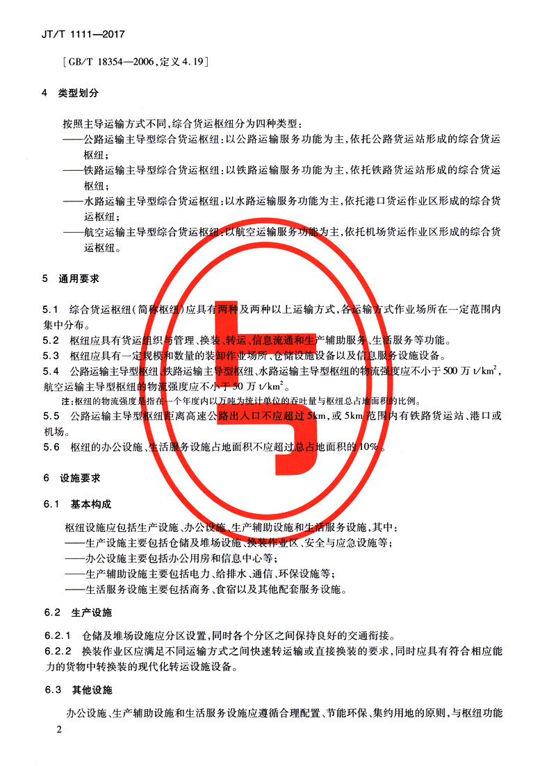 综合货运枢纽分类与基本要求(JT/T 1111—2017)