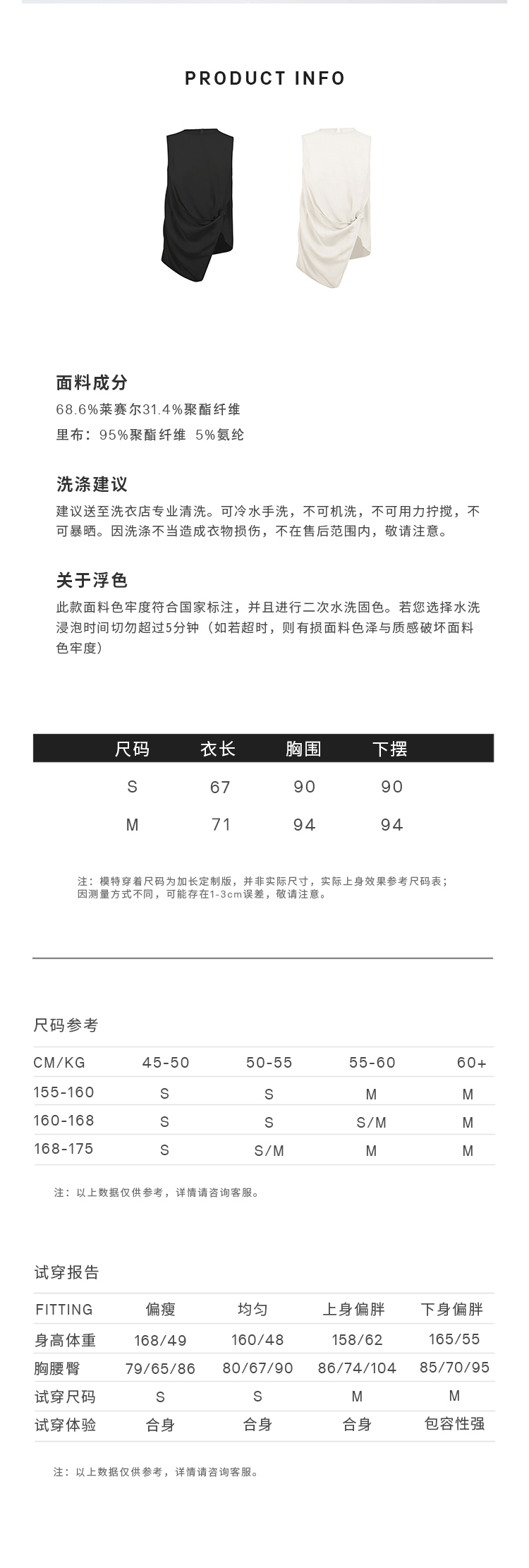 HIDEMI度假系列褶皱花苞堆叠感圆领前后两穿式背心上衣 黑色/白色