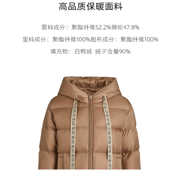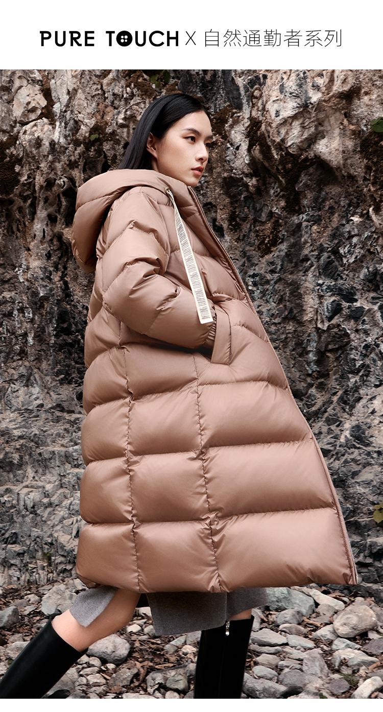 pure touch女士中长款羽绒服白鸭绒保暖时尚冬季流行外套防风新款