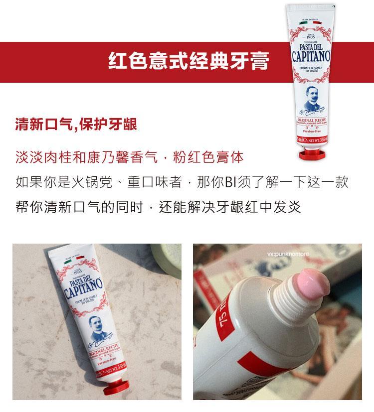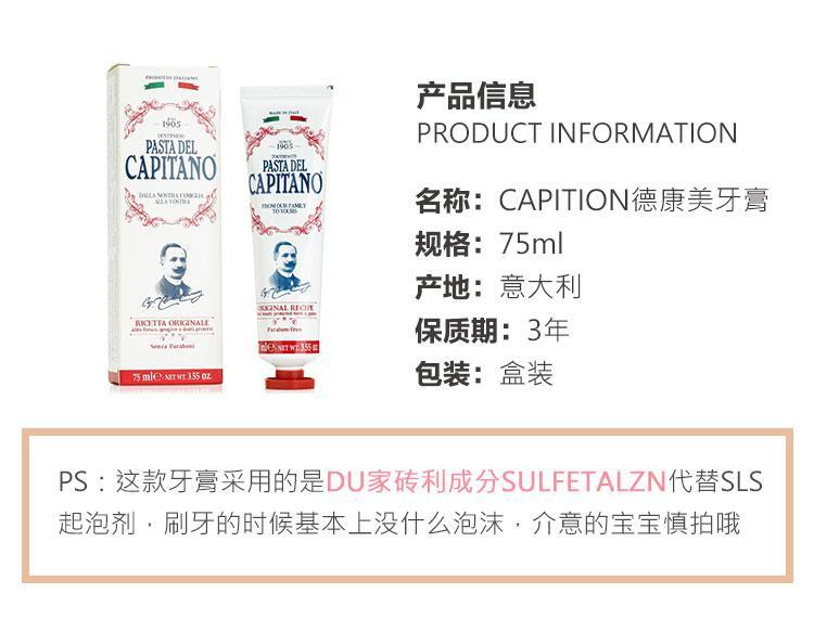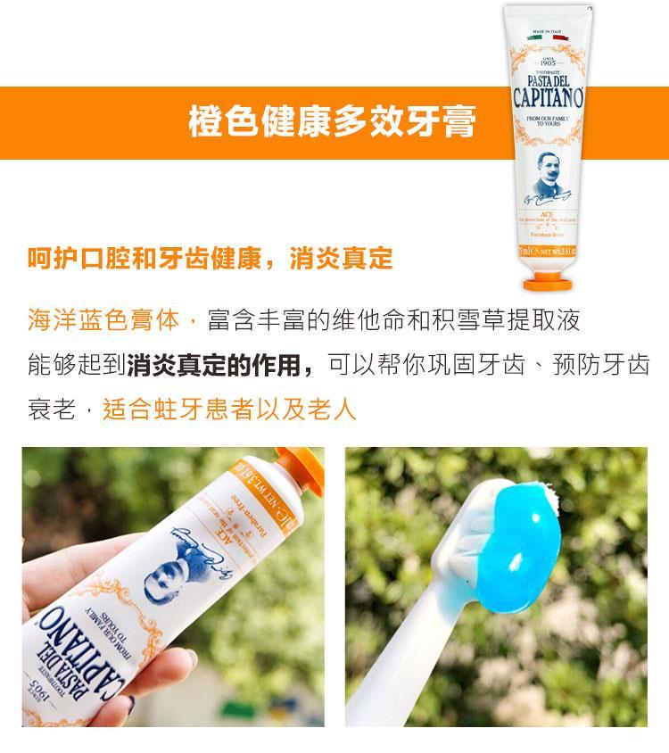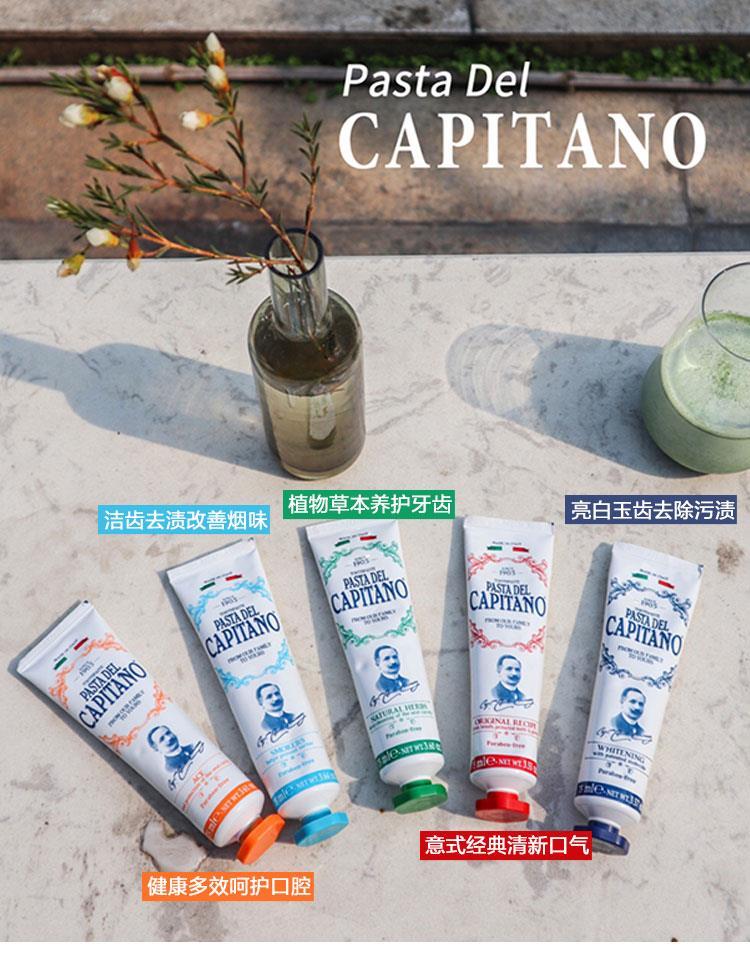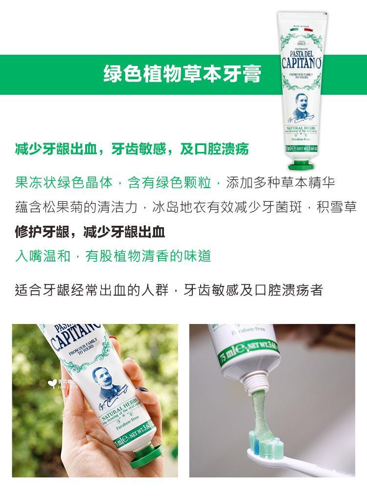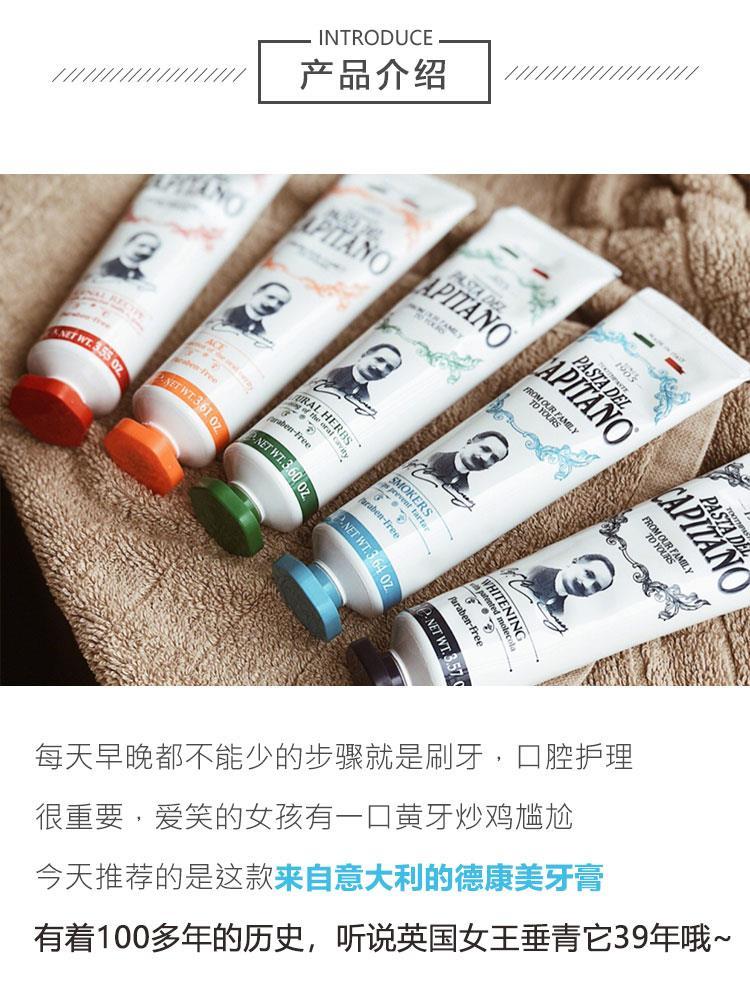 【9.9限时秒杀】正品意大利Capitano德康美老船长牙膏植物草本去渍清新口气防蛀