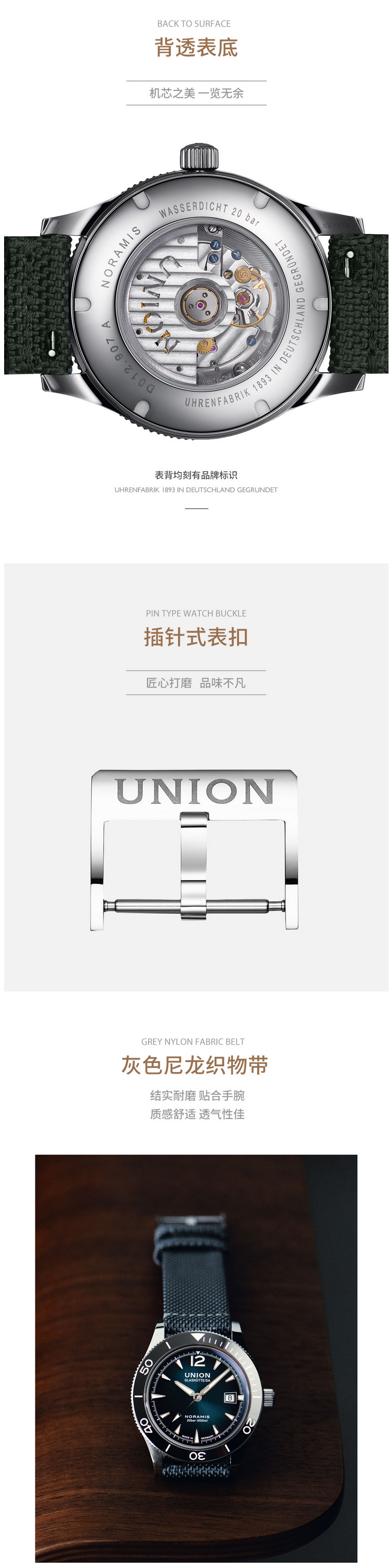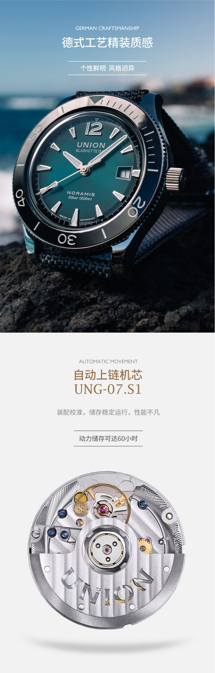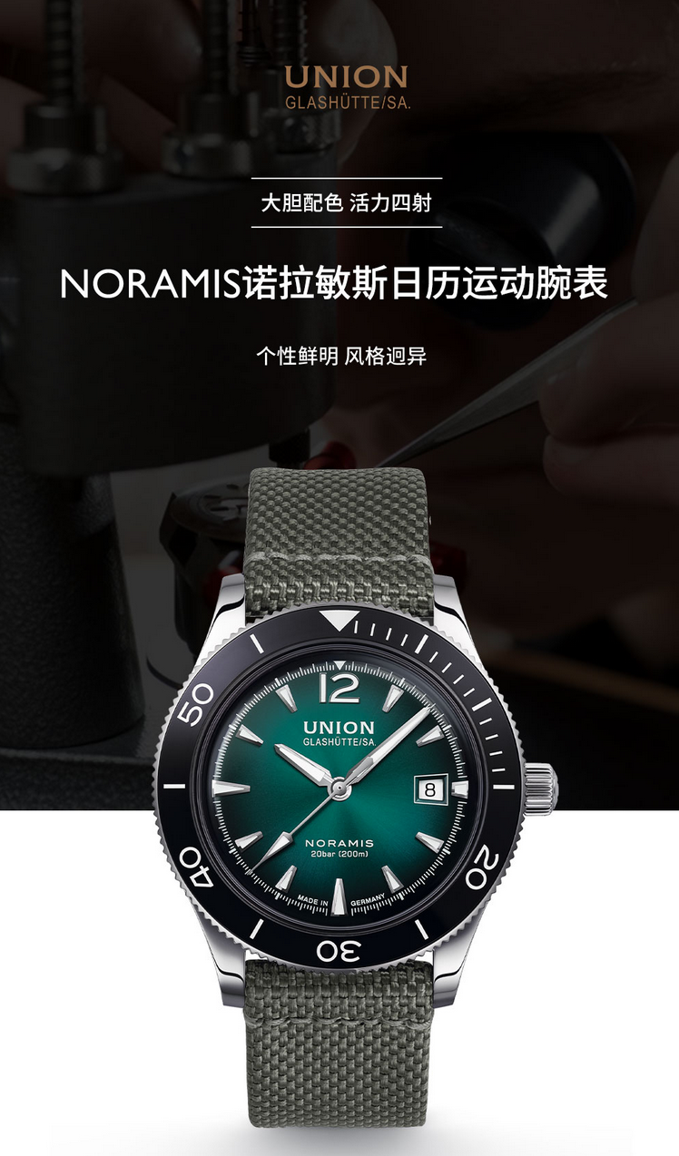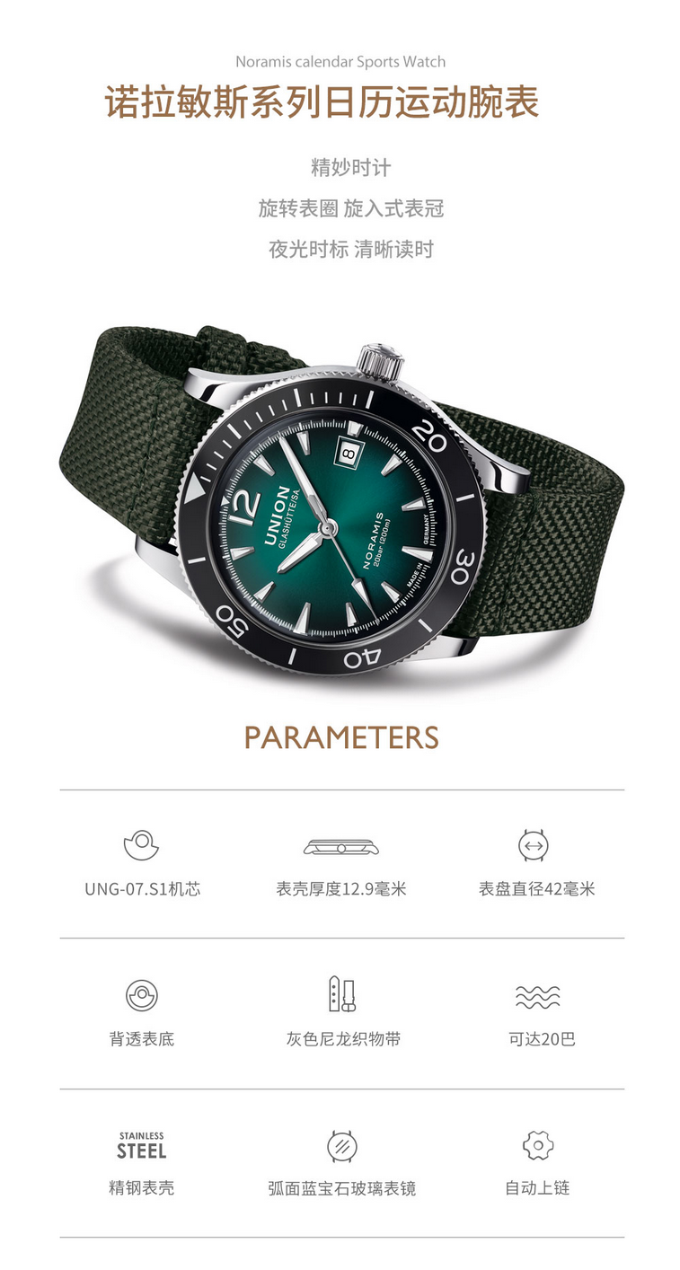 宇联(UNION GLASHÜTTE)德国手表 诺拉敏斯系列 机械男表日历运动腕表 D012.907.18.097.00