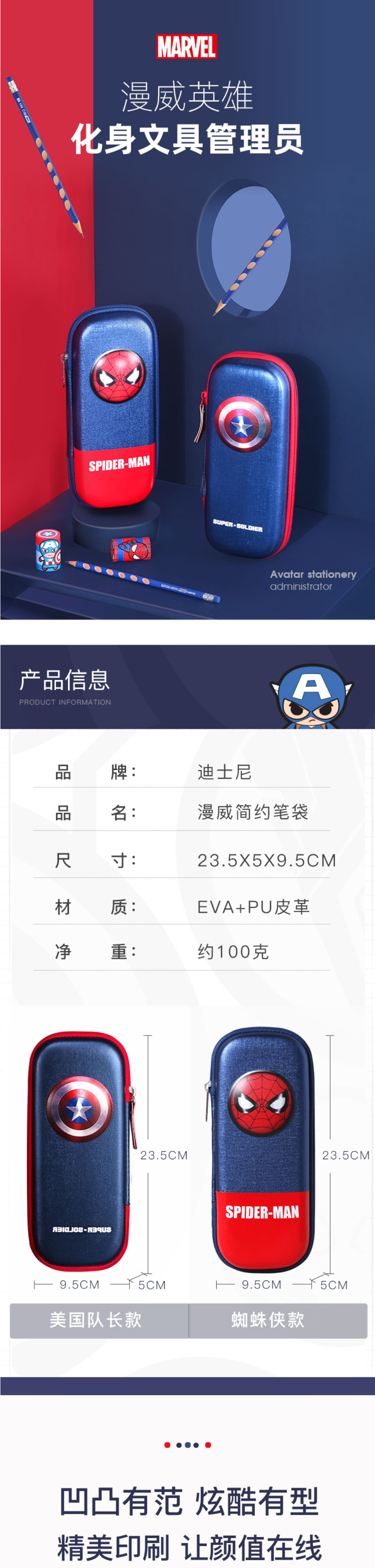 漫威(MARVEL)3D大容量文具盒男 小学生笔袋抗压耐摔EVA铅笔盒 蓝色E6035A2