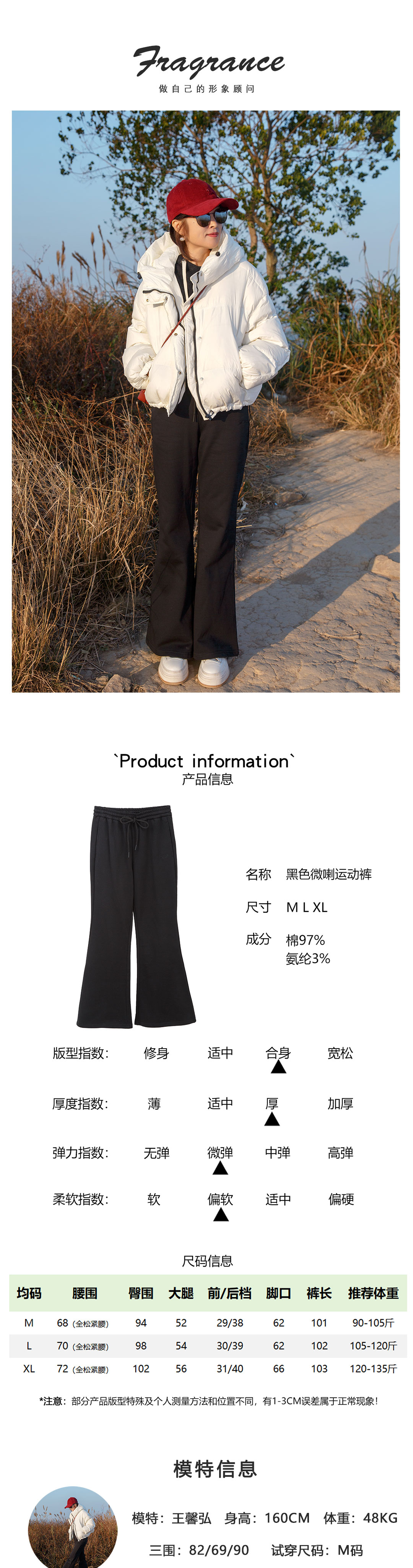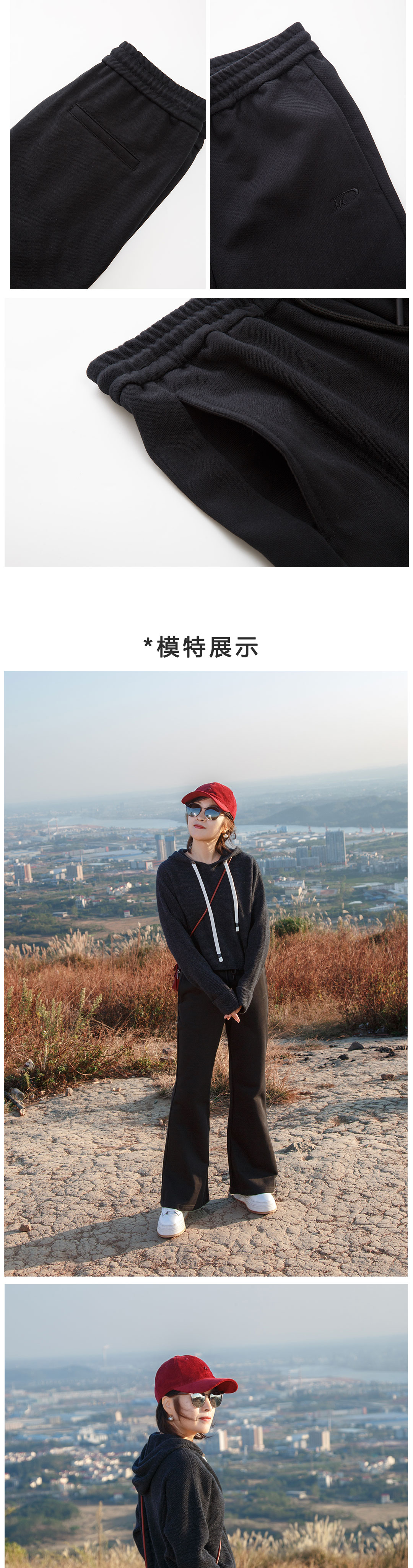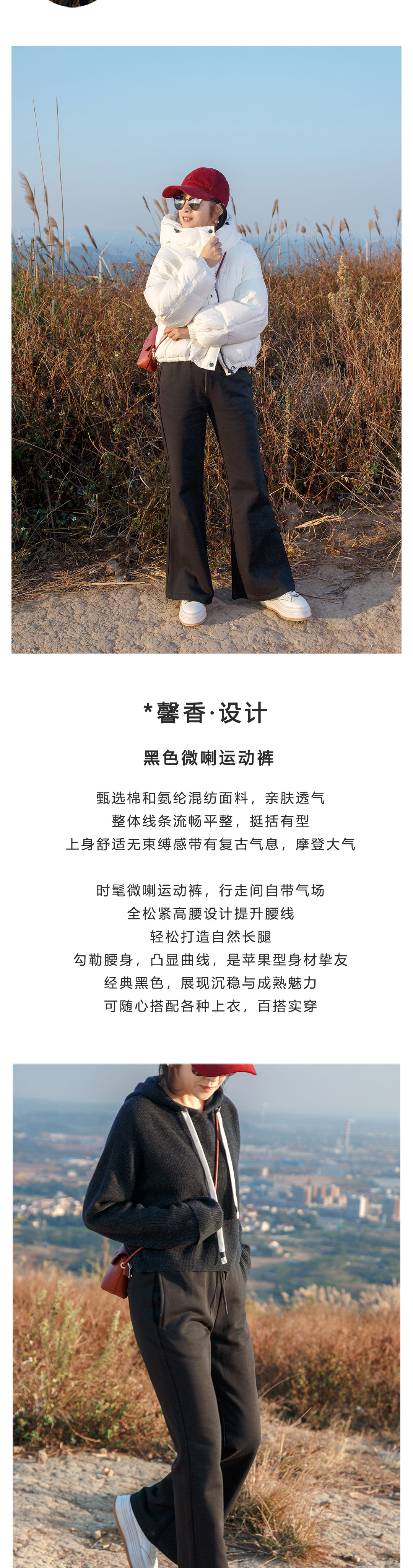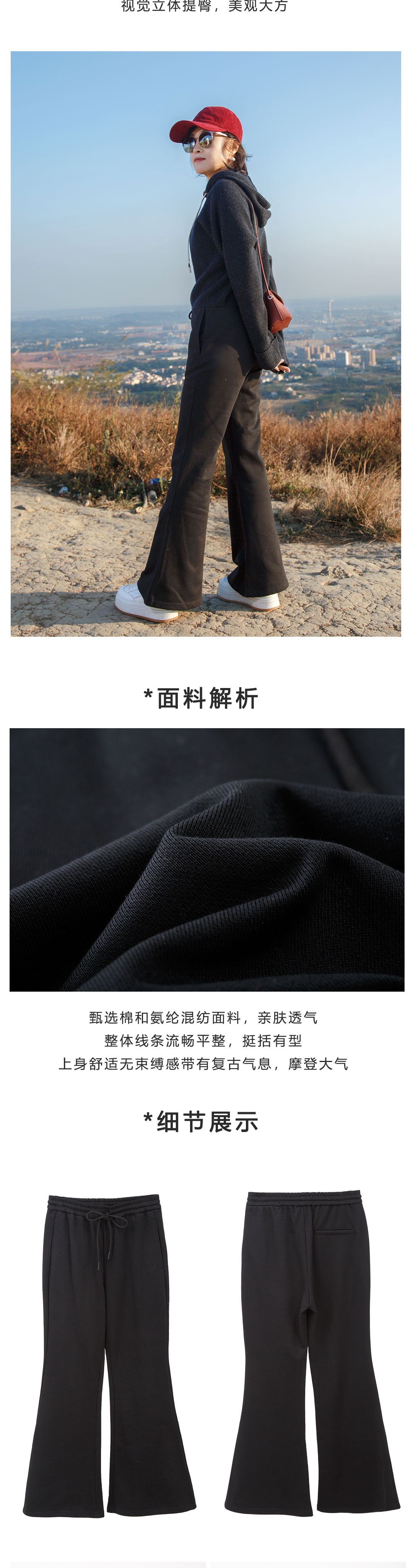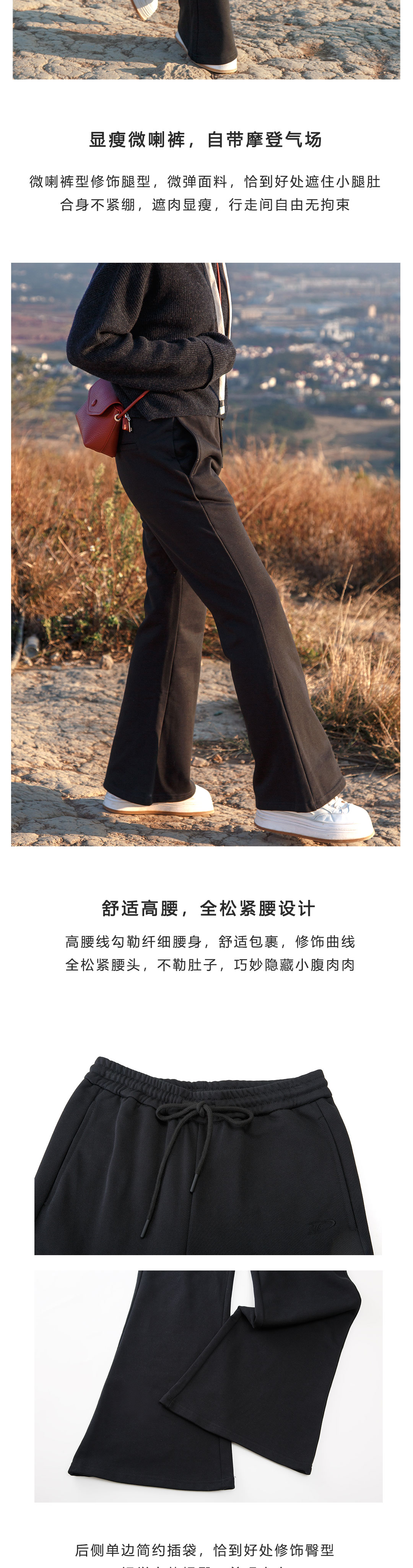 黑色微喇运动裤