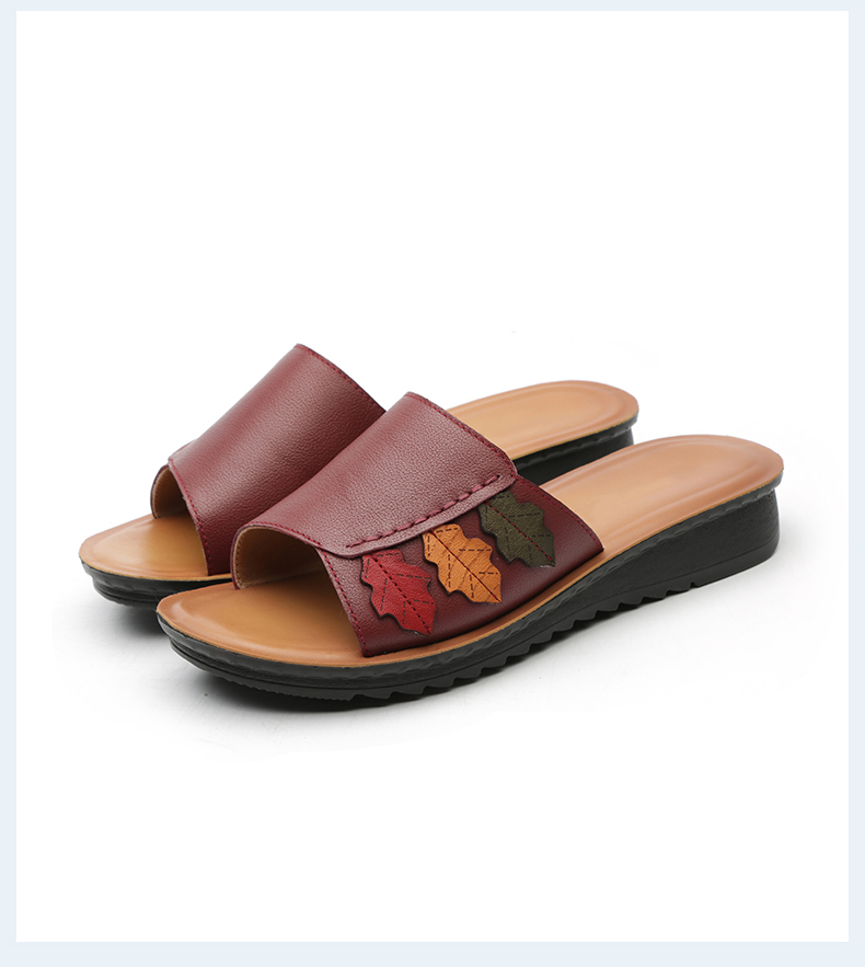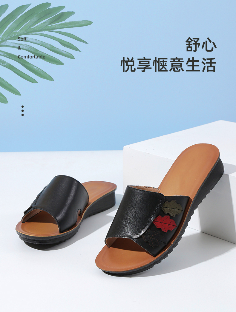 信诺真皮妈妈拖鞋女外穿新款夏防滑软底中老年舒适奶奶老人皮凉拖 20L629-5