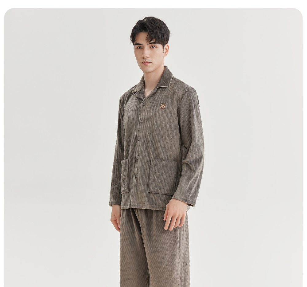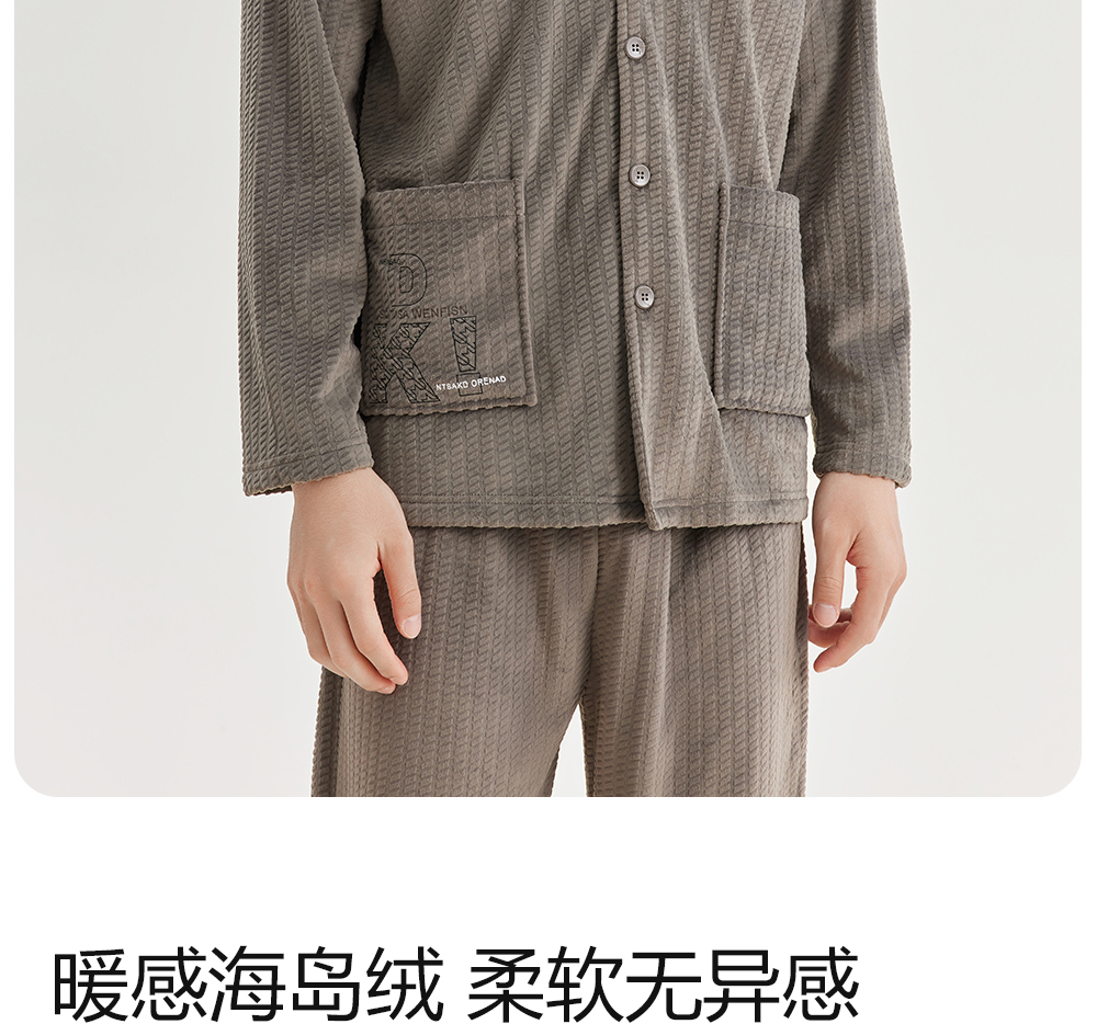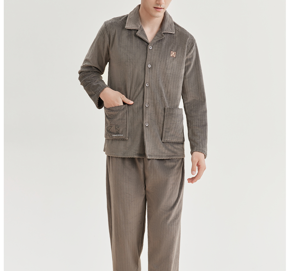 美季美优睡衣冬季男2024新款暖棉绒烂花刺绣套装长袖长裤家居服