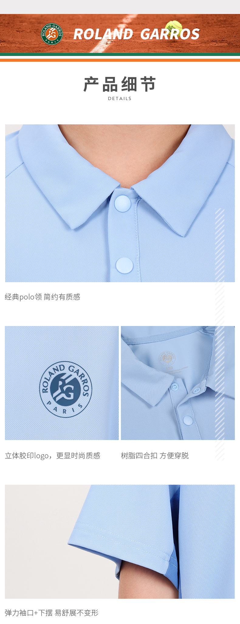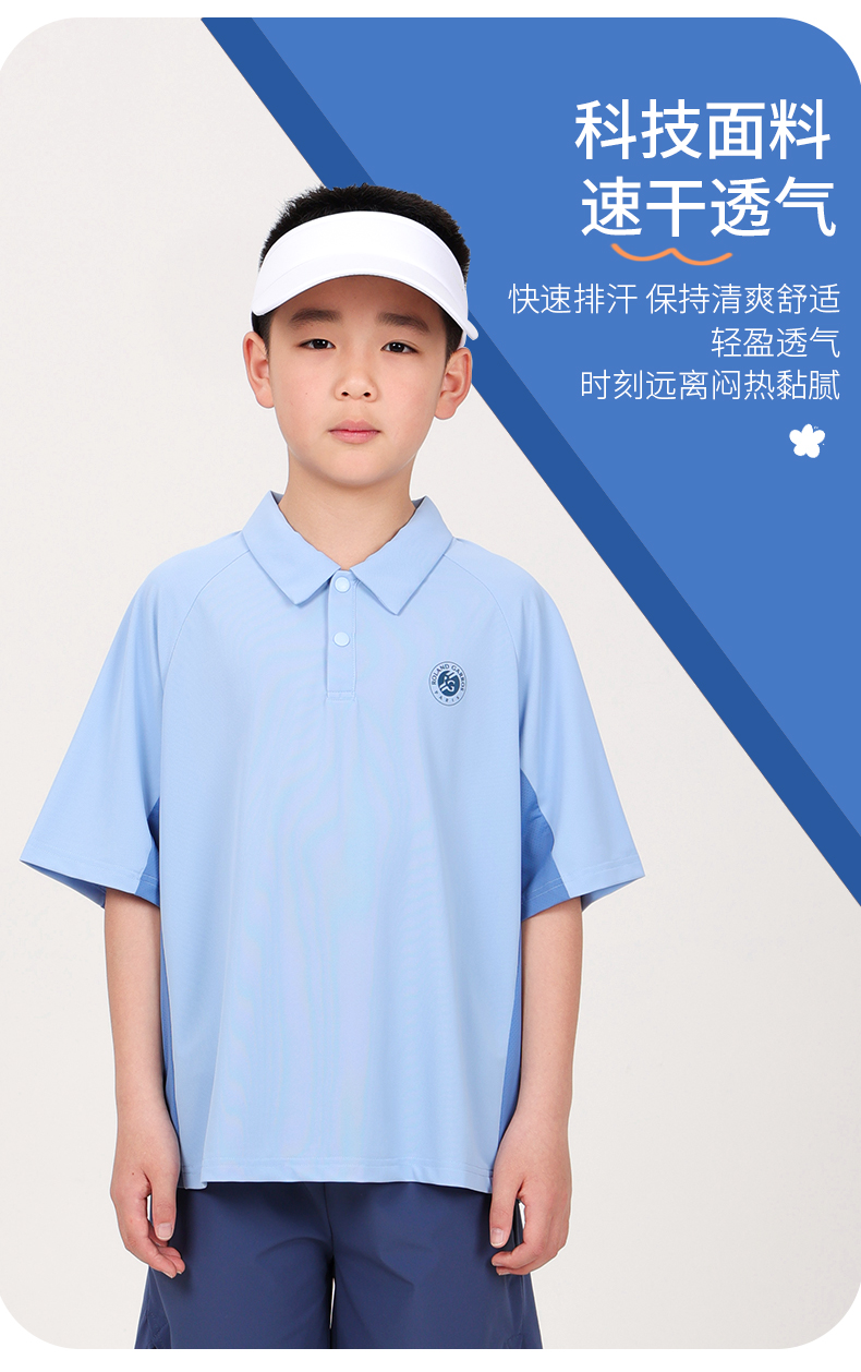 罗兰加洛斯男童短袖POLO衫儿童网球运动T恤夏季凉感速干透气上衣