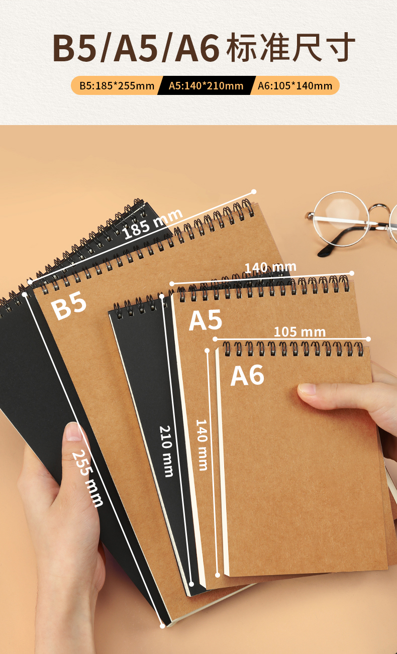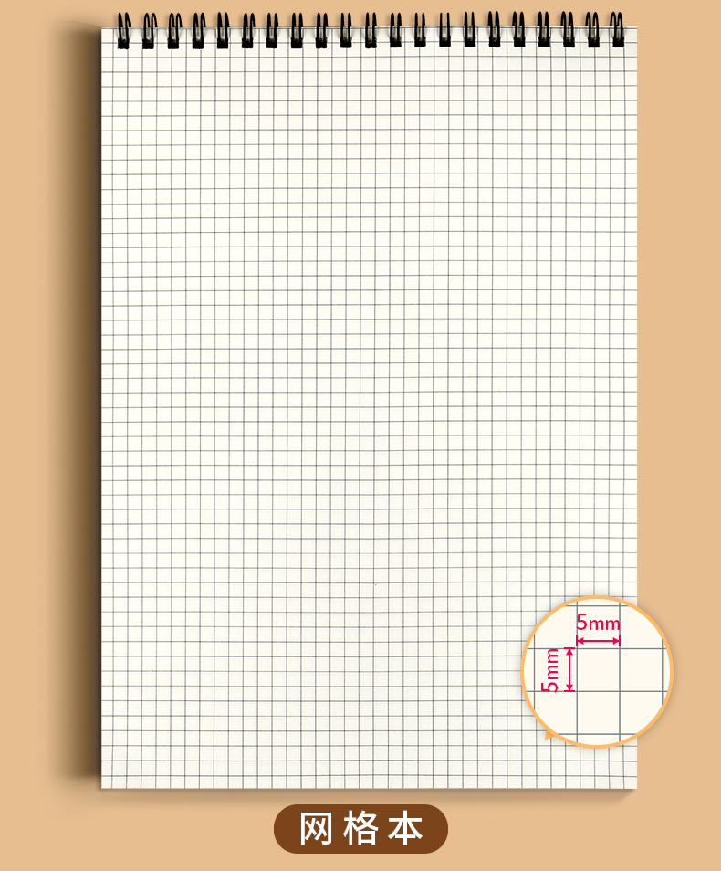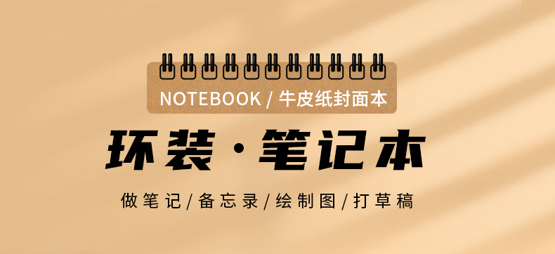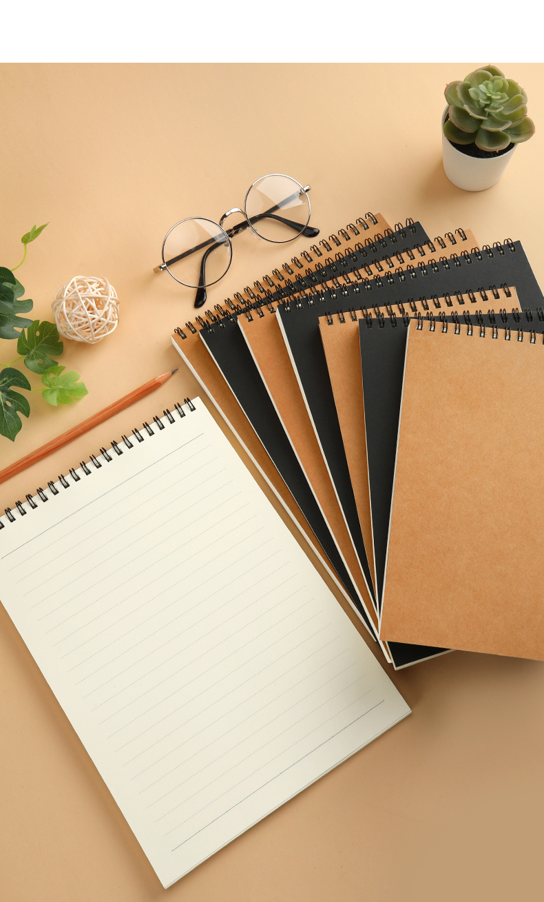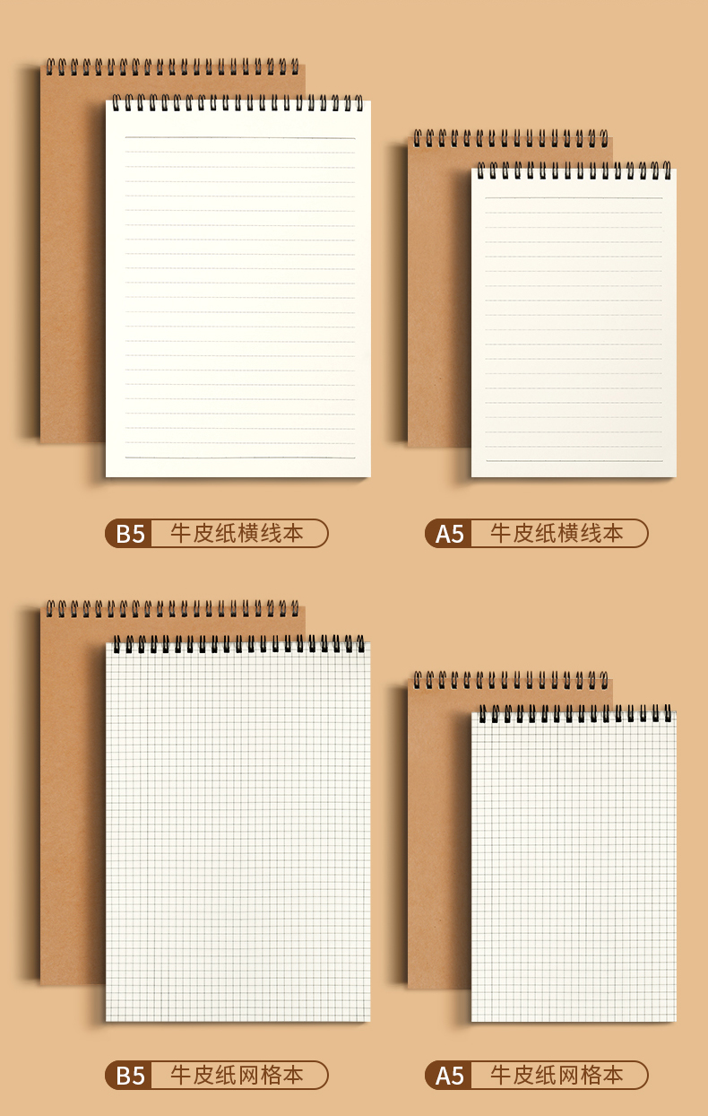 【简约加厚牛皮线圈本】60张/本牛皮A6A5B5空白方格上翻活页笔记本