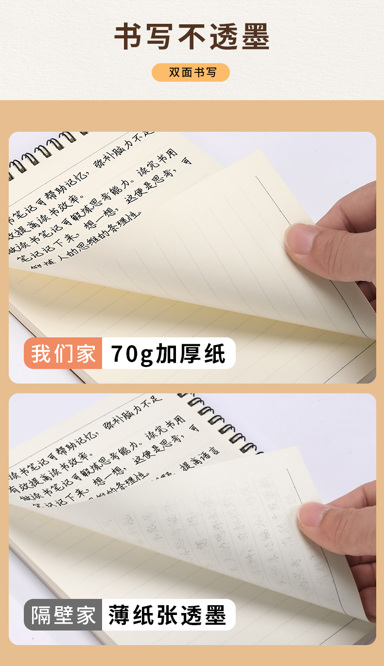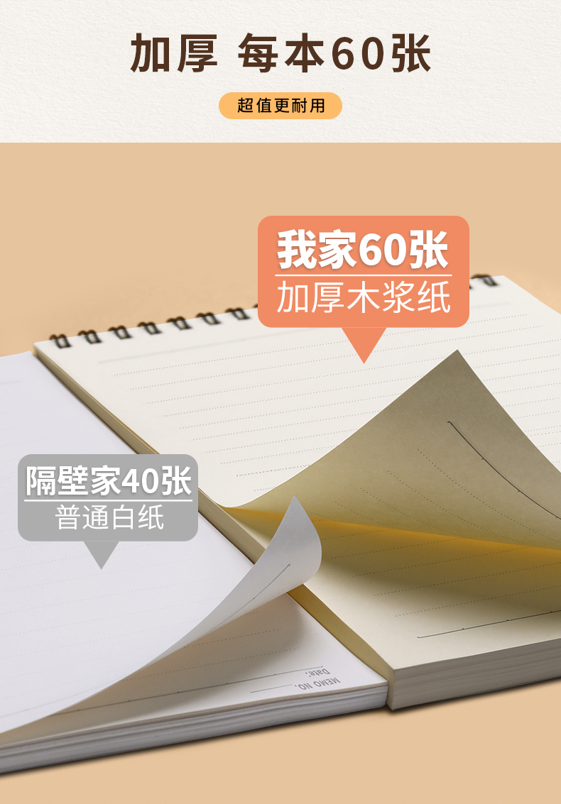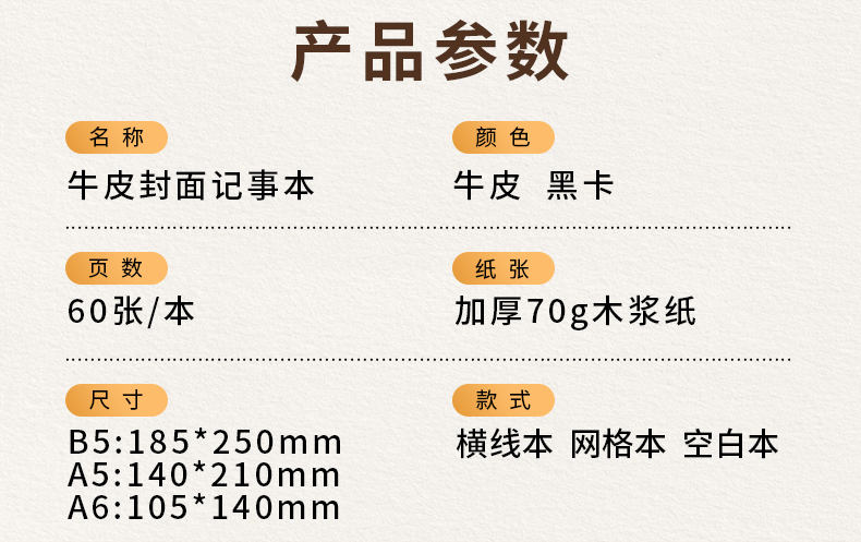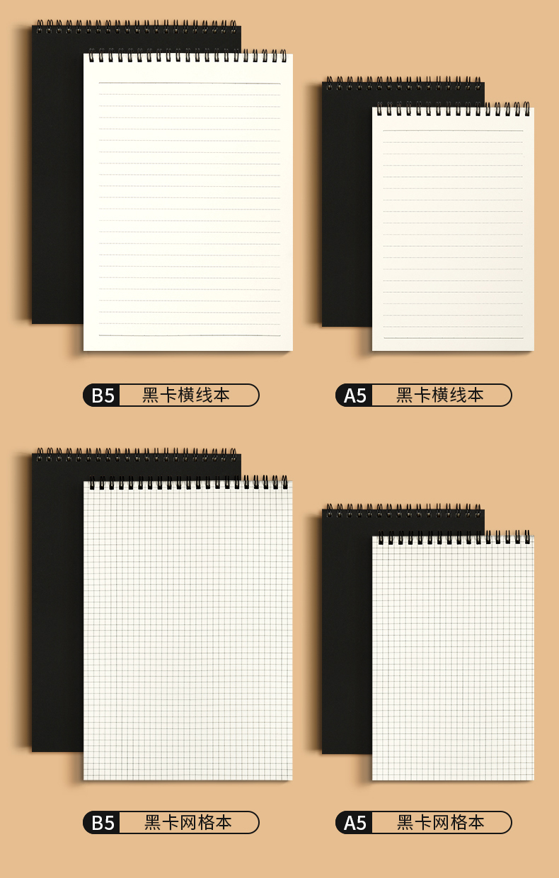 【简约加厚牛皮线圈本】60张/本牛皮A6A5B5空白方格上翻活页笔记本