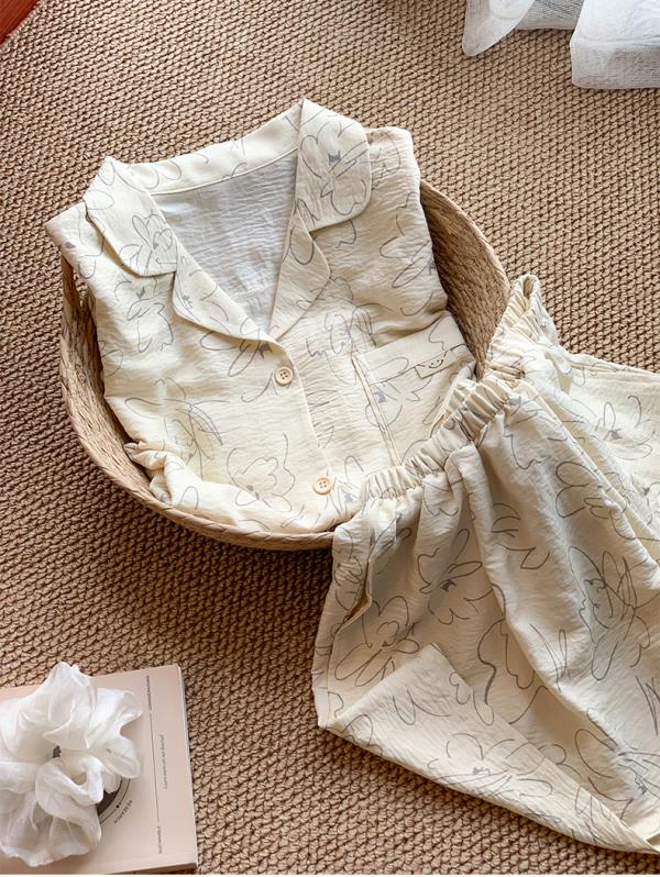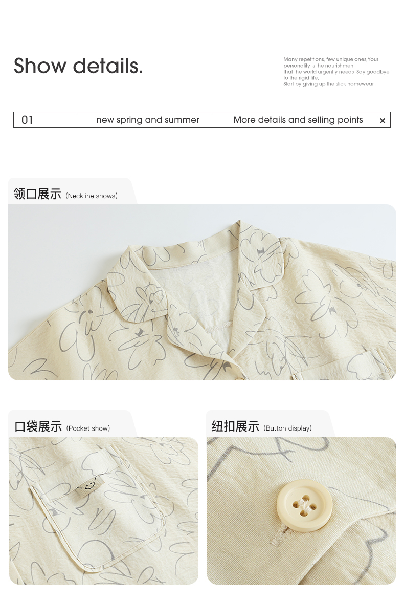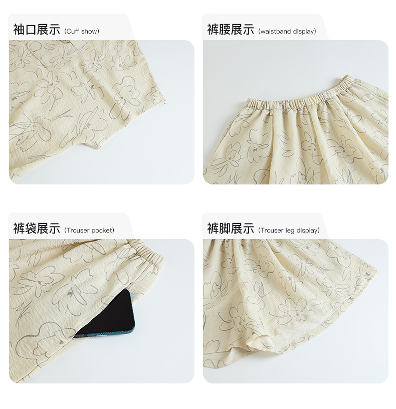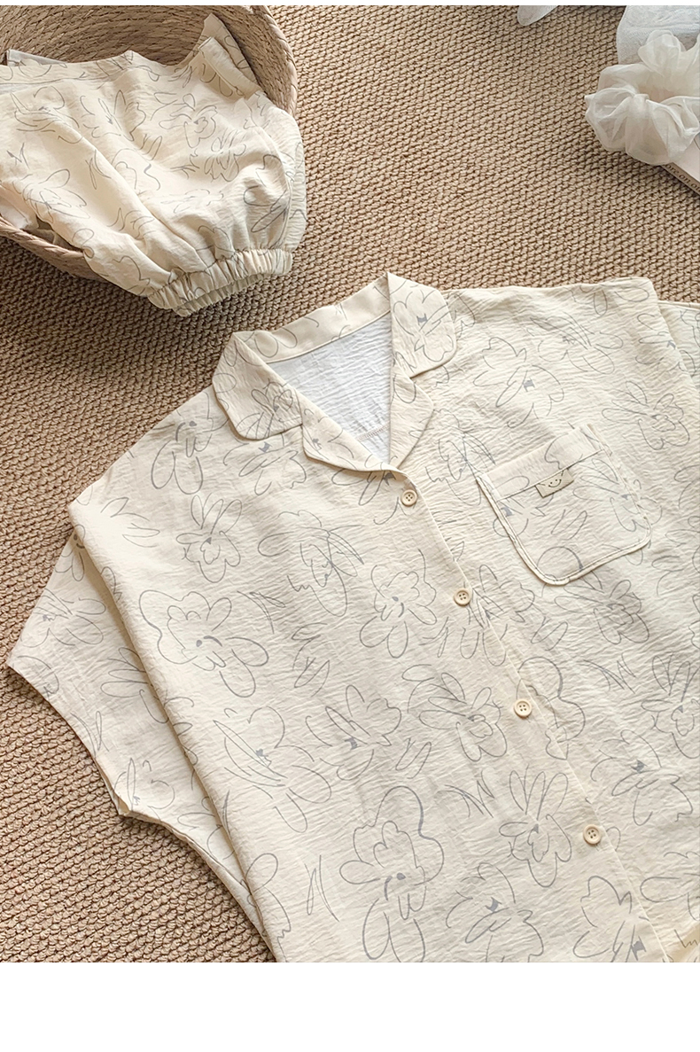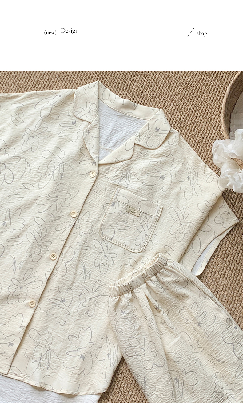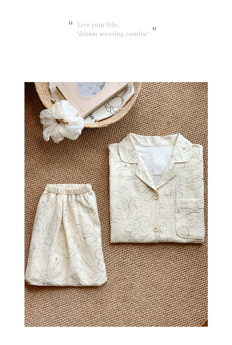 可人儿小众设计师新款泡泡绵女士睡衣夏季短袖可外出家居服三件套