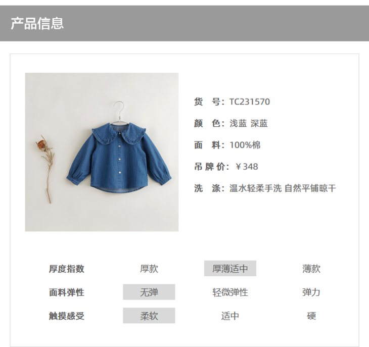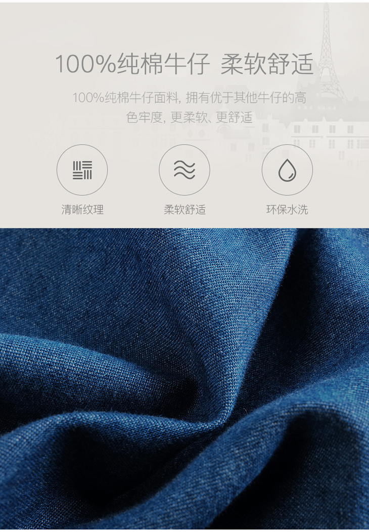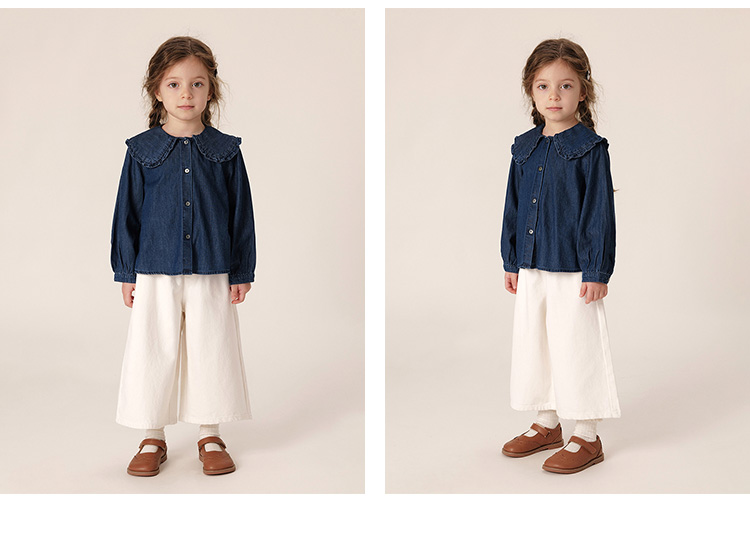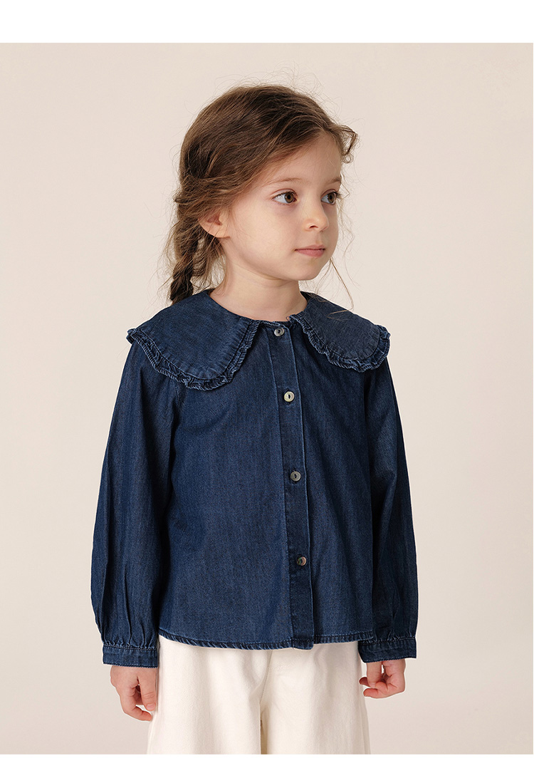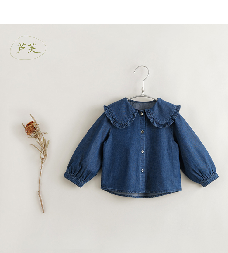 【马克珍妮 芦芙】秋装新款花边翻领纯棉牛仔衬衫 231570