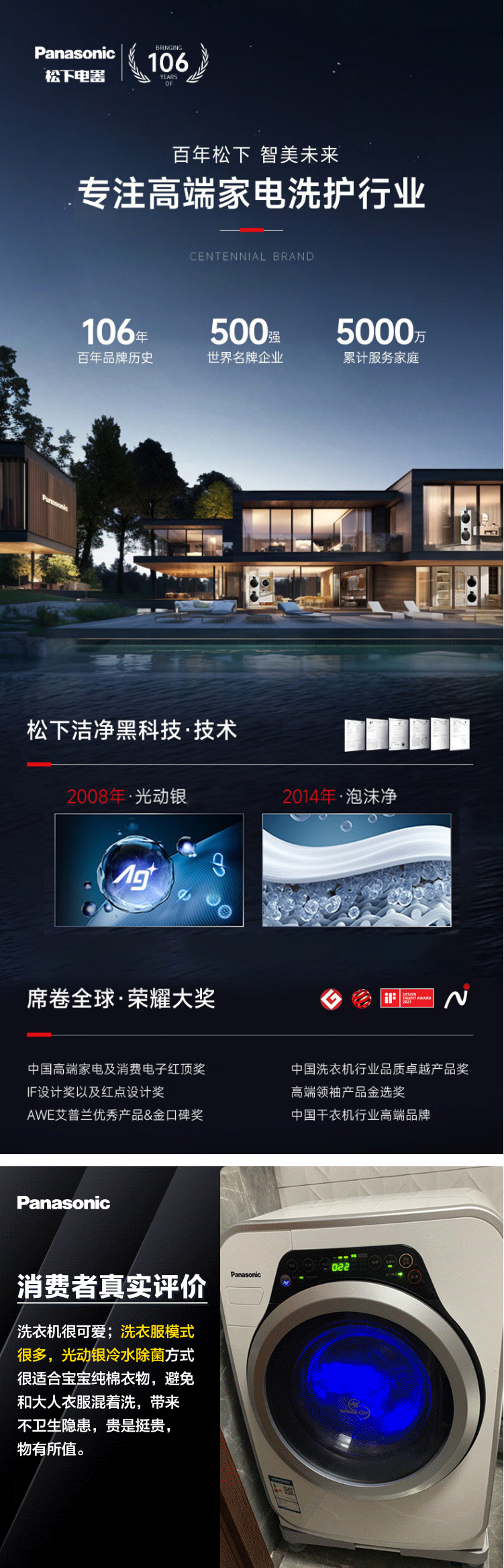 松下(Panasonic)(251778)滚筒洗衣机全自动【宝贝星 MatePro】3.2公斤 小型迷你婴儿内衣光动银除菌 高温除菌XQG32-A312D