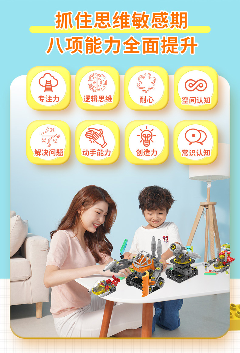 【100益智玩法,未来机械师】电动大颗粒 益智玩具 2-4岁 社交