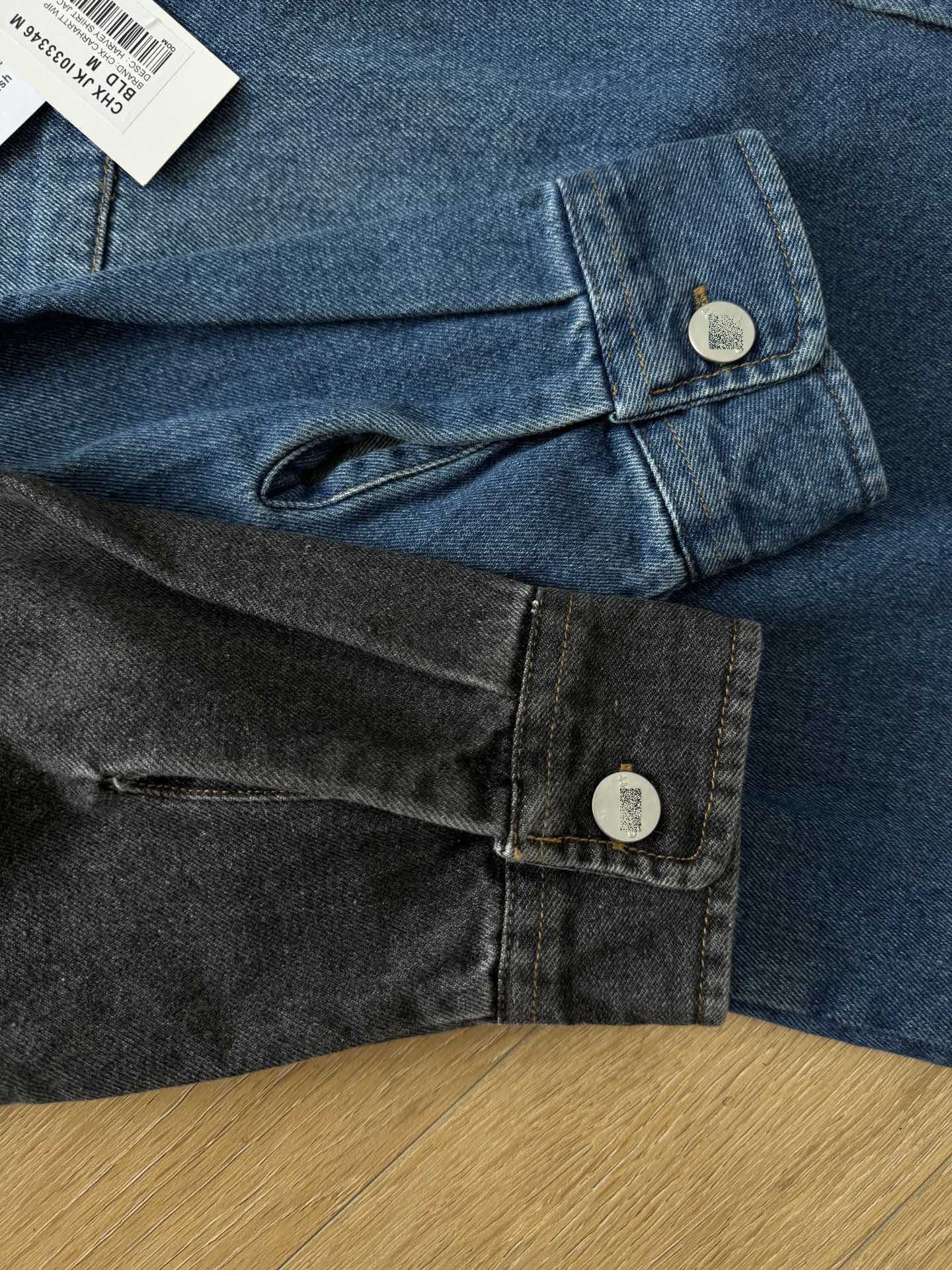 每️一季的定制产品之一,出色的水洗效果!做旧风格适合不同场景不同服装的搭配,可以外穿也可以内搭。400g全棉水洗牛仔!️定制纽扣每个纽扣都刻有logo!质感满满前片口袋设计也很简约耐看!厚实的牛仔布让衣服整体显得非常硬挺,充满利落又耐造的工装感。成为潮男必备到一款牛仔外套!