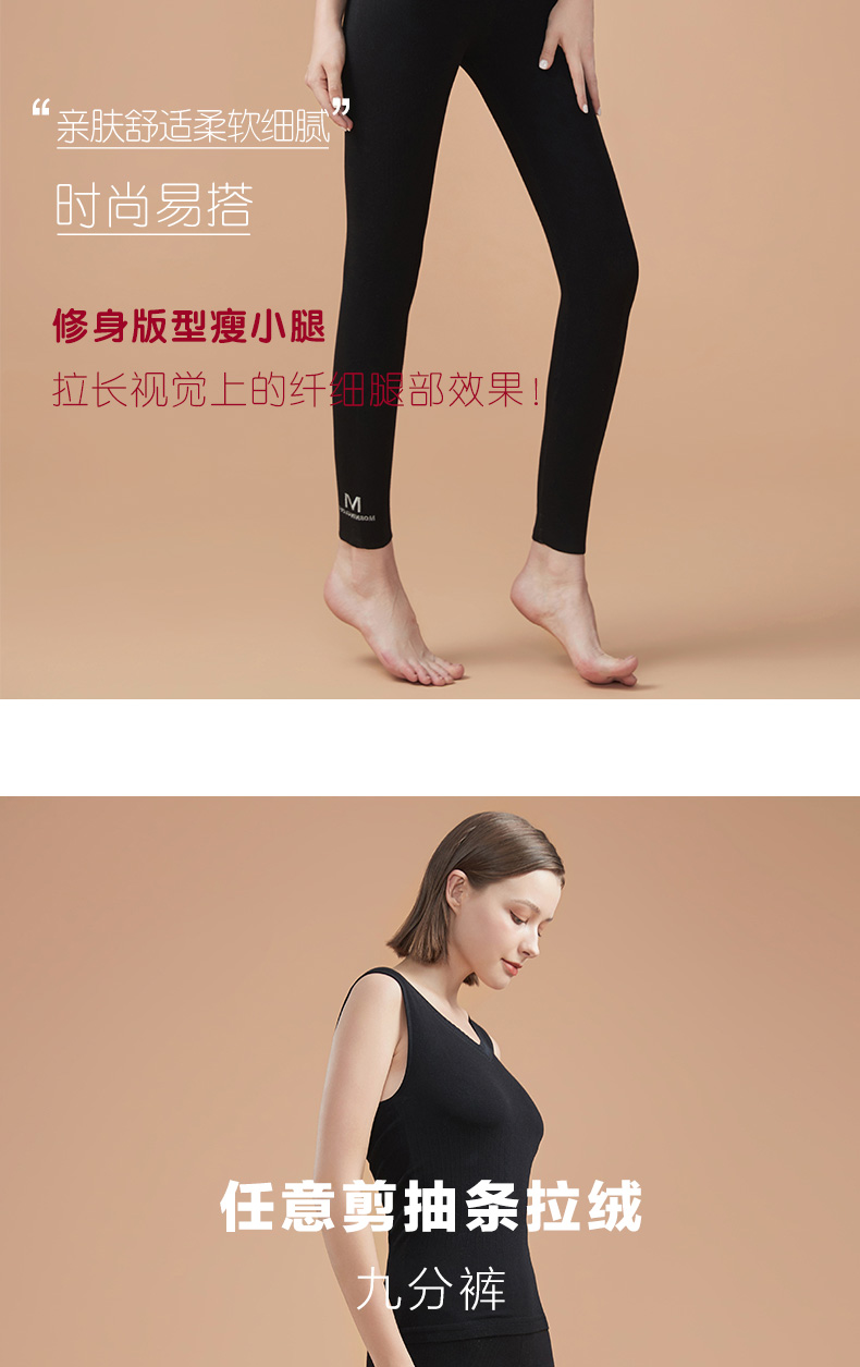 秋冬新品保暖打底裤任意剪抽条弹力瘦蓄热细绒九分裤